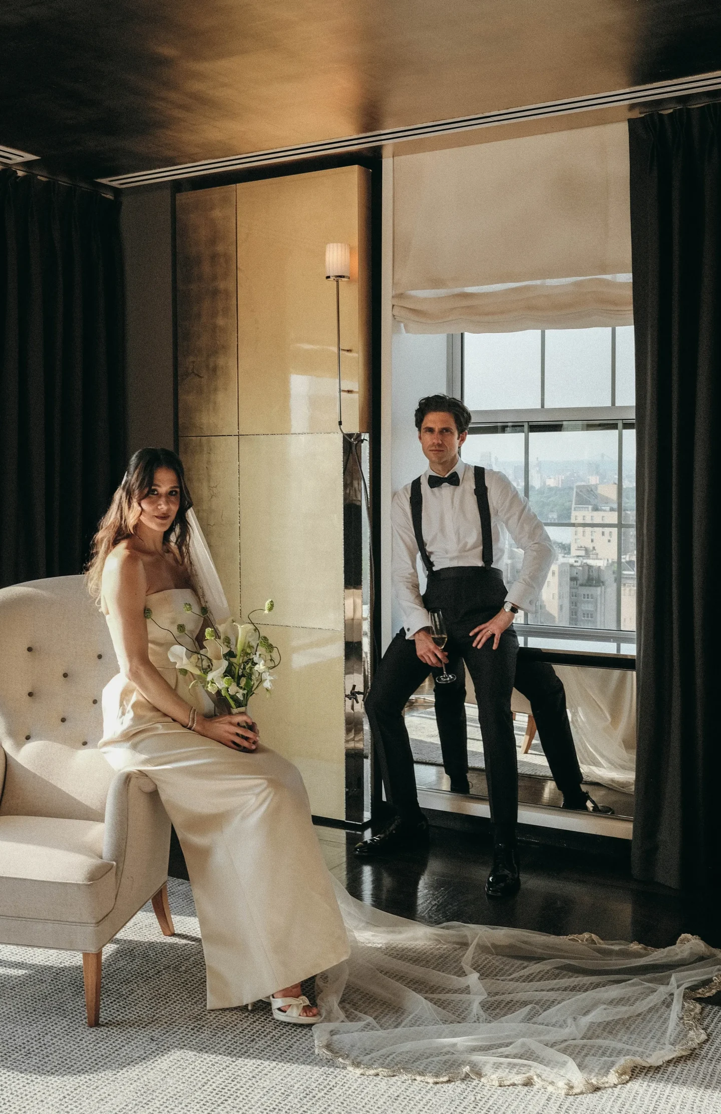 Мариса предстала в платье Emilia Wickstead с диадемой Bentley & Skinner, а Джейми — в смокинге Dunhill. Рассматриваем эти атмосферные кадры!