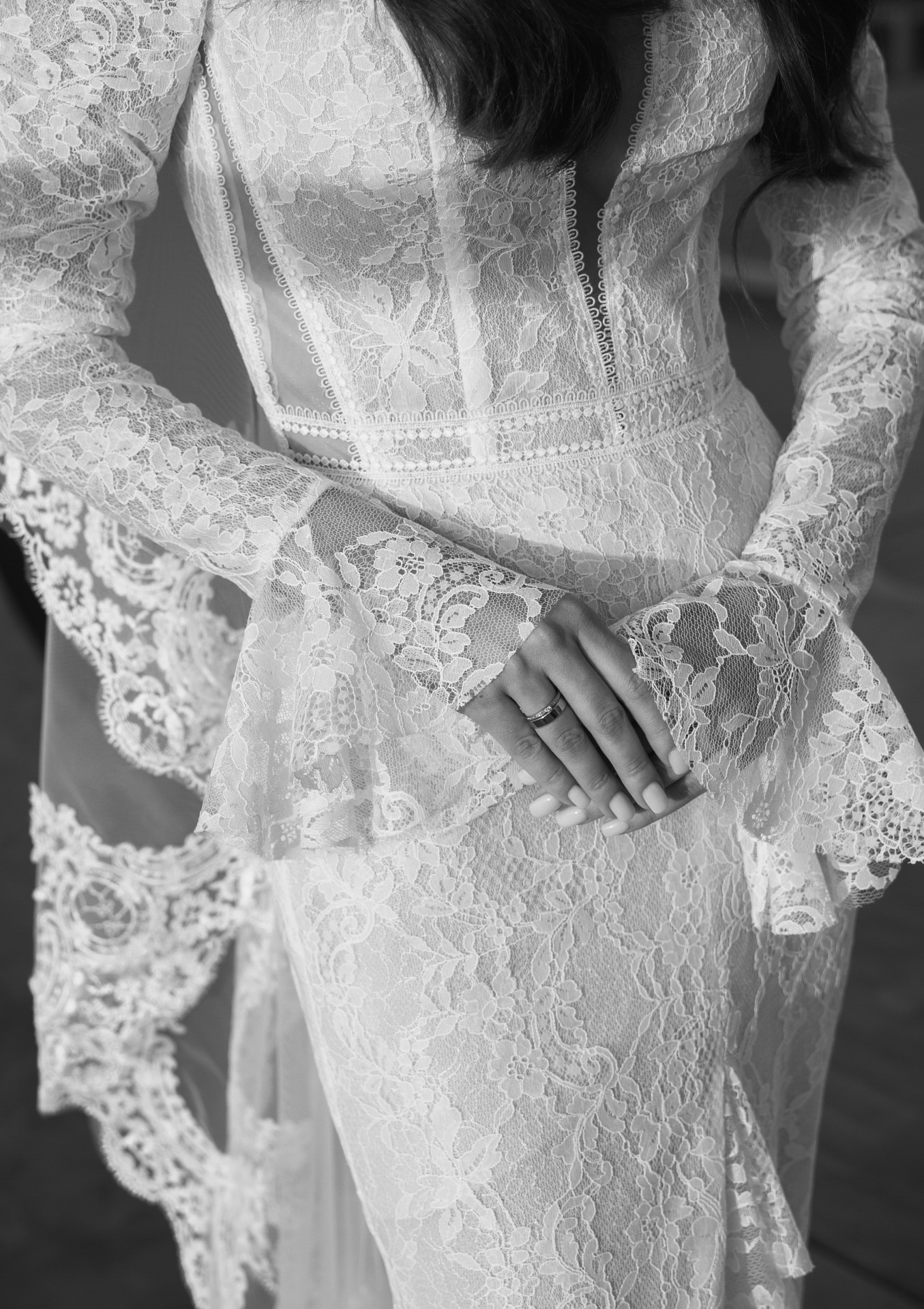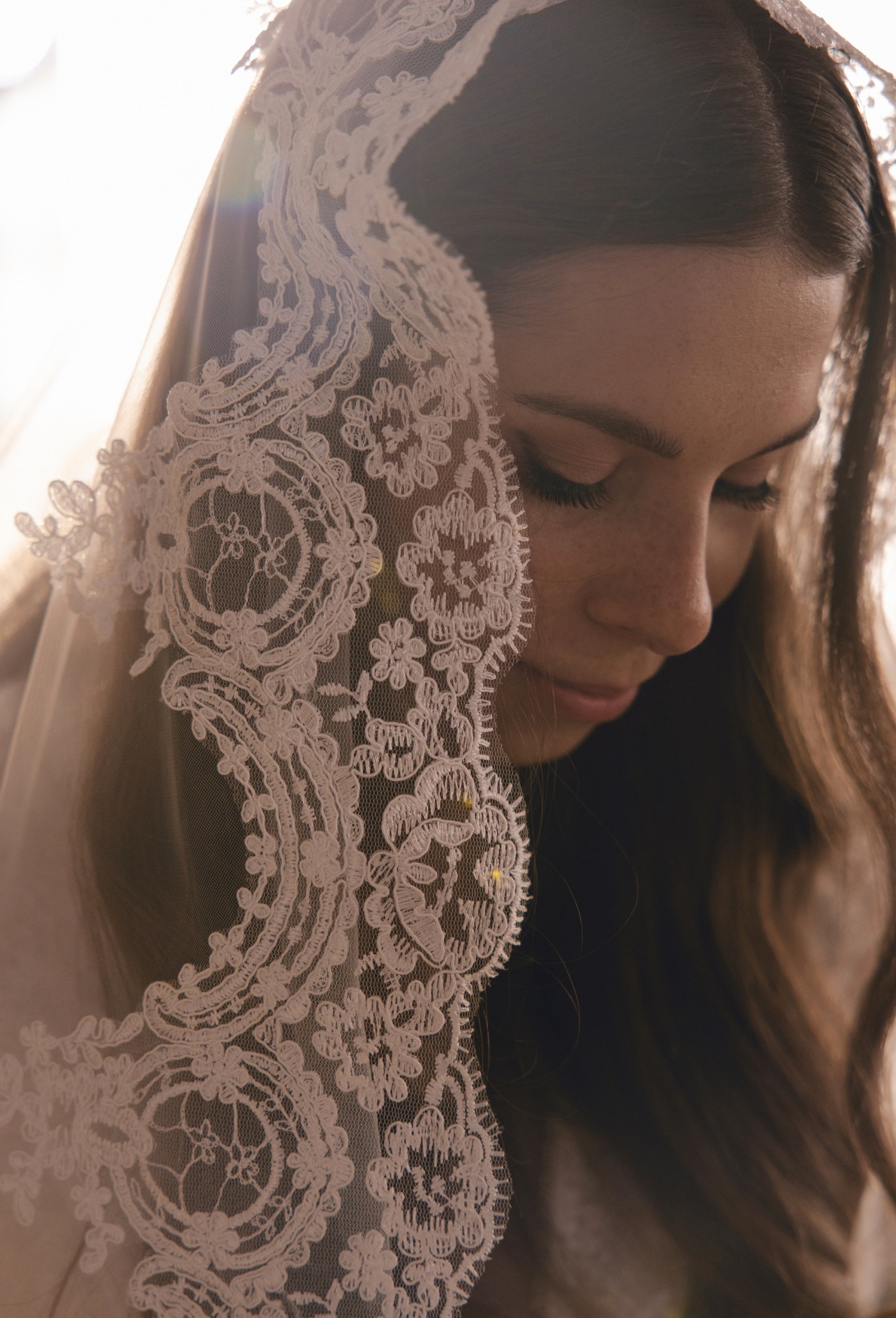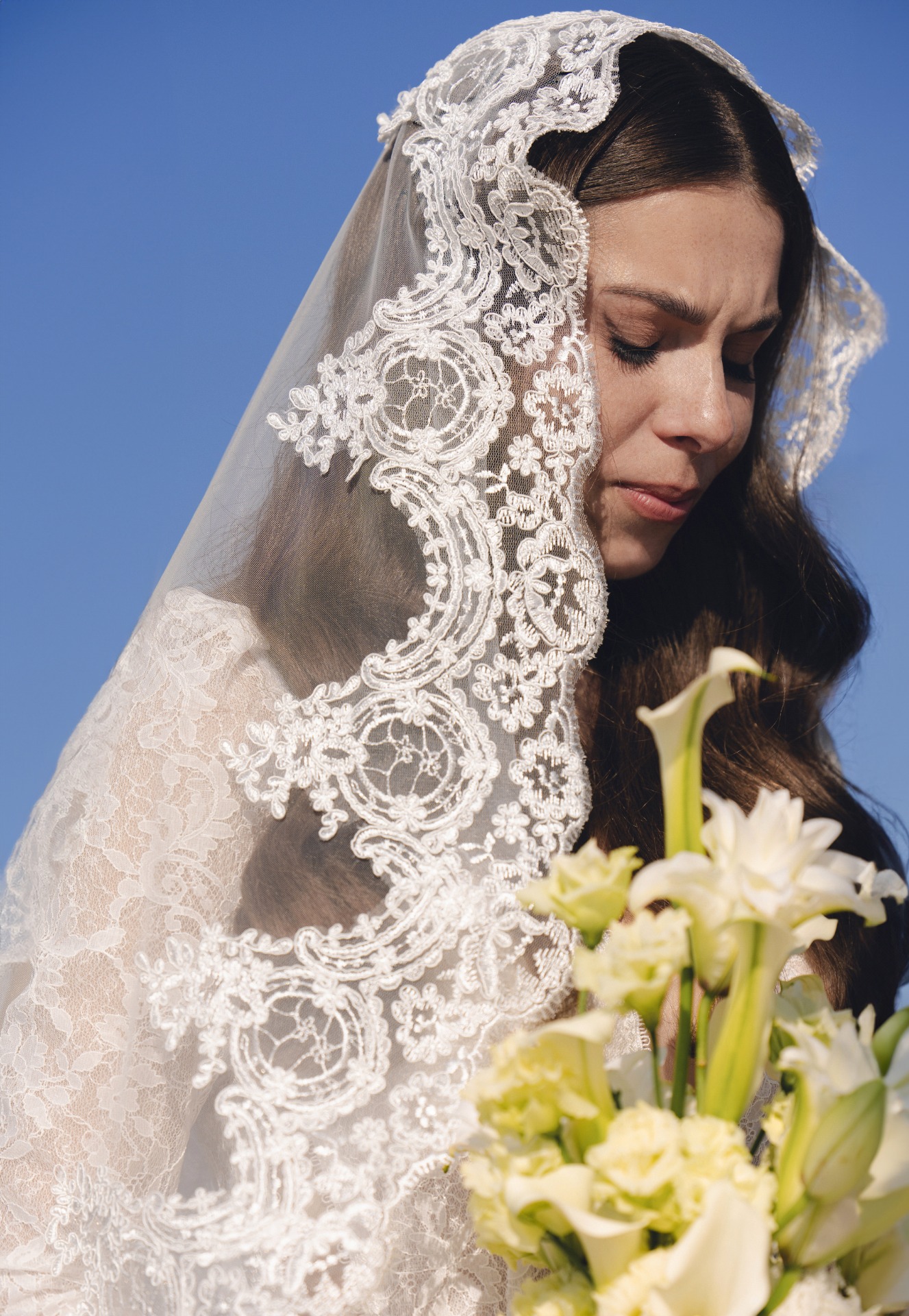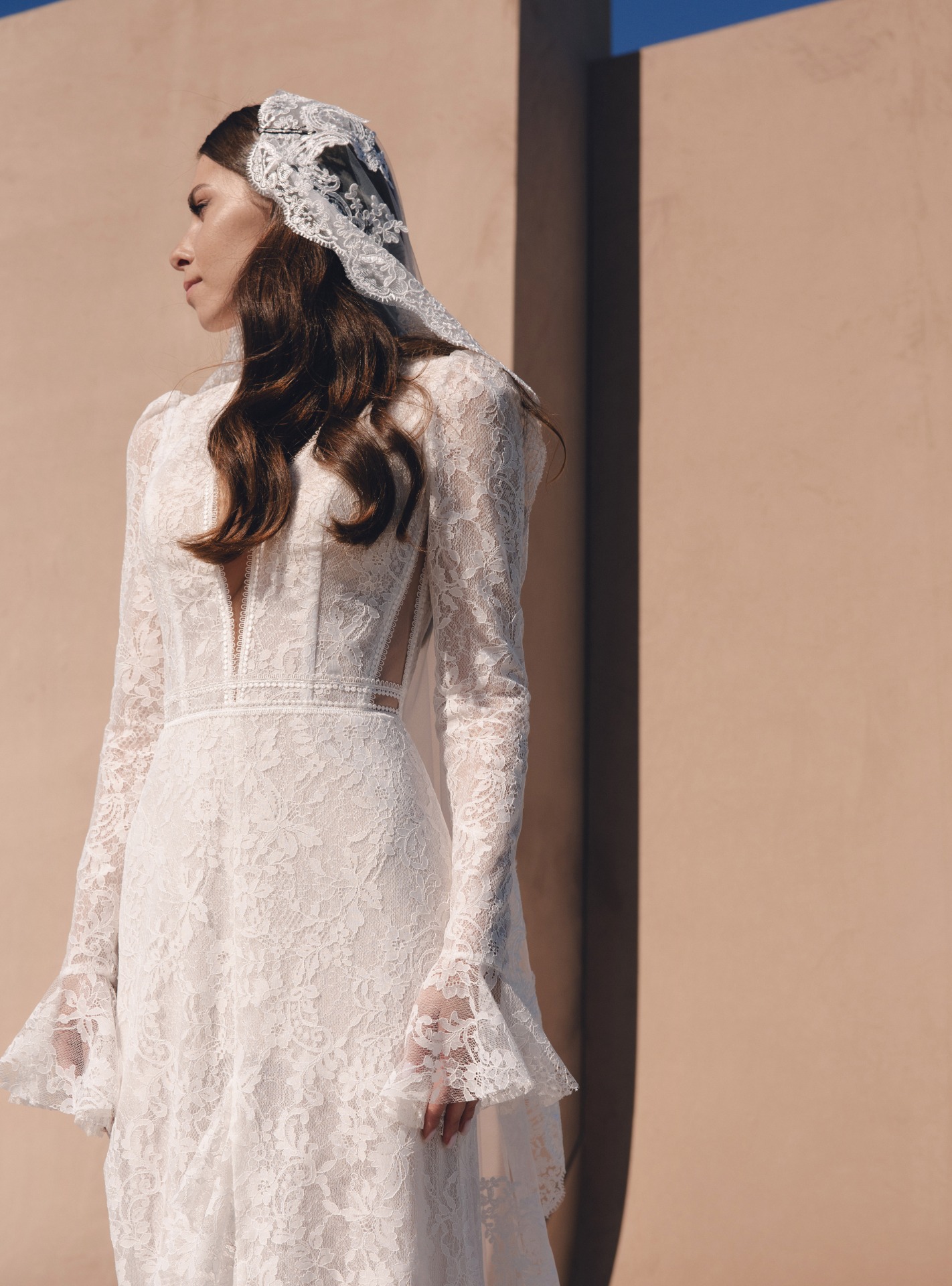 Моим выбором стало кружевное облегающее платье от Дома Весты: элегантное, с изящными рукавами и небольшим шлейфом, минималистичное и в то же время завораживающее в деталях. Образ дополнила кружевная фата в испанском стиле.