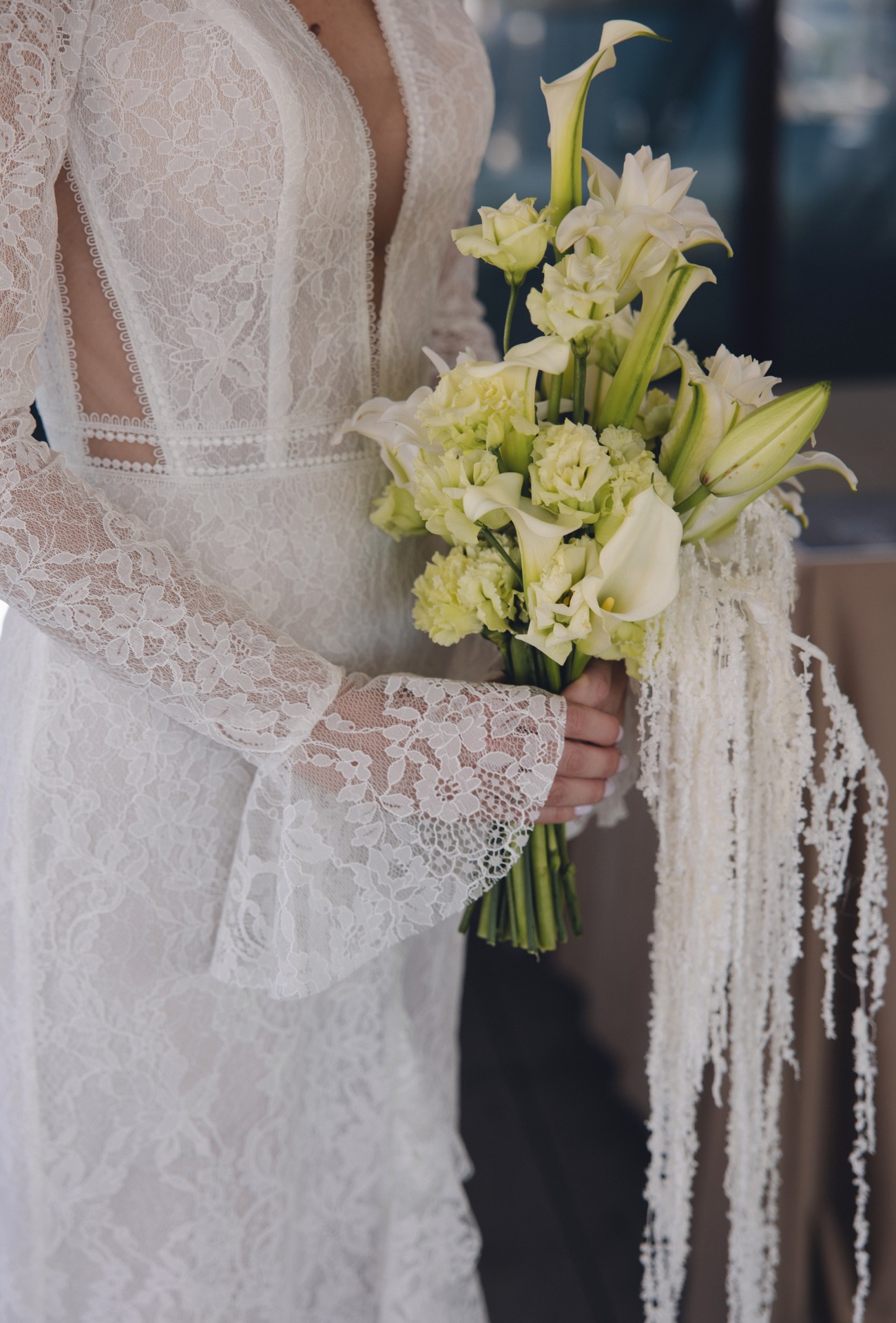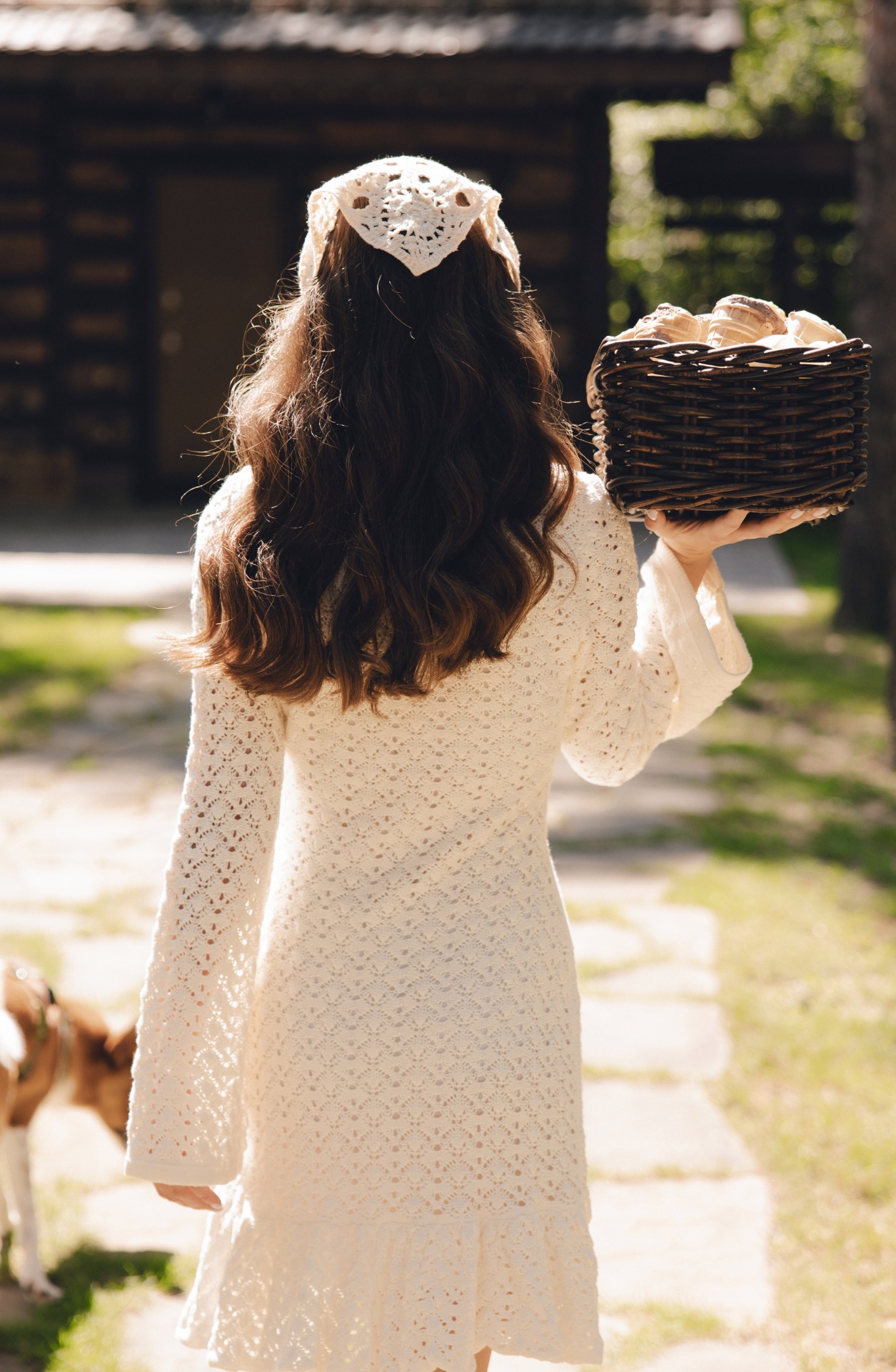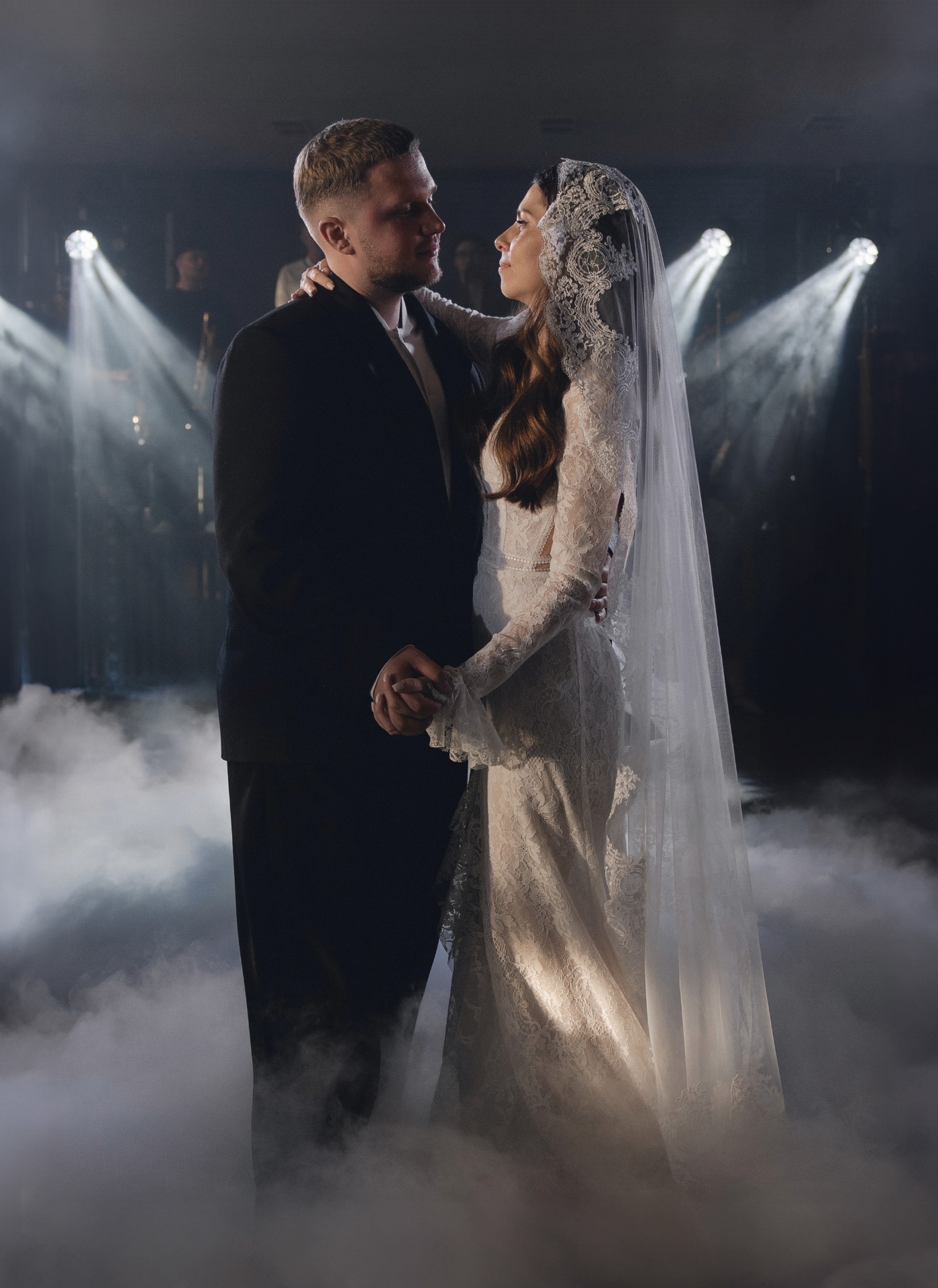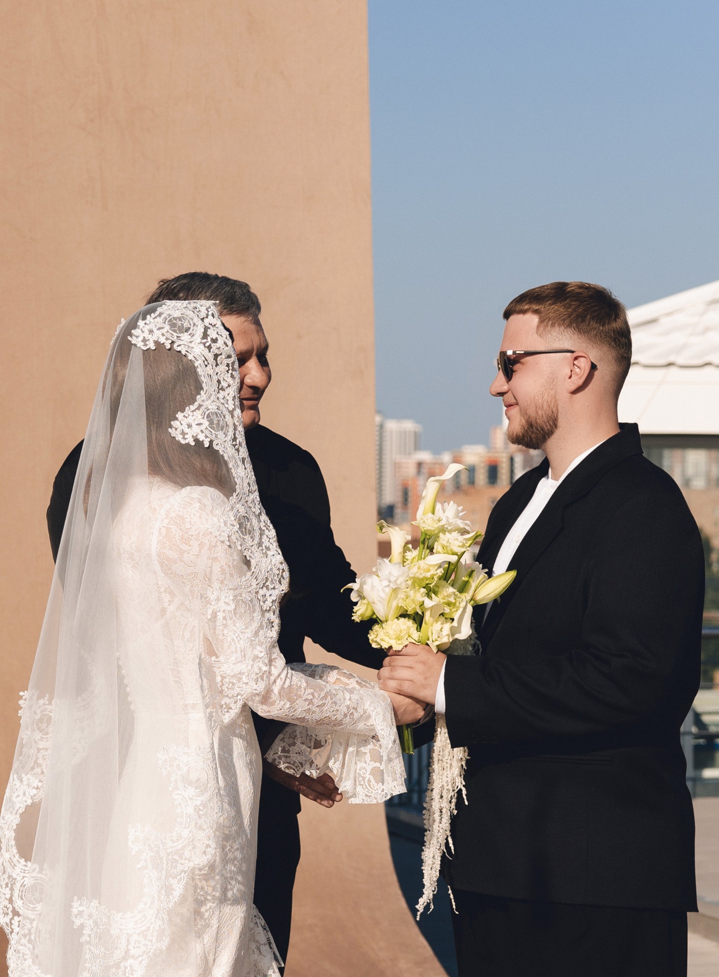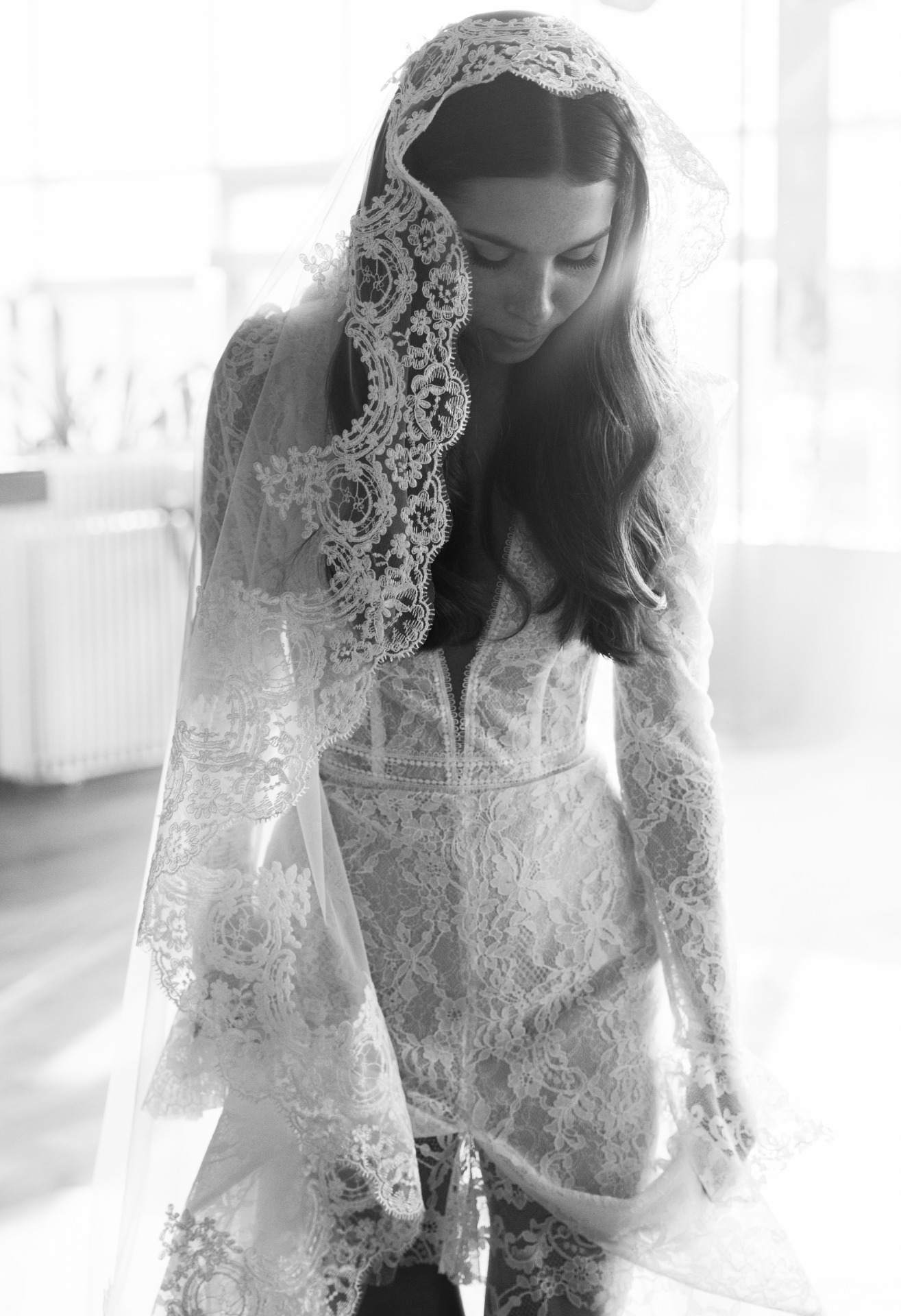 Моим выбором стало кружевное облегающее платье от Дома Весты: элегантное, с изящными рукавами и небольшим шлейфом, минималистичное и в то же время завораживающее в деталях. Образ дополнила кружевная фата в испанском стиле.