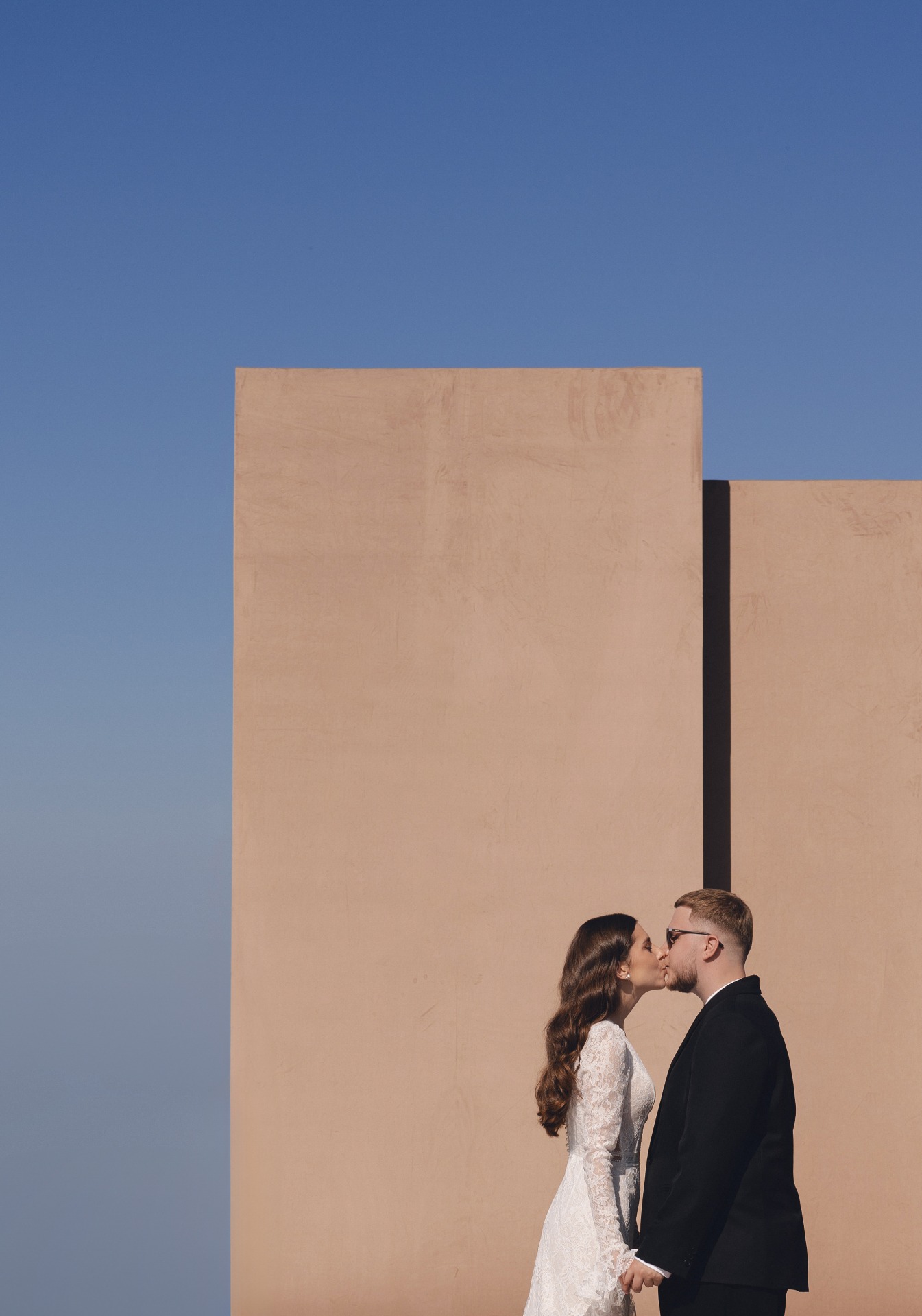 Аркадий выбрал для себя расслабленный, но стильный образ: костюм свободного кроя от Gate 31 в сочетании с белыми кедами. Когда мы увидели готовые образы друг друга, сомнений не осталось — именно так мы и хотели выглядеть в этот день.