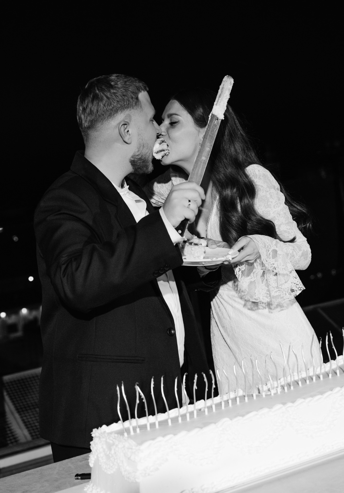 Вечер завершился романтично и ярко: метровый торт со свечами, поцелуи под салют и огни любимого города. Именно такой мы представляли себе нашу свадьбу — семейной, душевной и наполненной любовью.