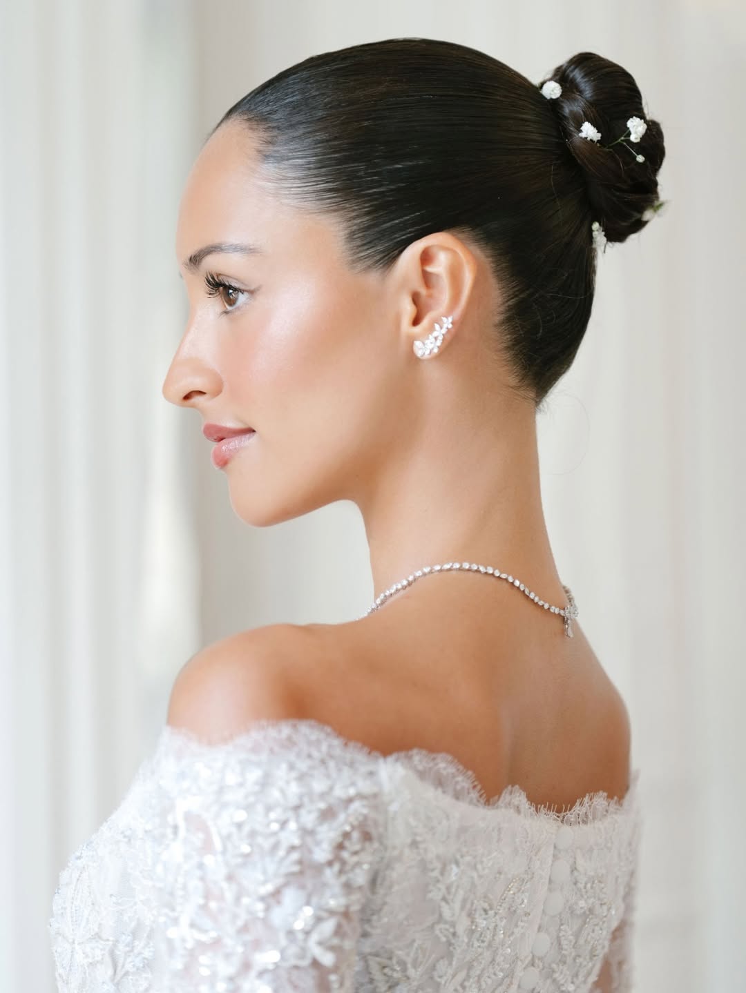 Пара выбрала классические образы жениха и невесты. На Александре классическое платье с кружевами от бренда Paolo Sebastian, дополненное аксессуарами и классическим букетом белых лилий. Для свадебной причёски был выбран гладкий пучок, который выстоял скоростную поездку до места назначения пары. Шарль, в свою очередь, предпочёл костюм в бежевых тонах, который идеально сочетается с образом невесты и пейзажами Монако.