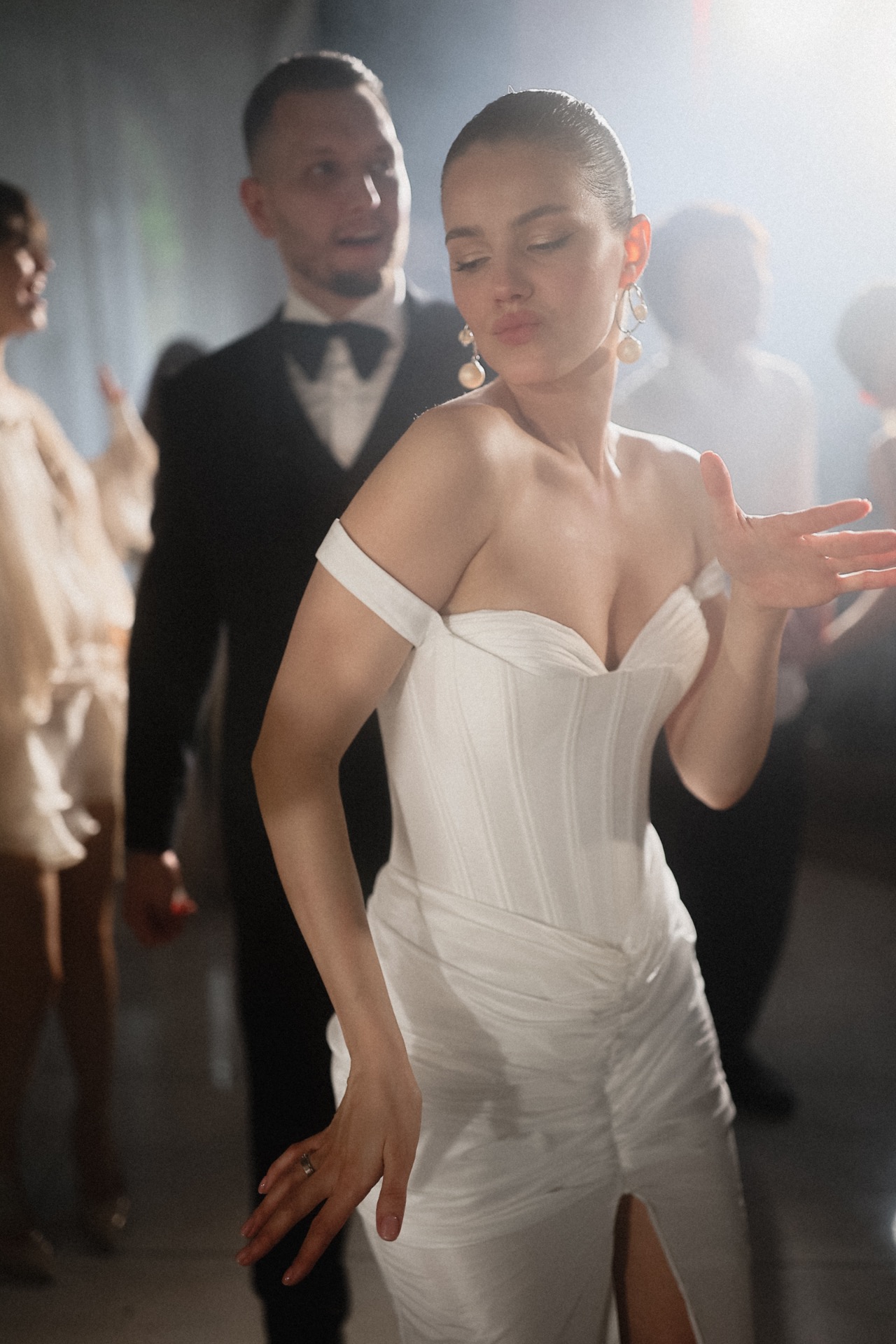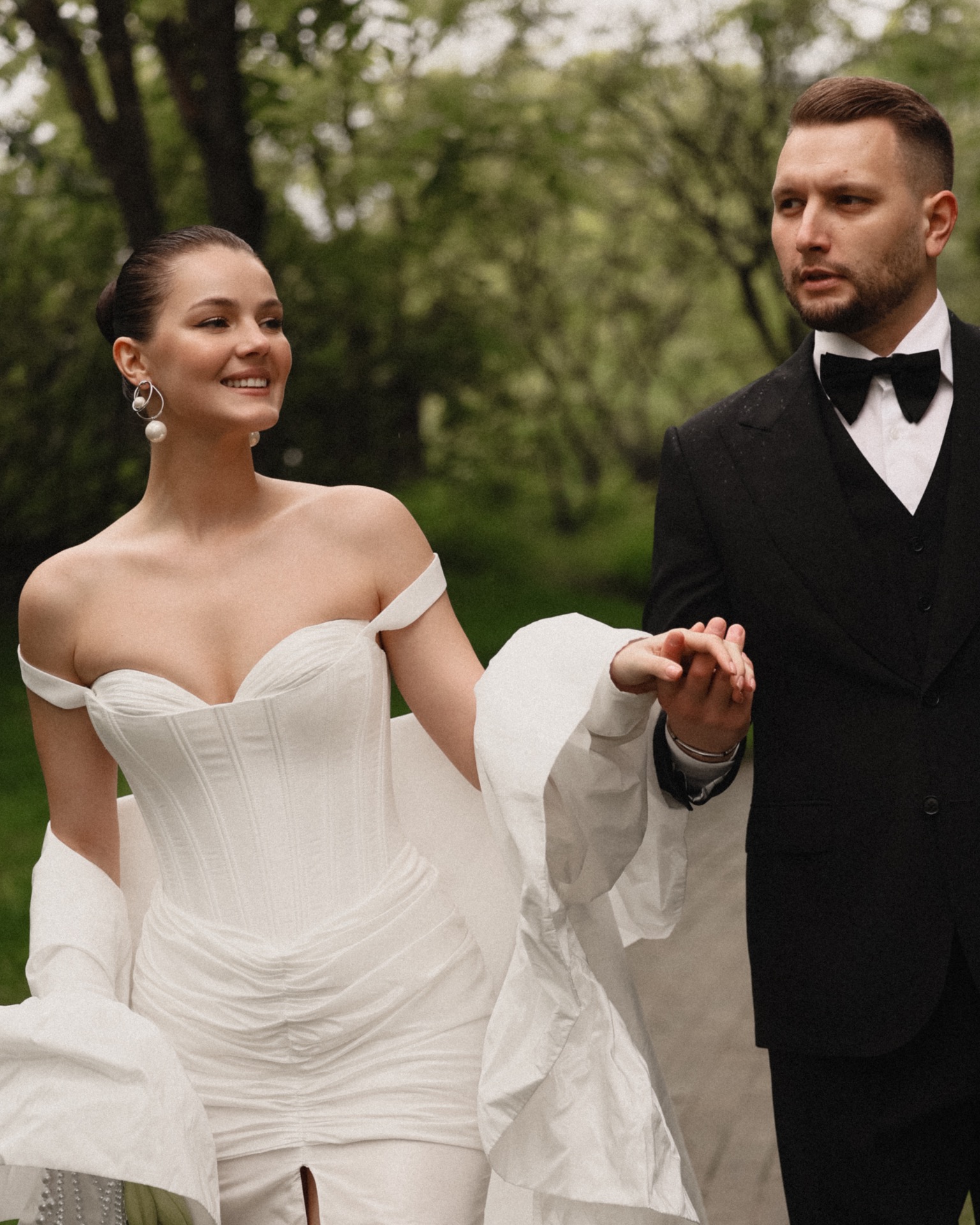 Образы Насти создавались под чутким руководством стилиста Аси Гимбатовой, в них не было ни одной лишней детали. Роскошный утренний образ включал объёмное кимоно, а на церемонии Настя появилась в торжественном наряде с элегантным кейпом.