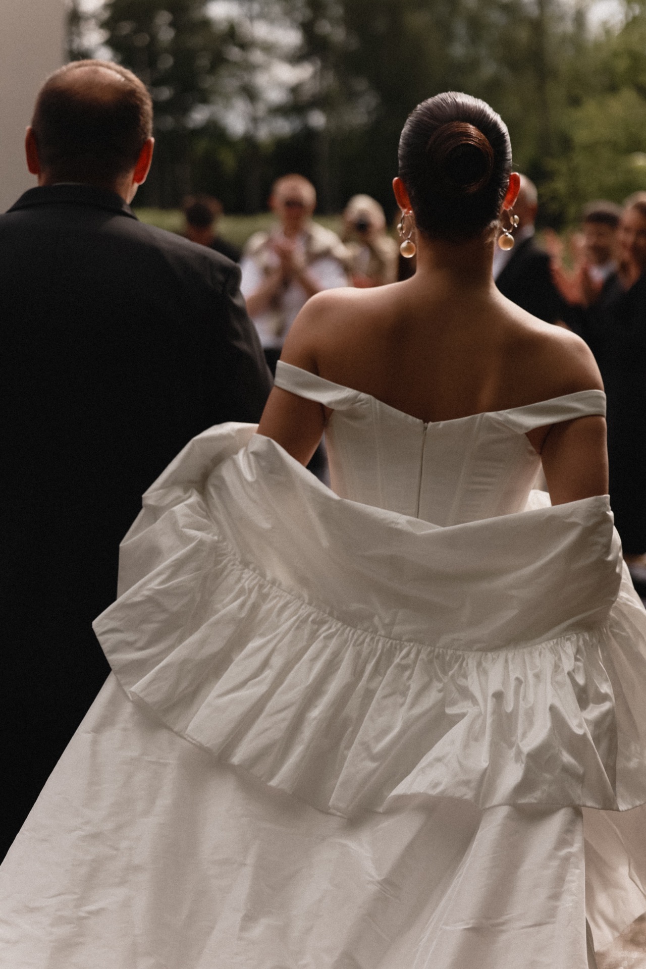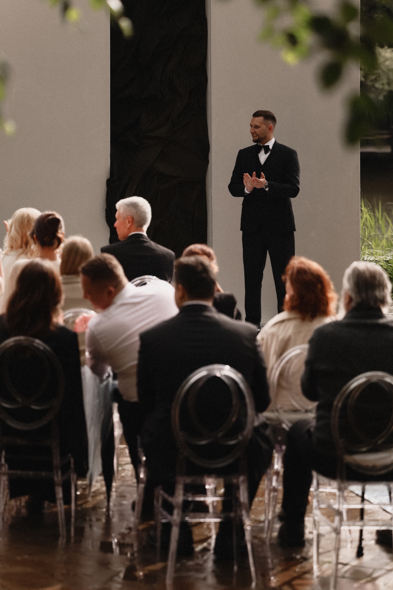 Самым трогательным моментом церемонии стал вынос колец бабушками и дедушкой пары. Под песню Анны Герман «Эхо любви» они, взявшись под руки, пронесли главный символ свадьбы — кольца.