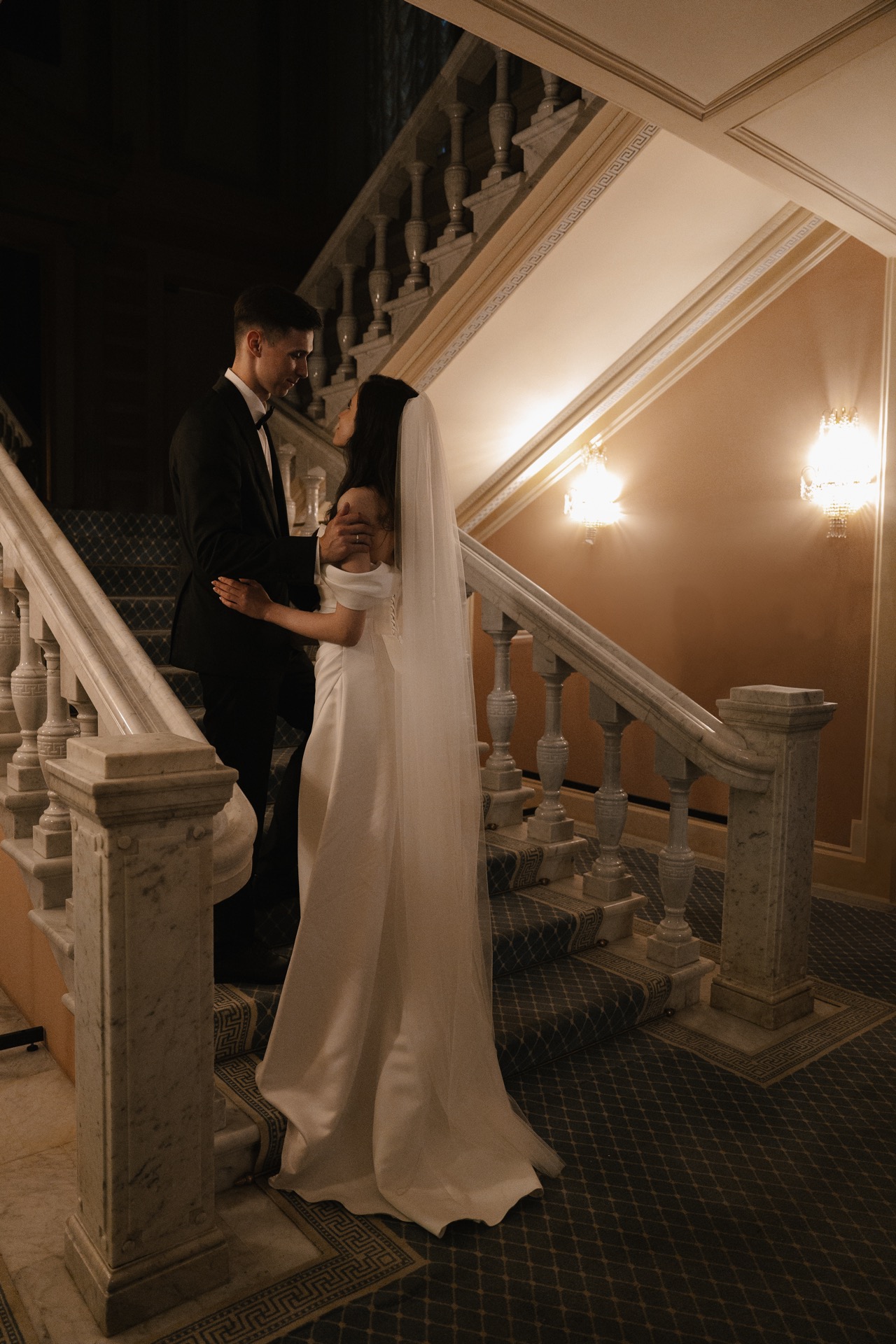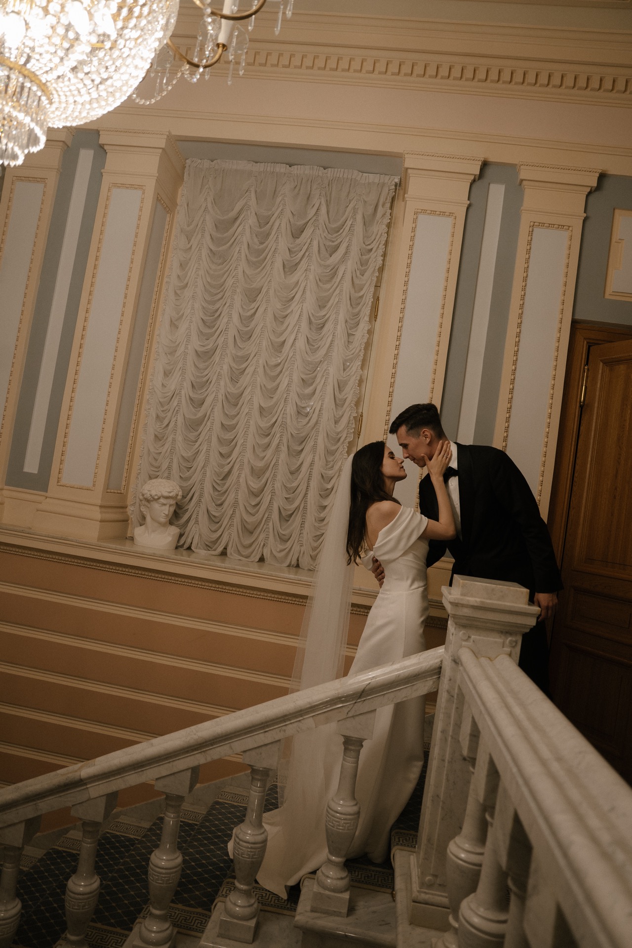 Мы видели нашу свадьбу в стиле современной классики. В качестве локации нами был выбран ресторан Grand Cafe «12», расположенный в старинном особняке на Гоголевском бульваре.