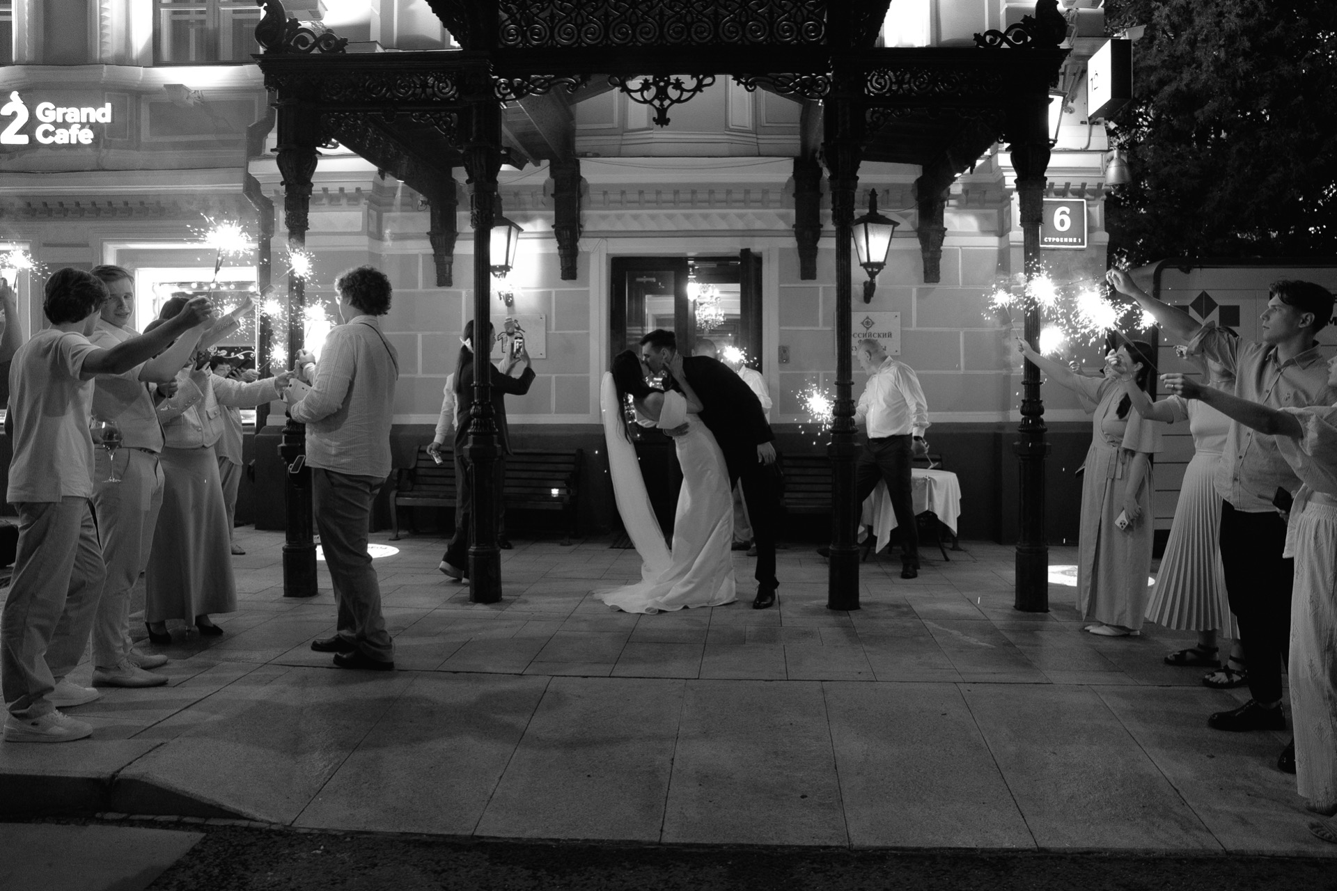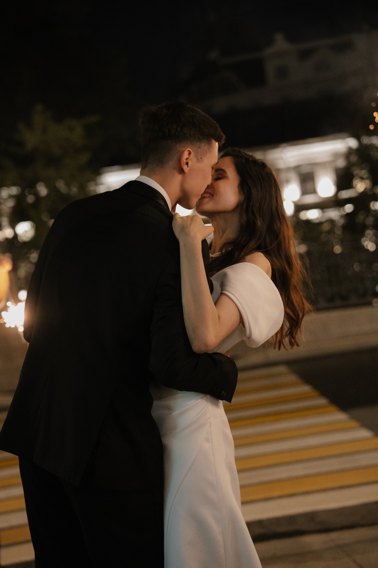 Завершением вечера стал наш свадебный танец в самом сердце Москвы с бенгальскими огнями и совместными фотографиями.