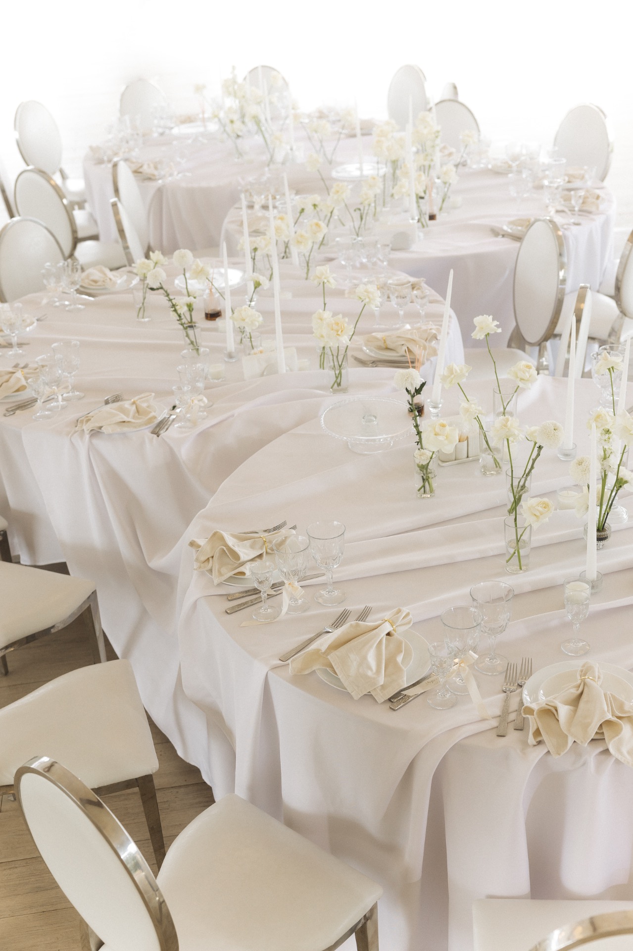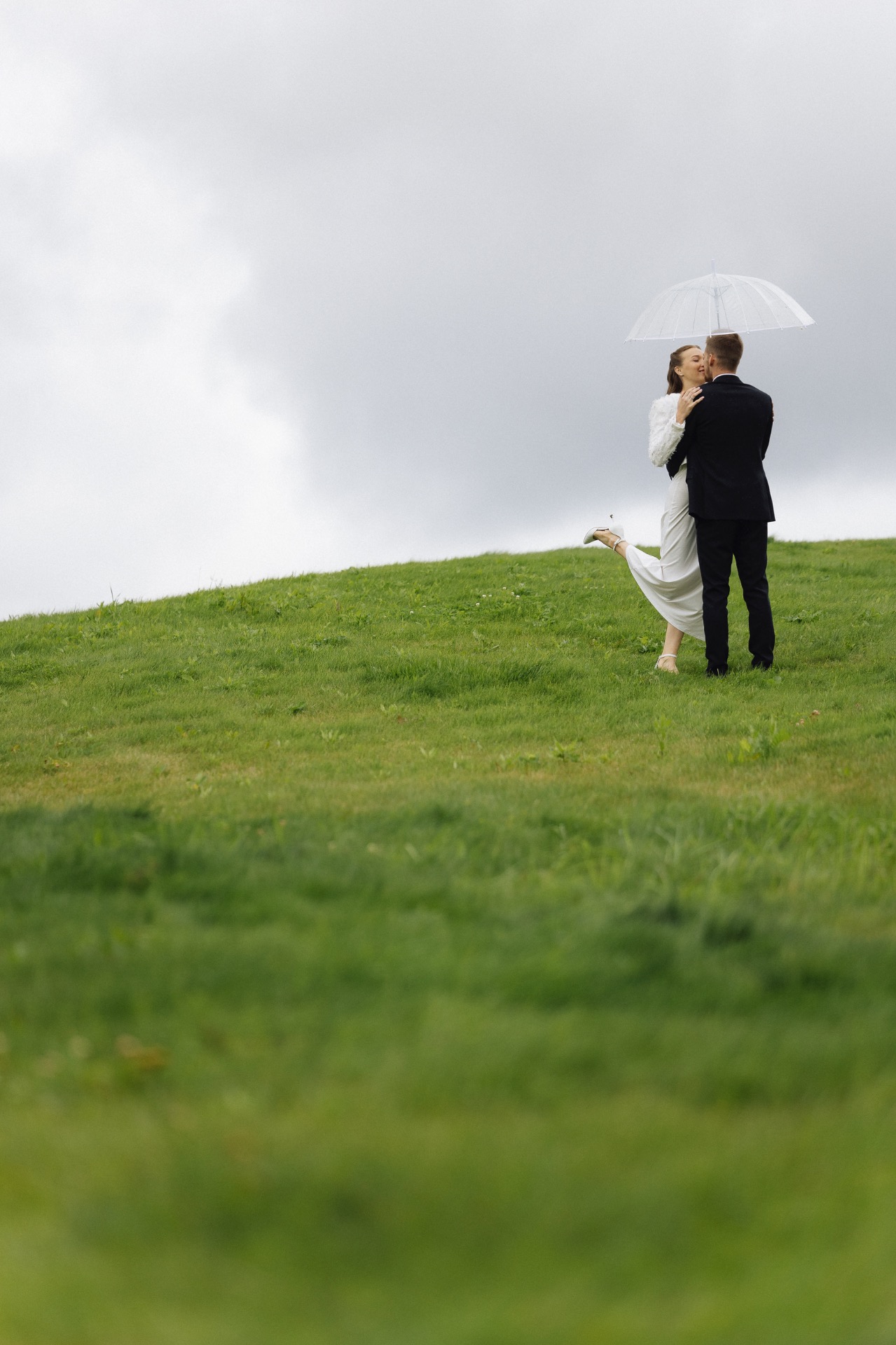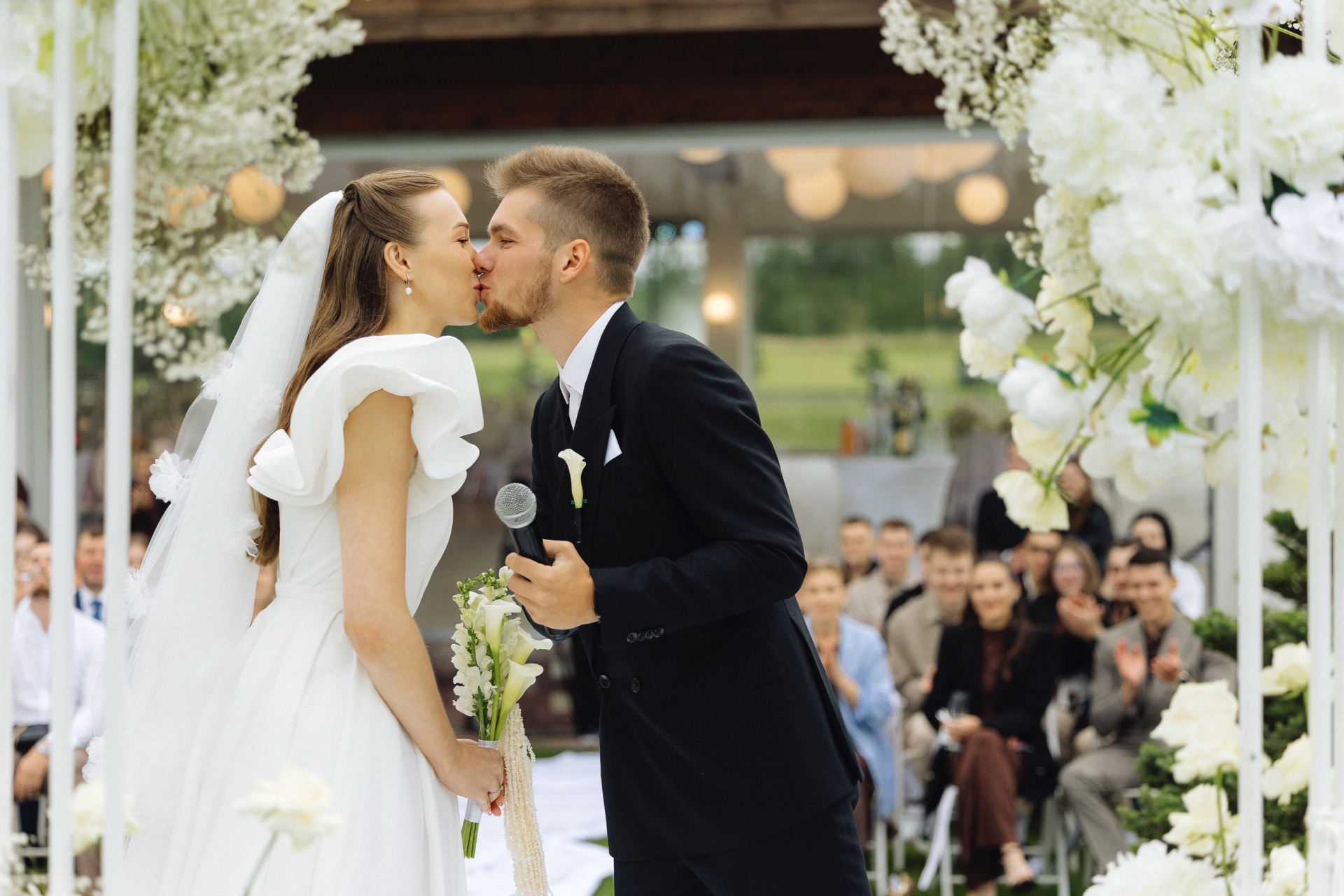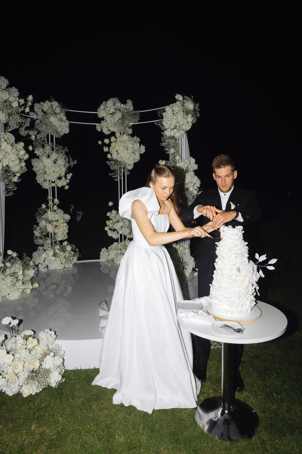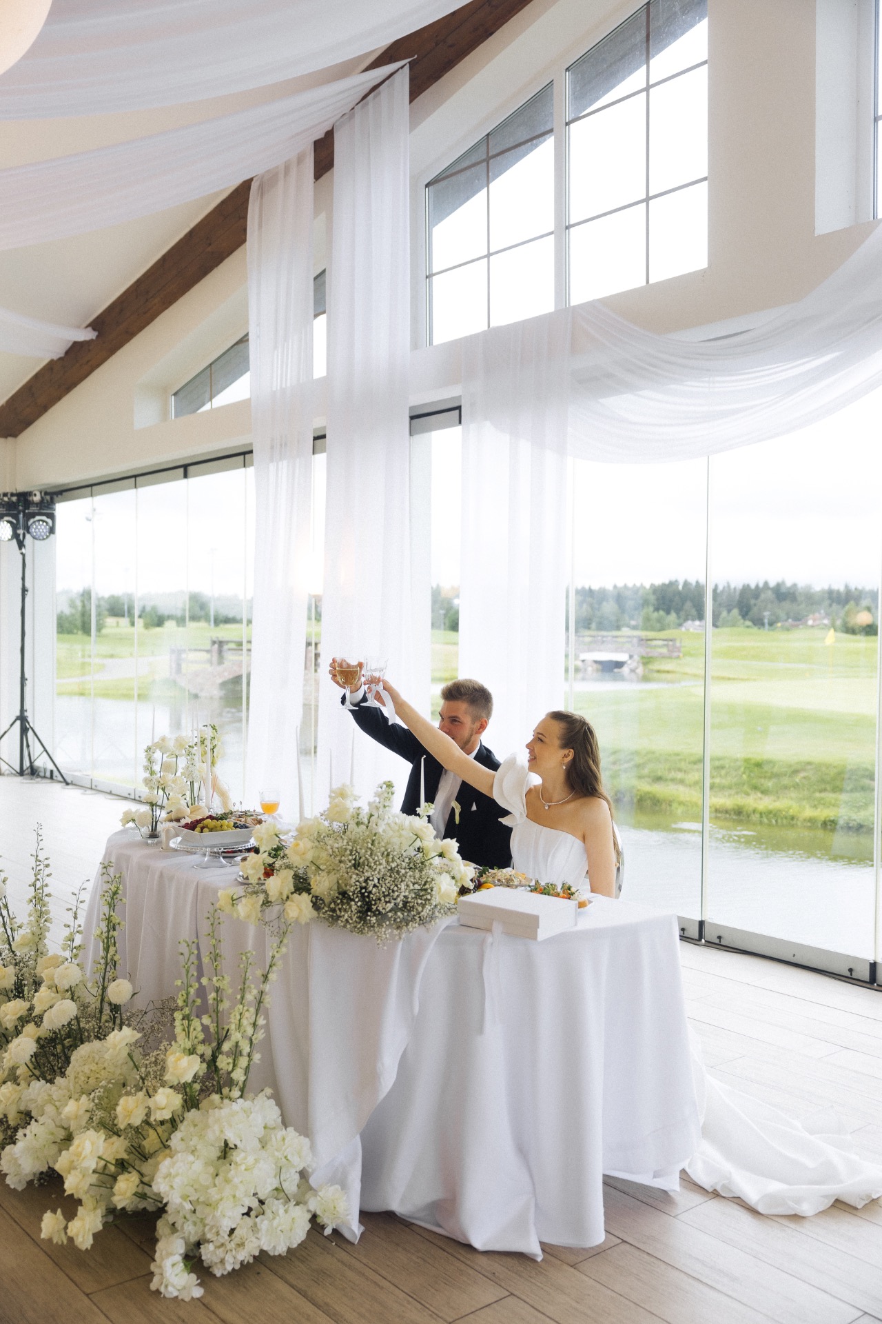 Мы сразу определились с площадкой. Мне хотелось много зелени и красивого ландшафта, и поле для гольфа оказалось той самой золотой серединой. В вопросе палитры сомнений тоже не было. По нашему мнению, зелёное поле для гольфа лучше всего сочетается с белой классикой.
