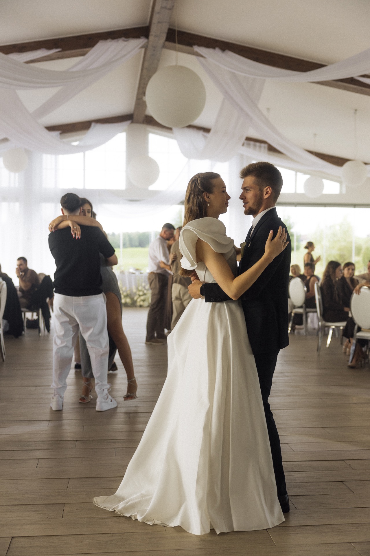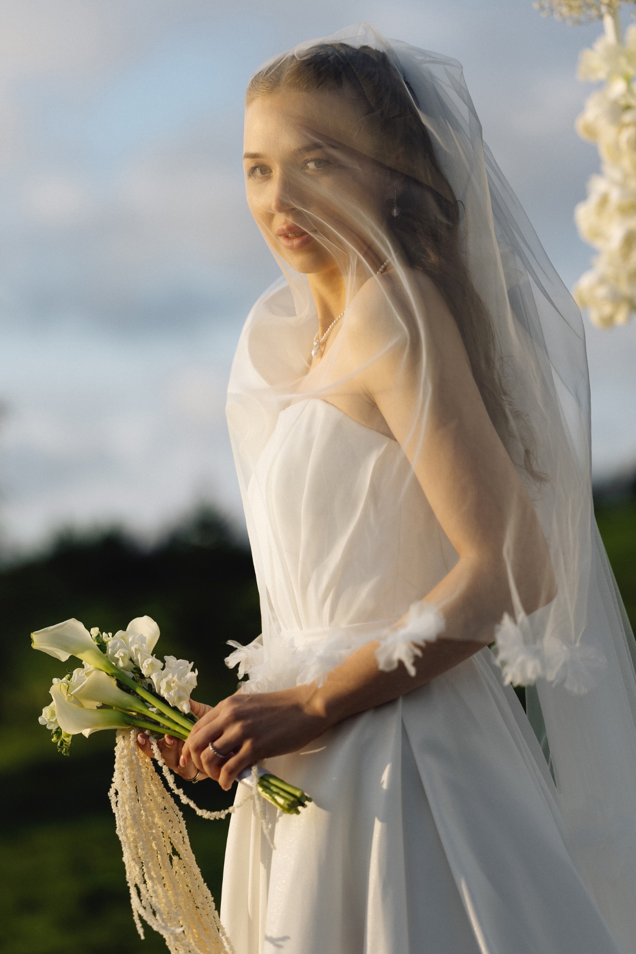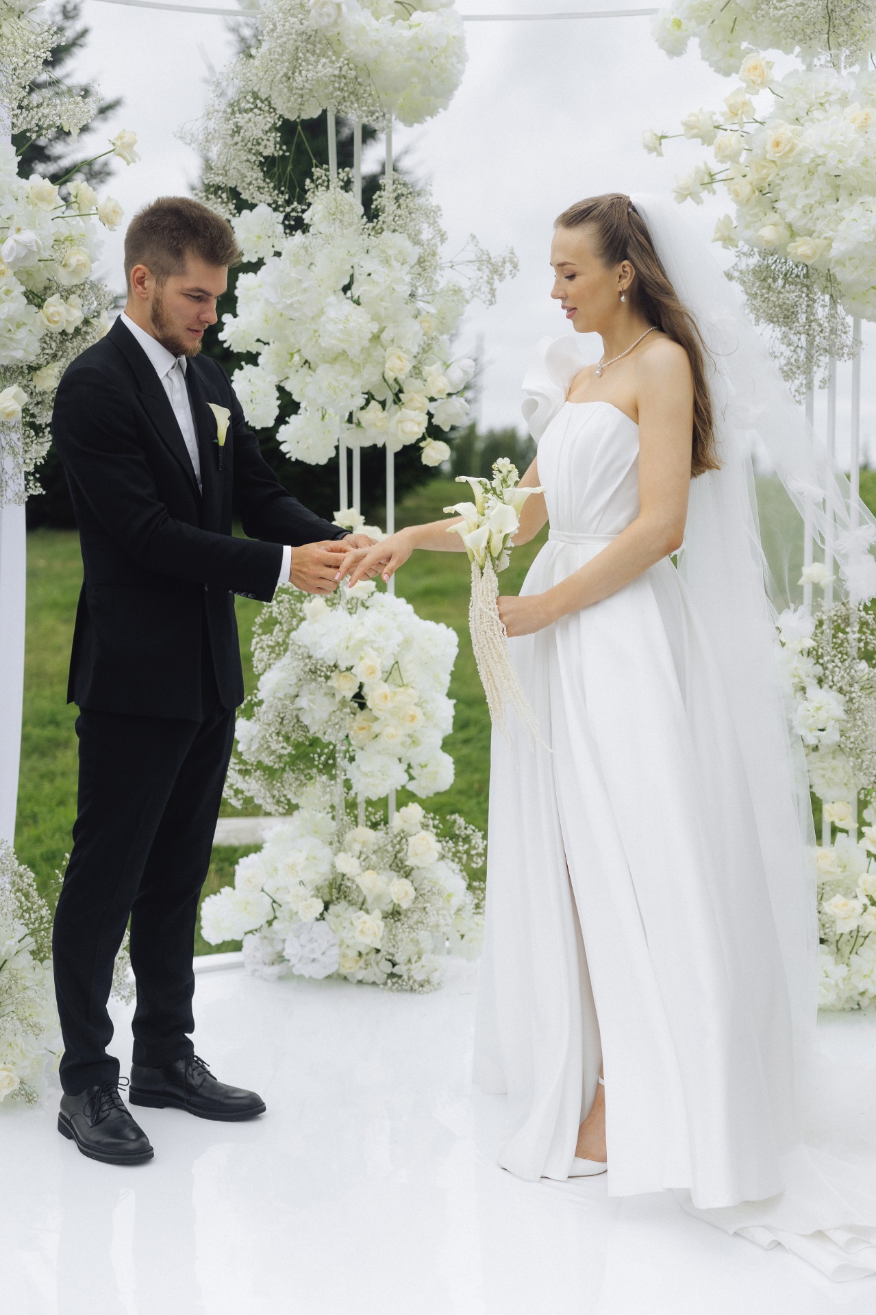Своё свадебное платье я представляла лёгким и воздушным, но в то же время максимально торжественным и нежным. Этот выбор для меня был очень сложным и долгим. Но потом я увидела то самое платье, и между нами случилась самая настоящая химия. Без преувеличения, это была любовь с первого взгляда. По моему мнению, оно идеально вписалось в общую концепцию свадьбы.