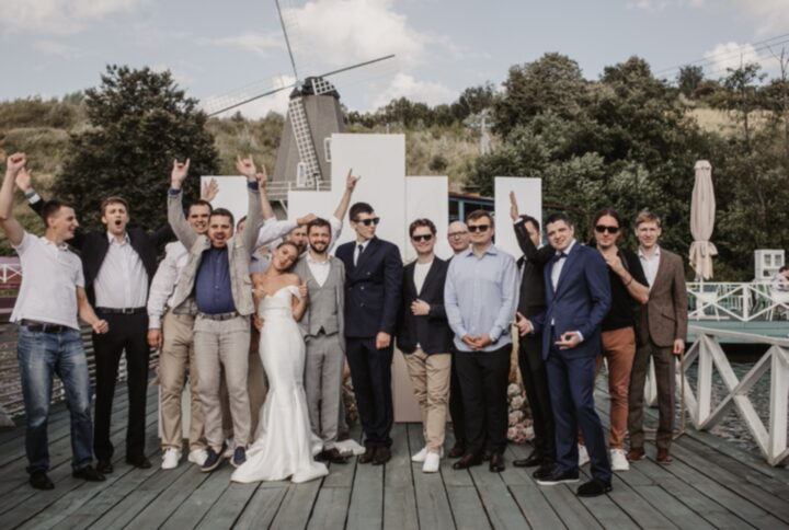 Невеста: Мы познакомились с Гошей в общежитии. Я тогда приехала из отпуска, моя одногруппница попросила переночевать с ней, так как боялась спать одна (ее парень уехал на конференцию, она жила в его комнате). Соседом ее молодого человека был Гоша. Она тогда решила выпить вино, я ей не составила компанию, она позвала Гошу. Они долго спорили, кто из них дольше стоит на руках. Тут вмешалась я и сказала: «Я». Пришлось это доказать. После этого Гоша пригласил меня на свидание, и началась наша история.