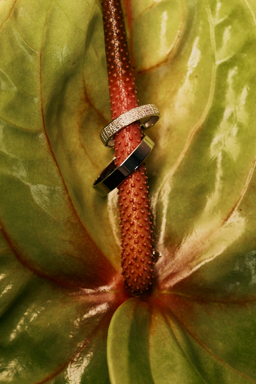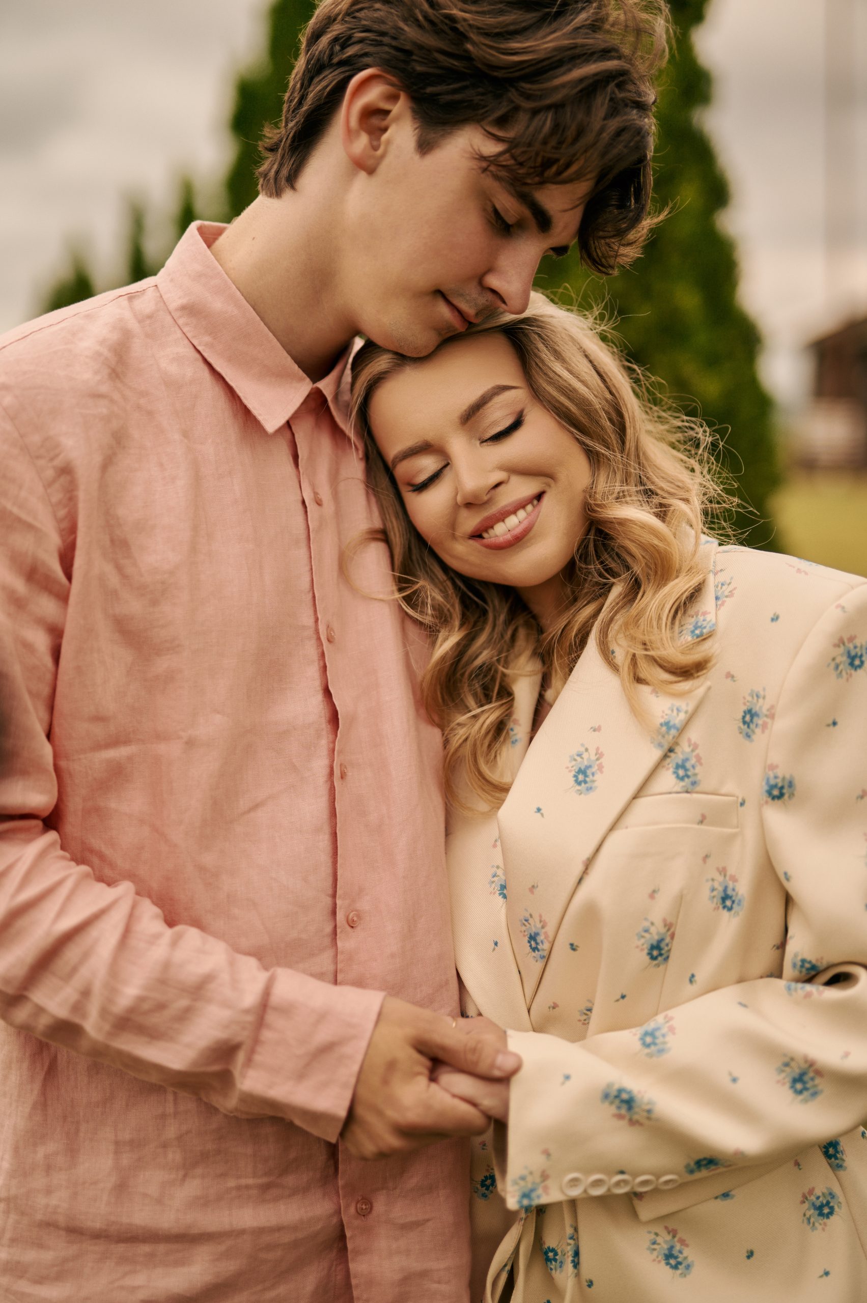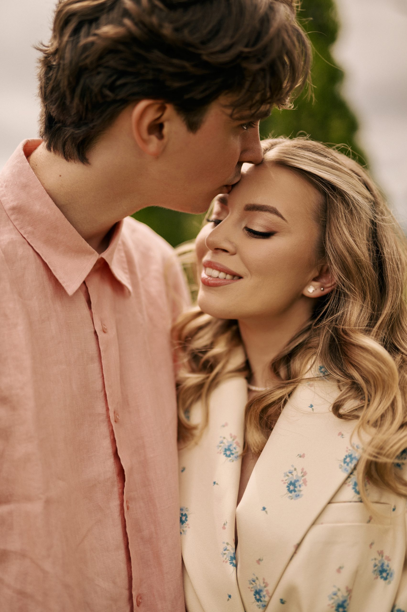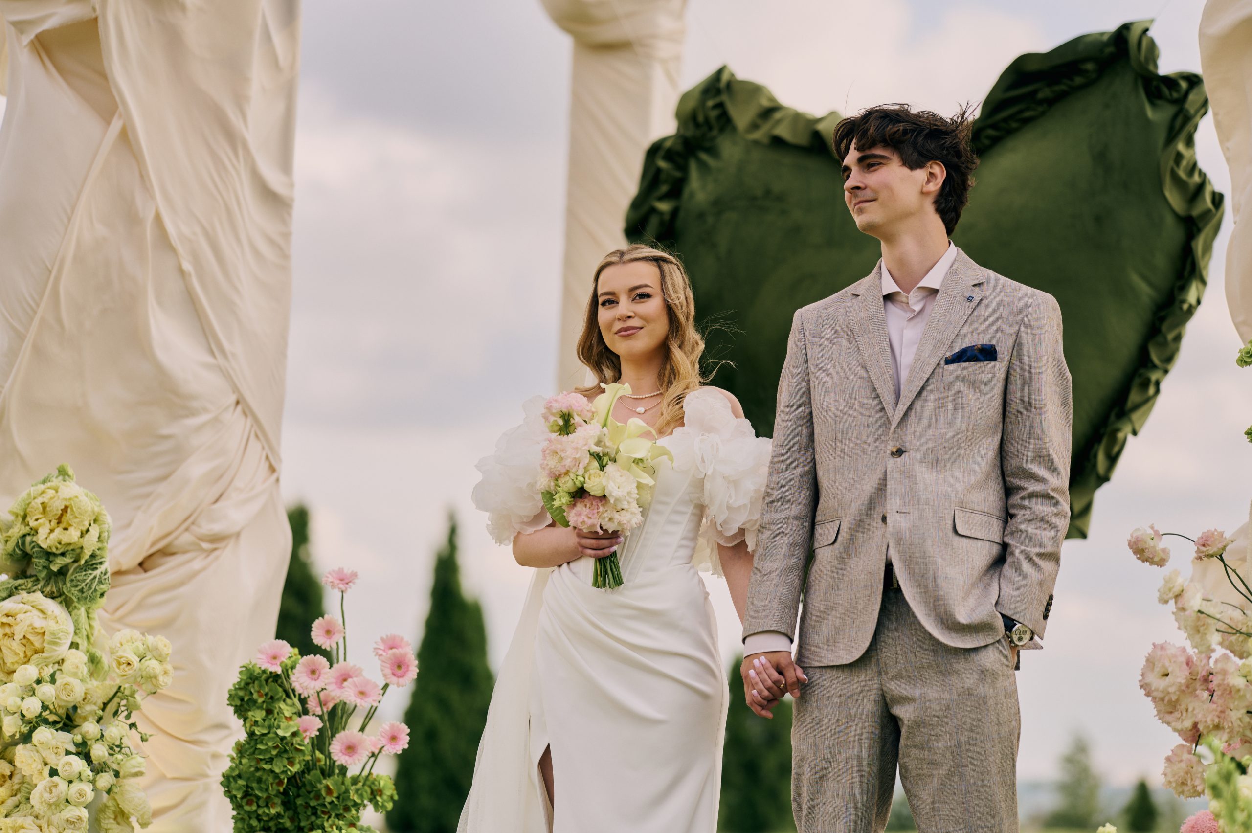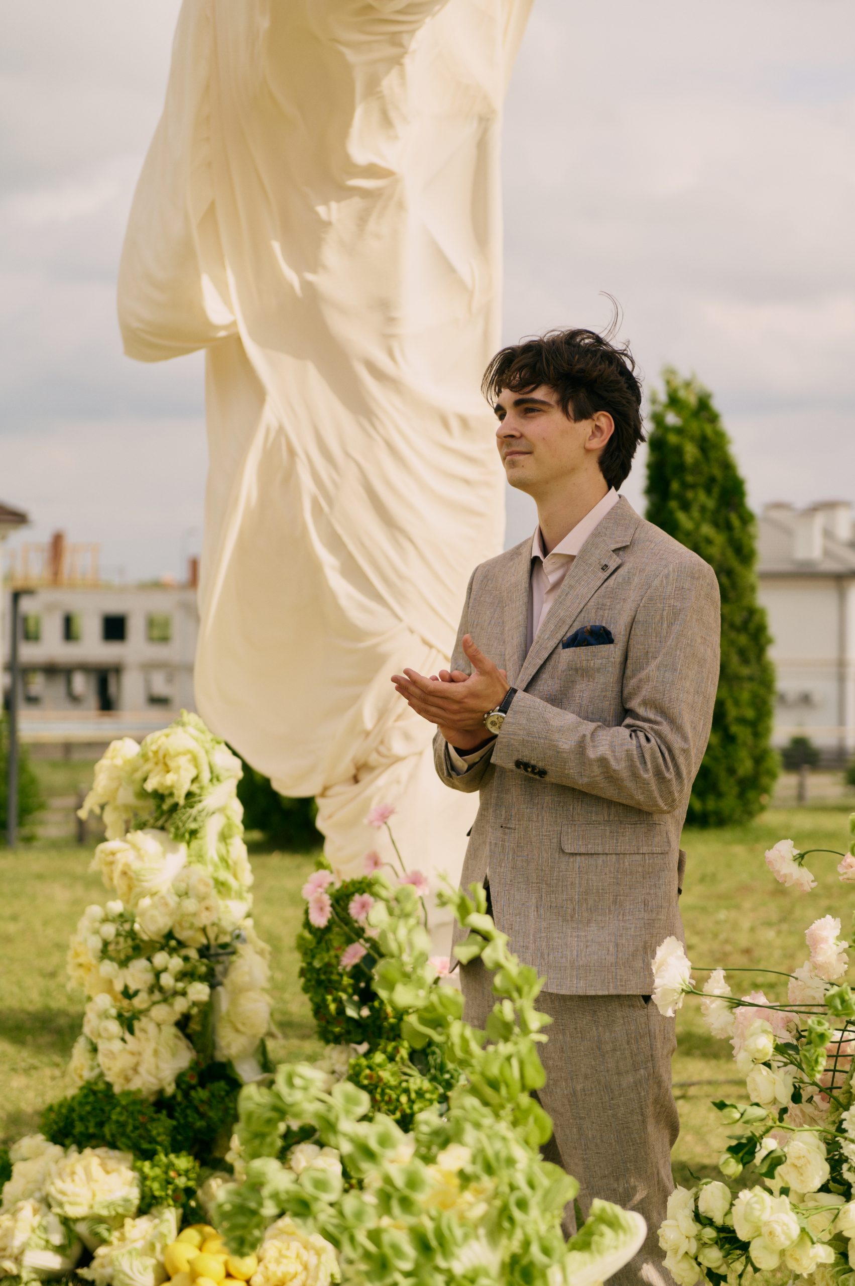 На удивление, образ жениха занял у нас больше времени. Мы хотели костюм, который не был бы банальным, но и не эксцентричным. В итоге выбрали бежевый костюм с необычной фактурой и подобрали необходимые аксессуары, получилось очень свежо. Особенно мы остались довольны выбором рубашки не белого цвета.