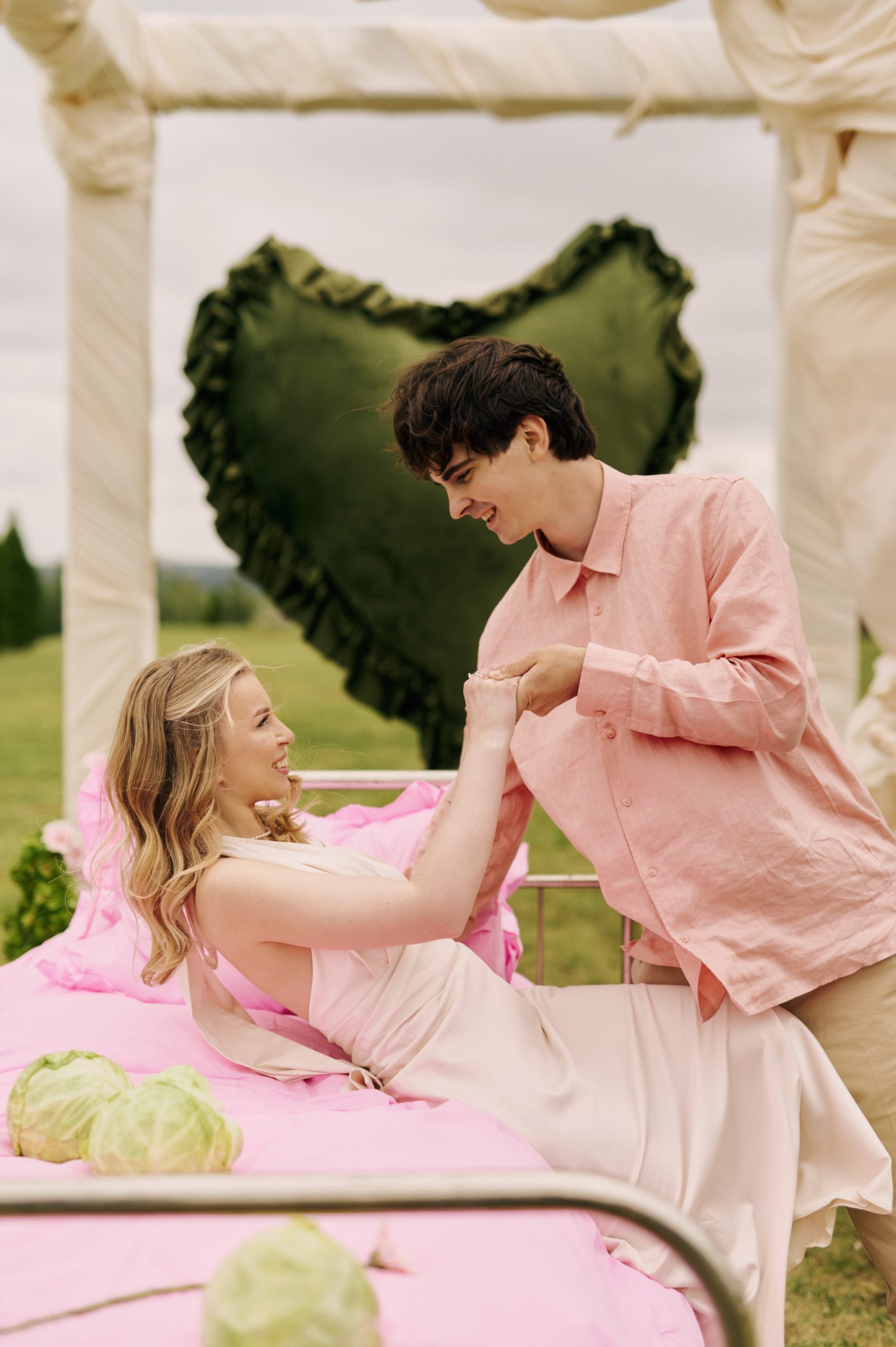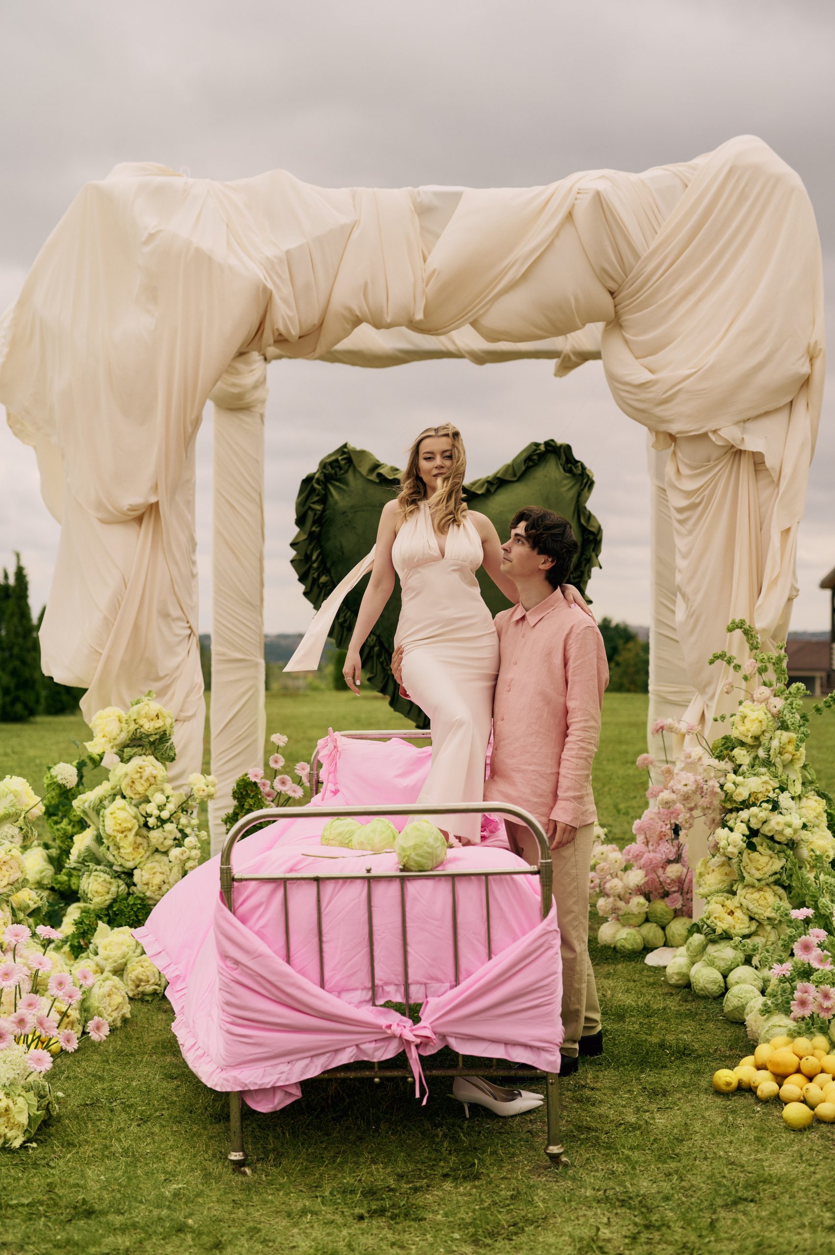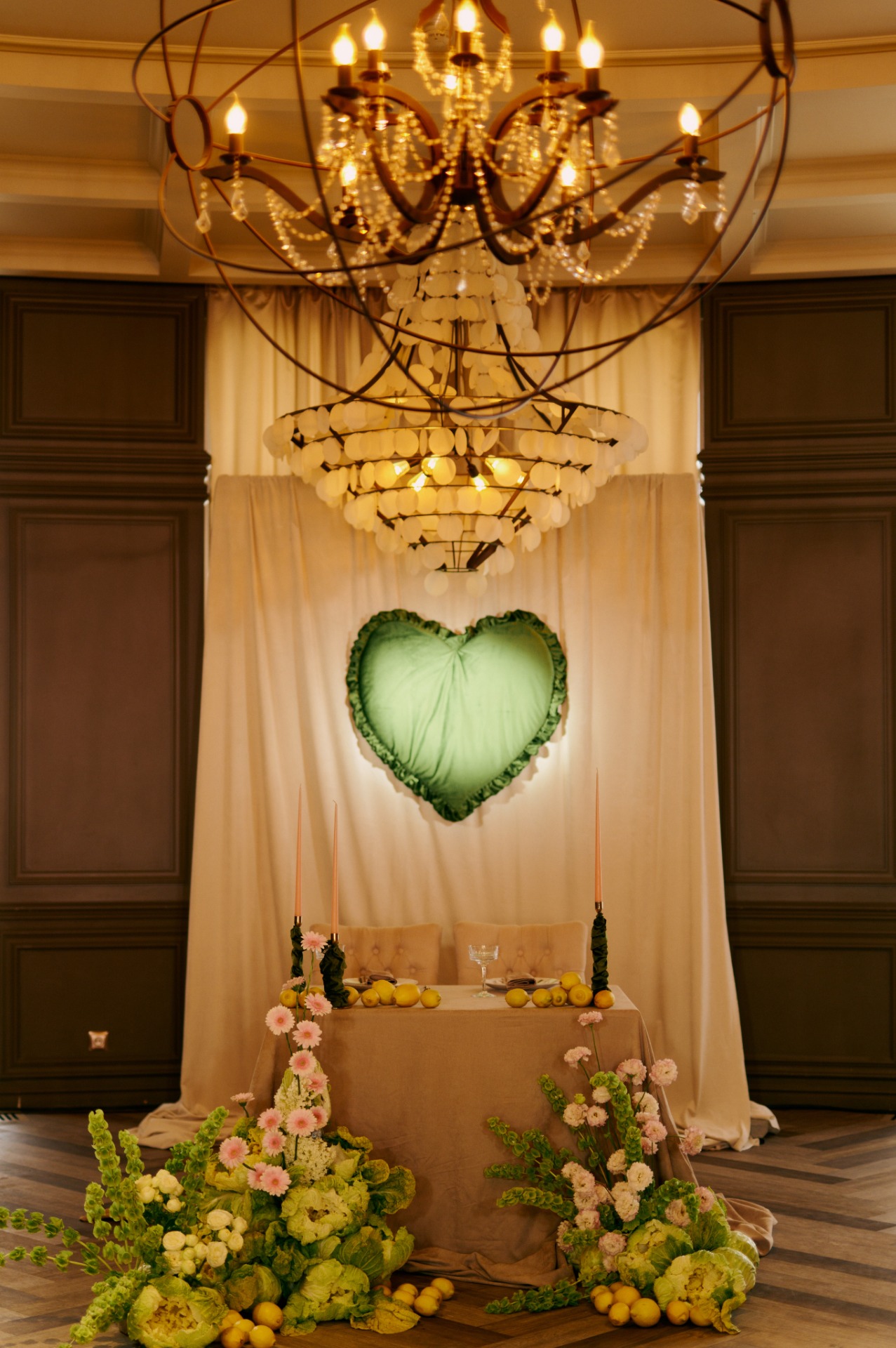 Идея с капустой родилась случайно во время одного из брейнштормов и покорила сразу же всех. Хотелось выбрать нетипичную цветовую гамму, не перетягивающую на себя излишнее внимание. Зеленый с розовым оказался самым удачным сочетанием для нас.