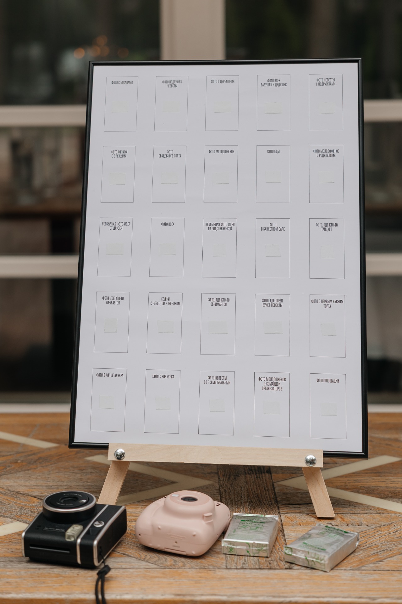 На велкоме, в зоне встречи гостей, у нас играл саксофонист, а также был стенд с фотозаданиями и моментальными камерами.