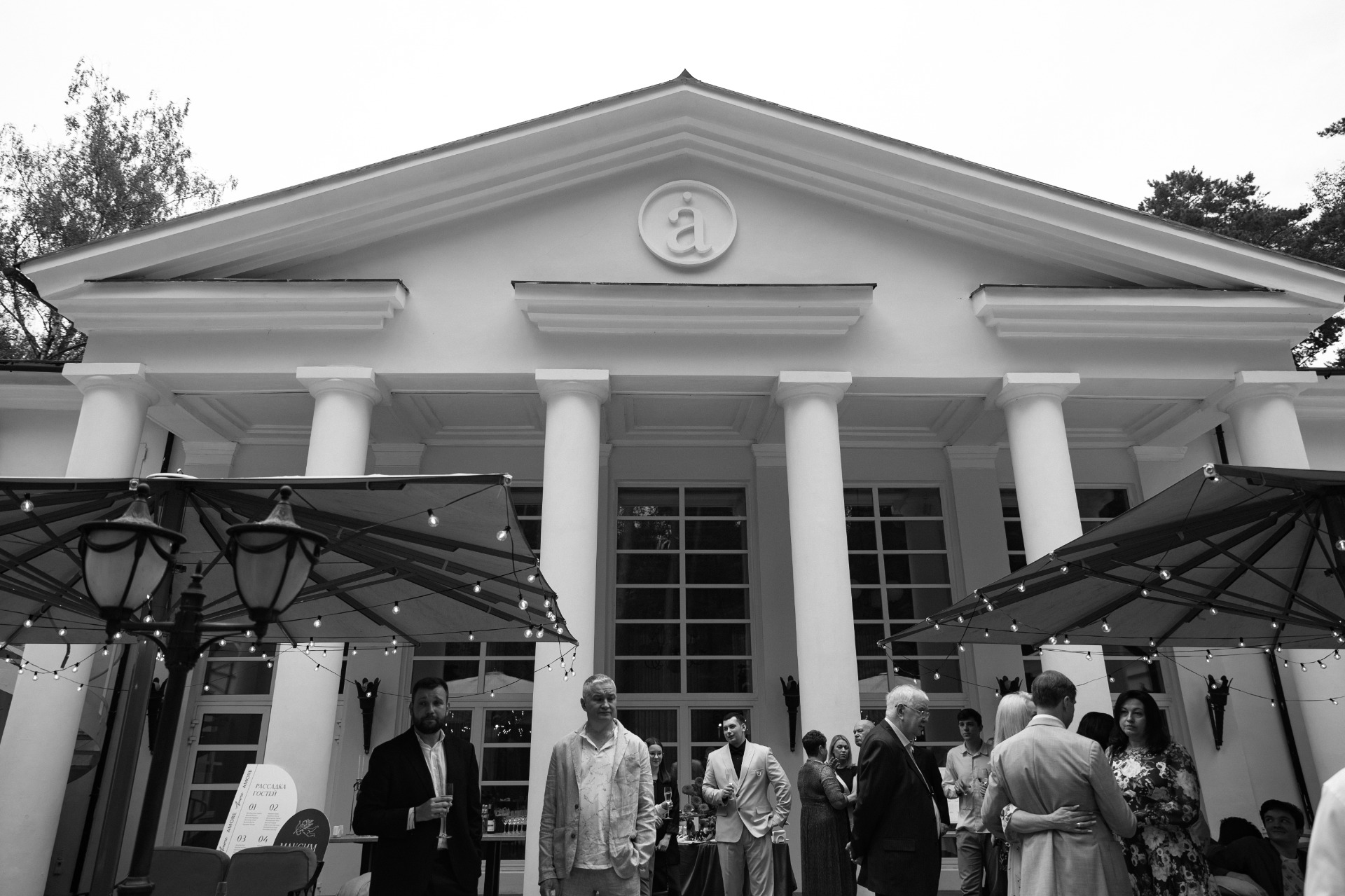 Флористика, оформление зоны церемонии, оформление столов — во всём этом мы положились на выбор специалистов.