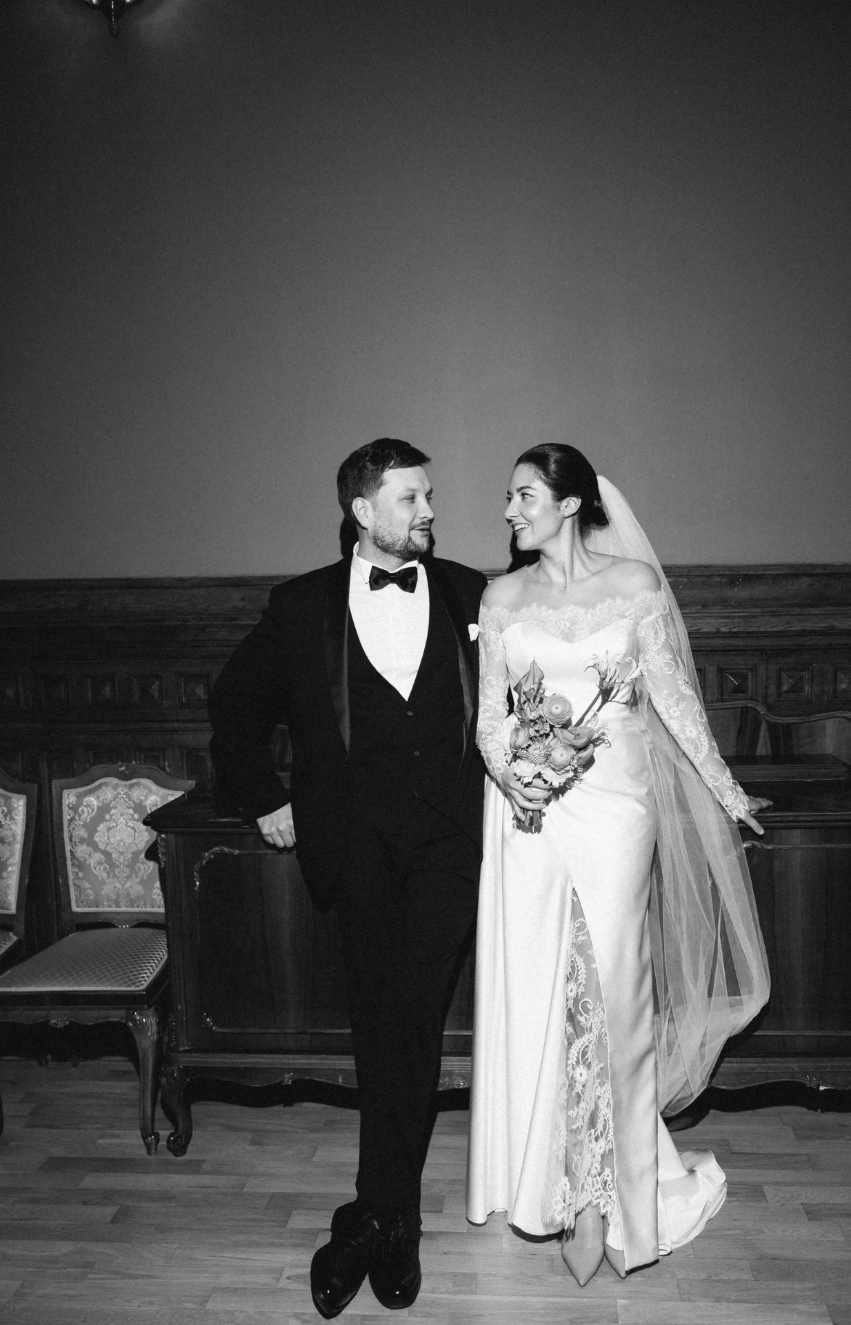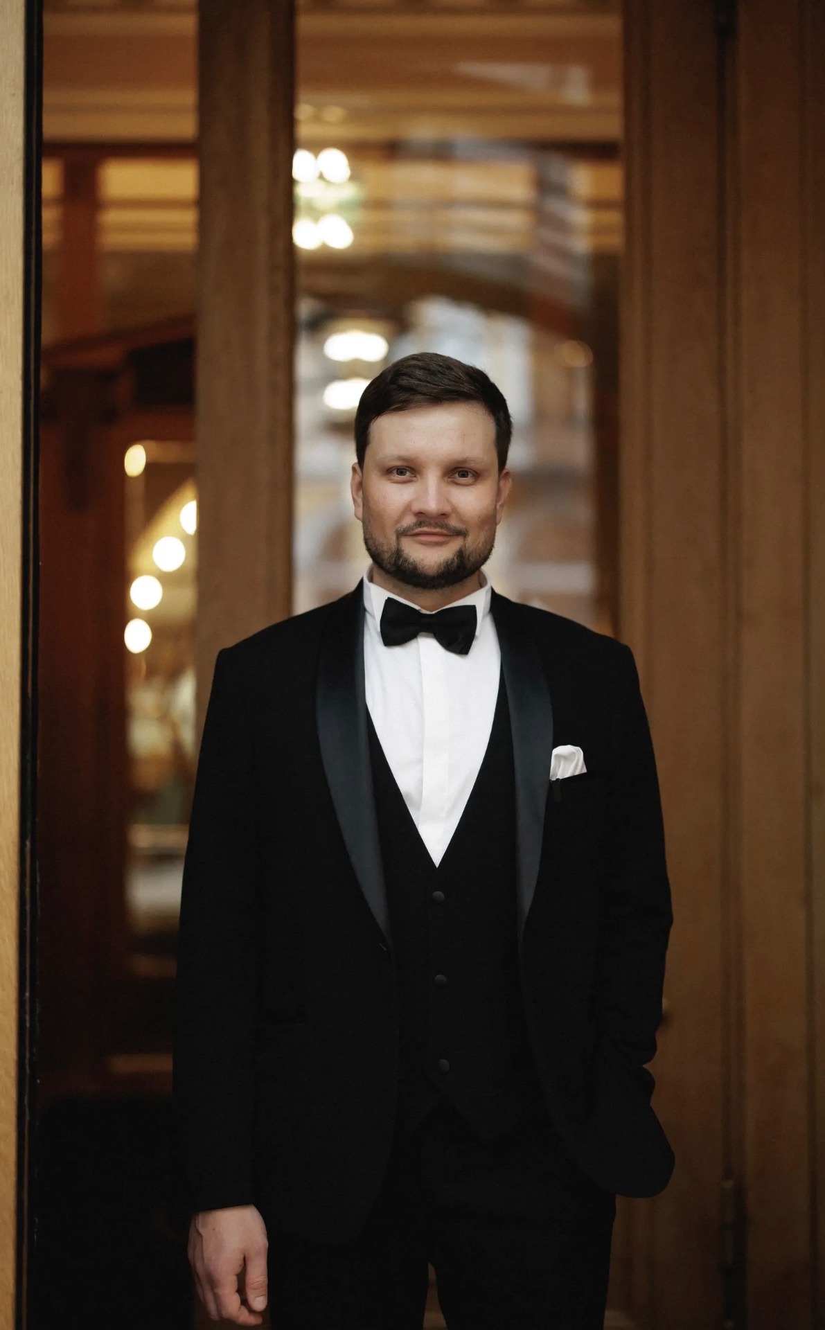 Максим впервые ради меня надел классический смокинг с безупречно белой рубашкой. Его образ был сдержанным, элегантным и идеально отражал характер нашего дня.
