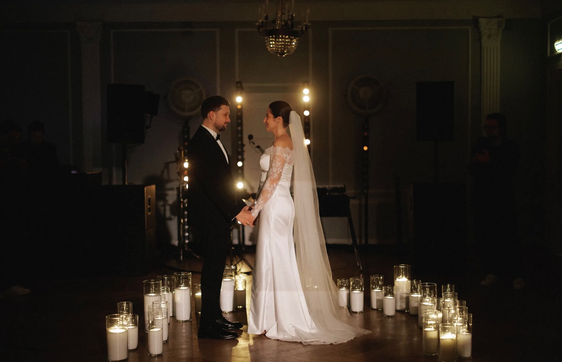 Вечером мы оказались в атмосферном петербургском особняке с видом на Неву. Пространство зала утопало в мерцании сотен свечей, а вокруг были только самые близкие, поэтому атмосфера ощущалась по-настоящему семейной.