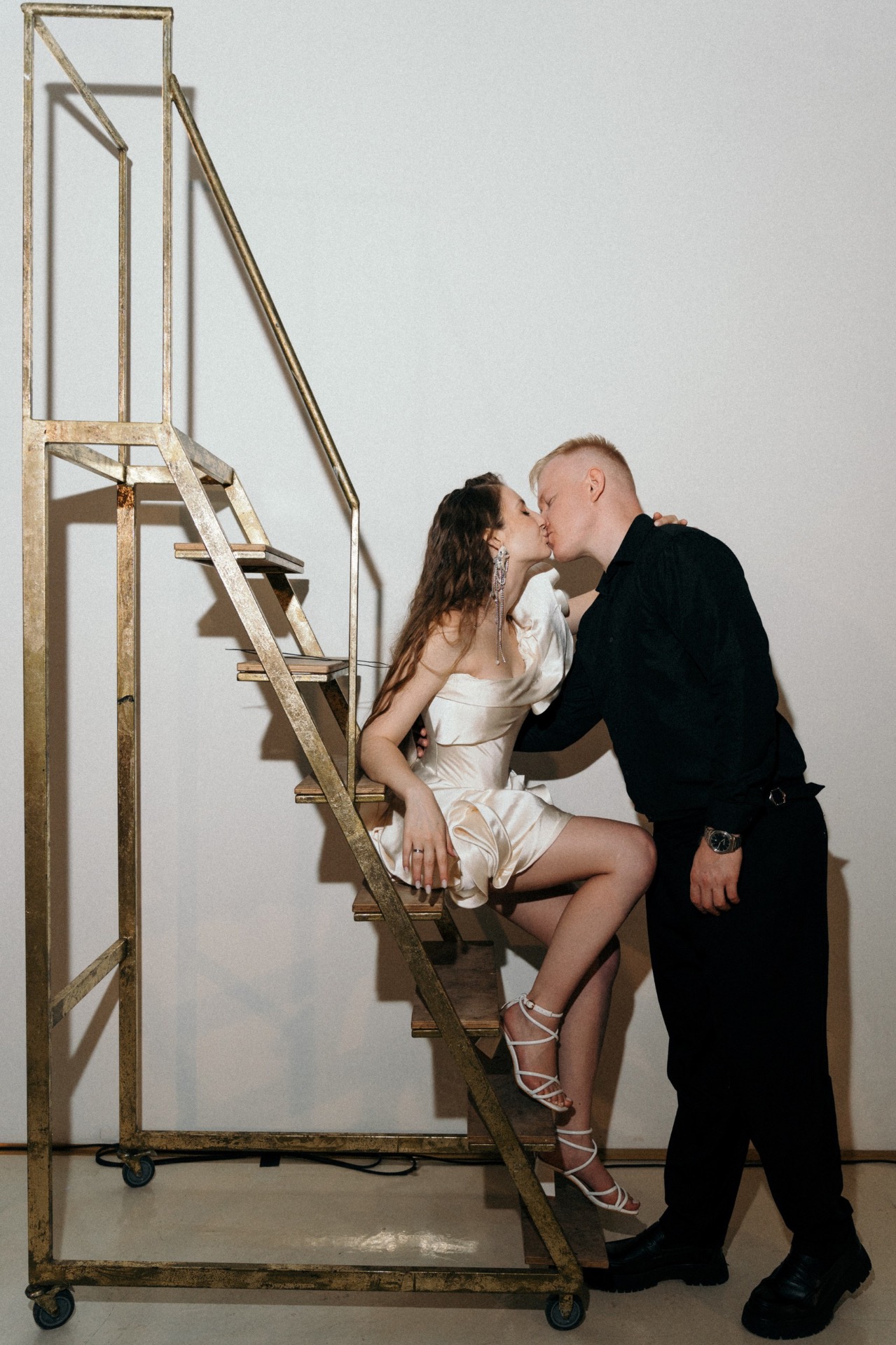 Образ Виталия мы подобрали достаточно быстро. Изначально мы хотели видеть его в этот день в чёрном костюме, но с фасоном определились уже в магазине: выбрали оверсайз, лоферы на высокой подошве и белую футболку под пиджак. В качестве второго образа для него мы взяли чёрную рубашку.