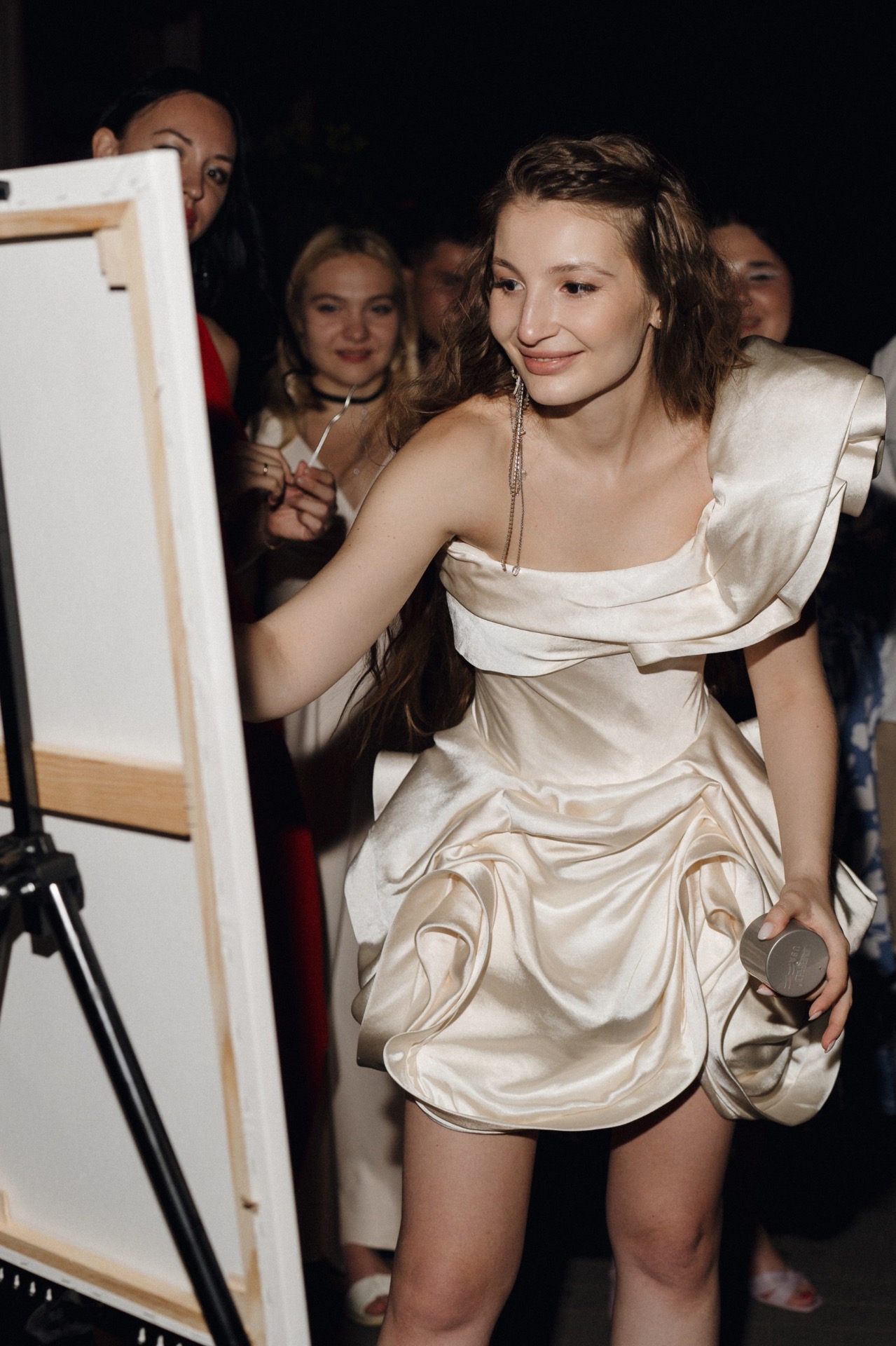 Затем мы все вместе нарисовали картину баллончиками с краской и фломастерами. Каждый гость оставил частичку себя на холсте, который украшает стены нашей квартиры и каждый день напоминает нам о том самом дне.
