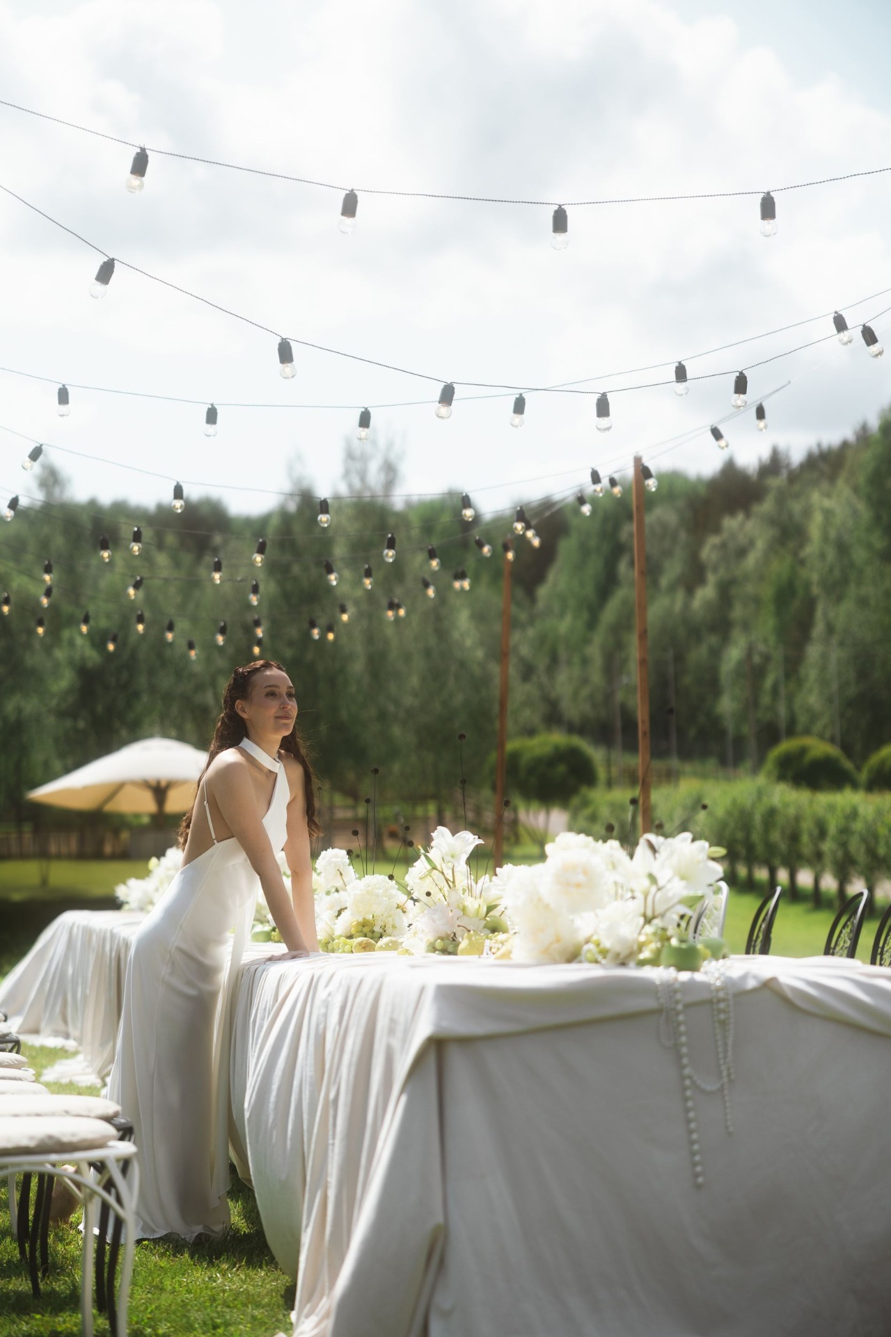 Утро пары началось в мягких и комфортных образах. Невеста встретила день в лаконичном шёлковом платье, купленном в свадебном магазине SUBBOTA: струящийся силуэт, тонкие линии и естественный свет — тихая роскошь.