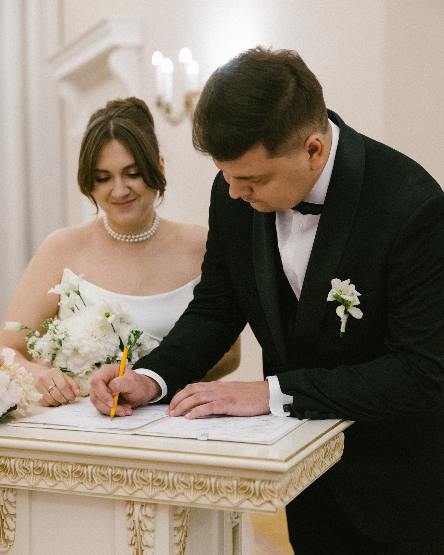 С декором и деталями было чуть сложнее. В начале мы определились, что хотели бы свадьбу с классическим декором, но с изюминкой, однако не понимали, как это реализовать. Благодаря команде У́НИО всё прошло максимально комфортно и быстро. Я отправила референсы, которые нам больше всего понравились, и мы договорились с Анастасией о встрече.