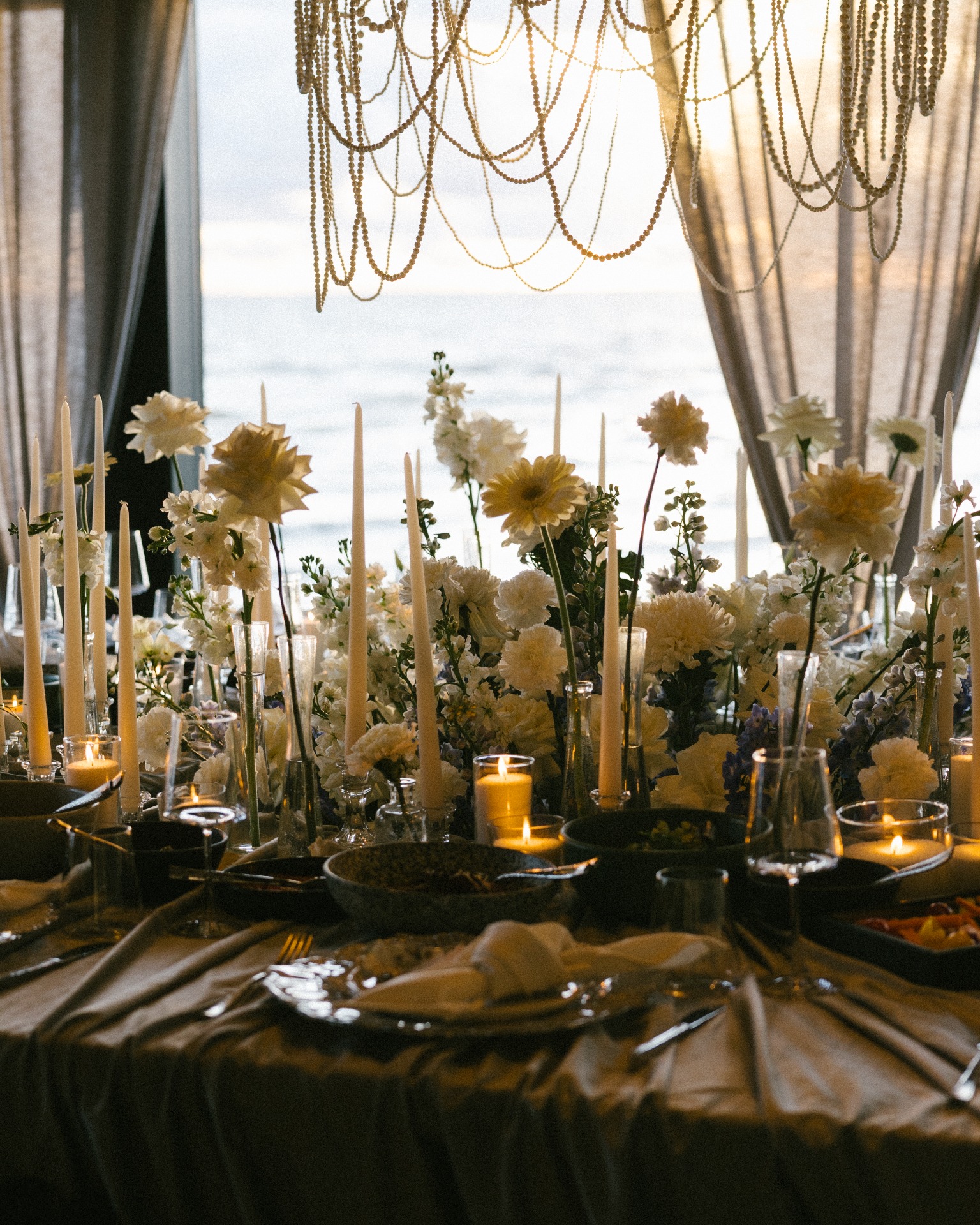 Встреча прошла для меня максимально комфортно. Анастасия подготовила несколько вариантов по флористике и декору, а главное — предложила необычные детали, которые нам очень понравились. Например, имена на ракушках и жемчуг, свисающий с потолка.