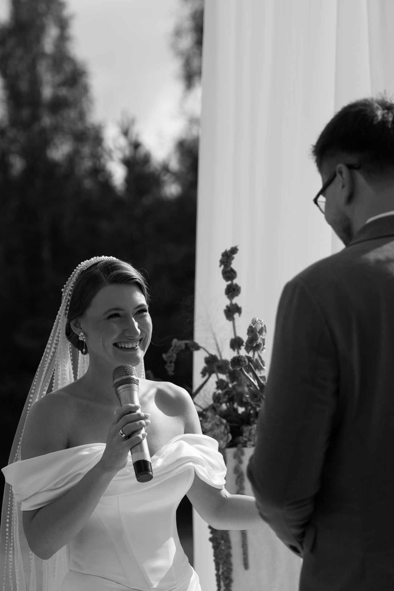 Вся свадьба, от росписи в ЗАГСе до выездной регистрации, была очень трогательной. Мы с Лёшей сказали самые важные для нас слова в клятвах на выездной церемонии и станцевали наш первый танец, за который очень волновались.