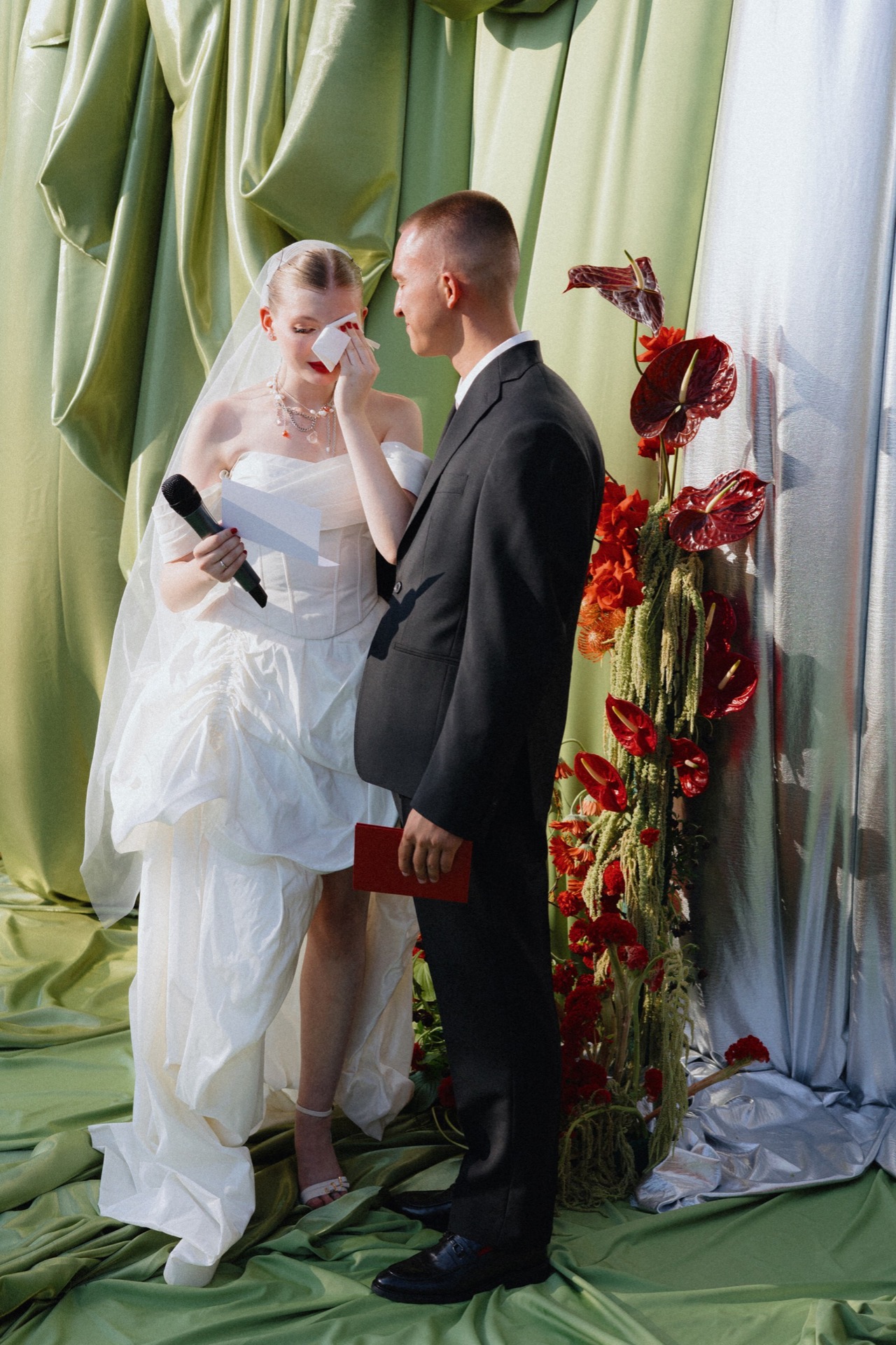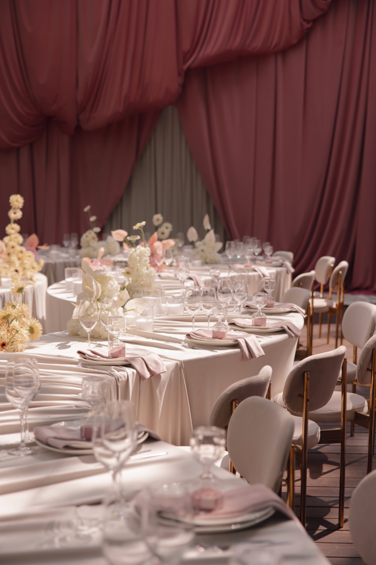 Идеальные цветы для этого оттенка — пионы, розы и тюльпаны. Свадьба в таком цвете будет нежной, яркой и романтичной.