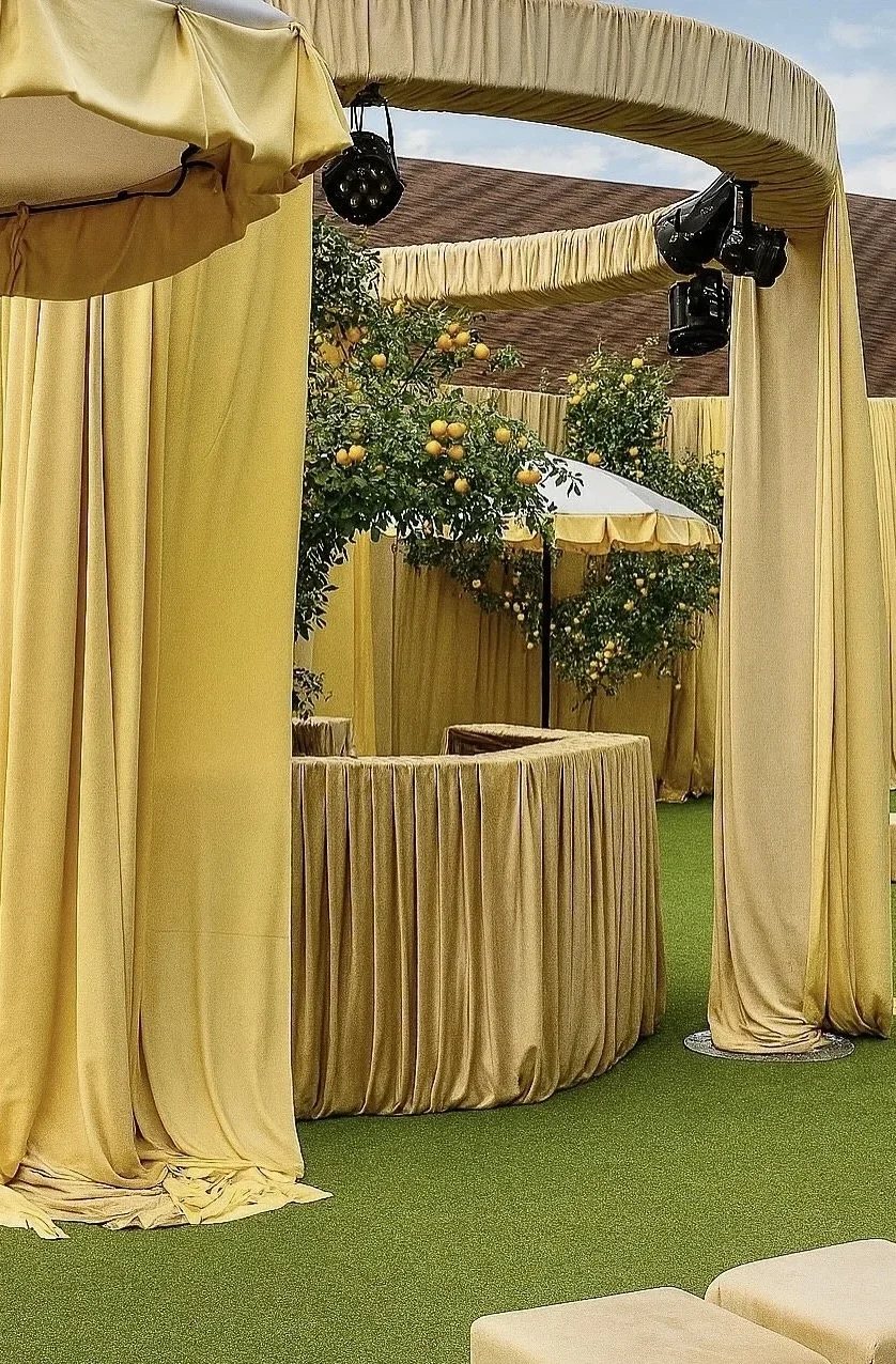 Он прекрасно подойдёт для букета невесты в сочетании с белыми или кремовыми цветами, такими, как лилии или орхидеи. В декоре Acacia эффектно смотрится в деталях: декоративных подушках, скатертях или салфетках. Этот цвет добавит яркости и лёгкости оформлению, а мягкие жёлтые огоньки гирлянд или свечей в том же тоне создадут тёплую и уютную атмосферу.