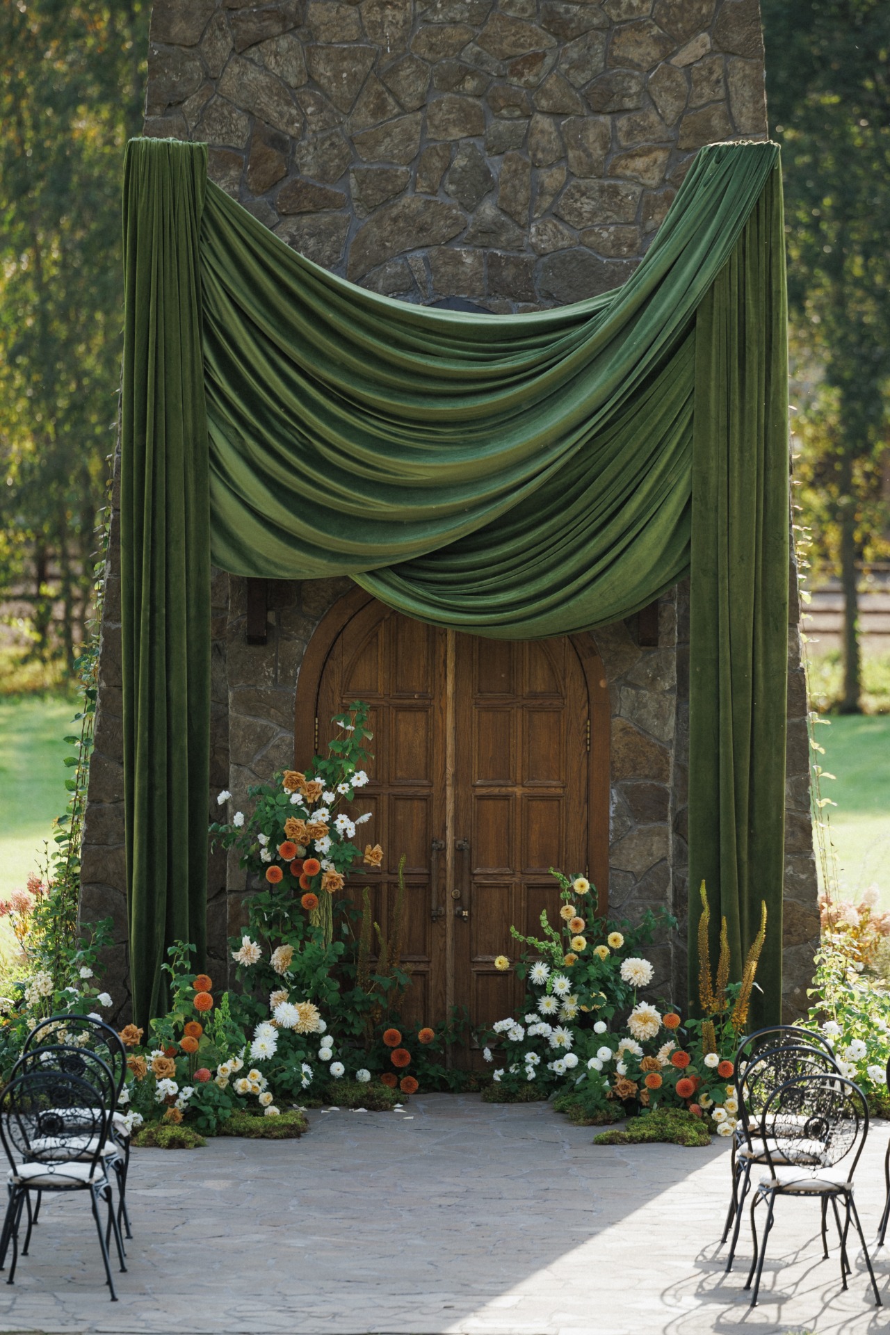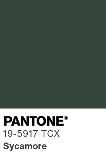 Sycamore — глубокий лесной зелёный, идеальный для свадеб на открытом воздухе. Если твоя свадьба летом и в лесу, то именно этот оттенок поможет тебе сэкономить на бюджете декора. Не переделывай площадку под себя, а используй Sycamore для того, чтобы подчеркнуть красоту природы.