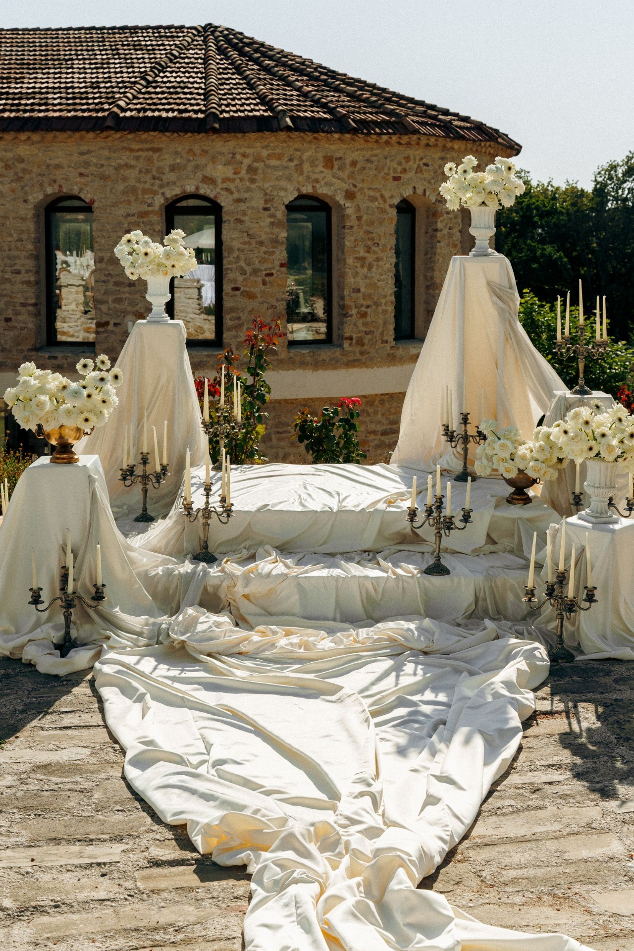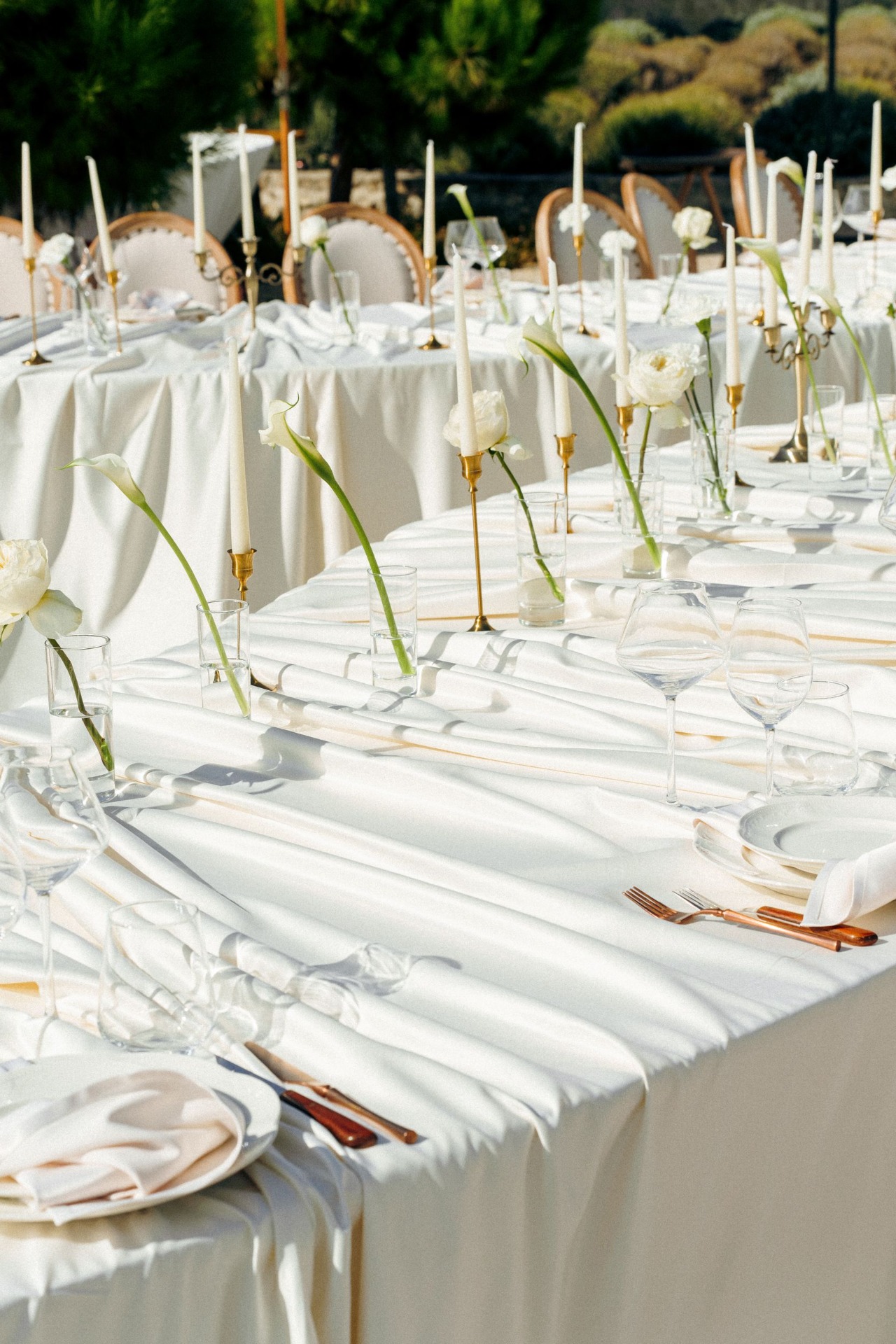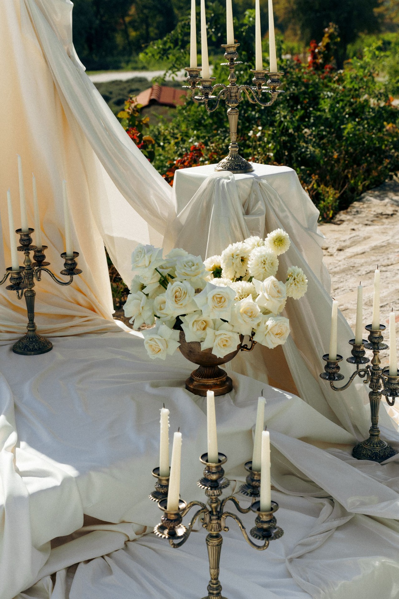 Концепцией свадьбы стал камерный праздник в итальянском стиле на открытой площадке «Монофлористика». В декоре площадки преобладали молочные оттенки, винтажные подсвечники, моноцветы, полиграфия из детских фото и стол в форме восьмёрки, который изготавливался под заказ.