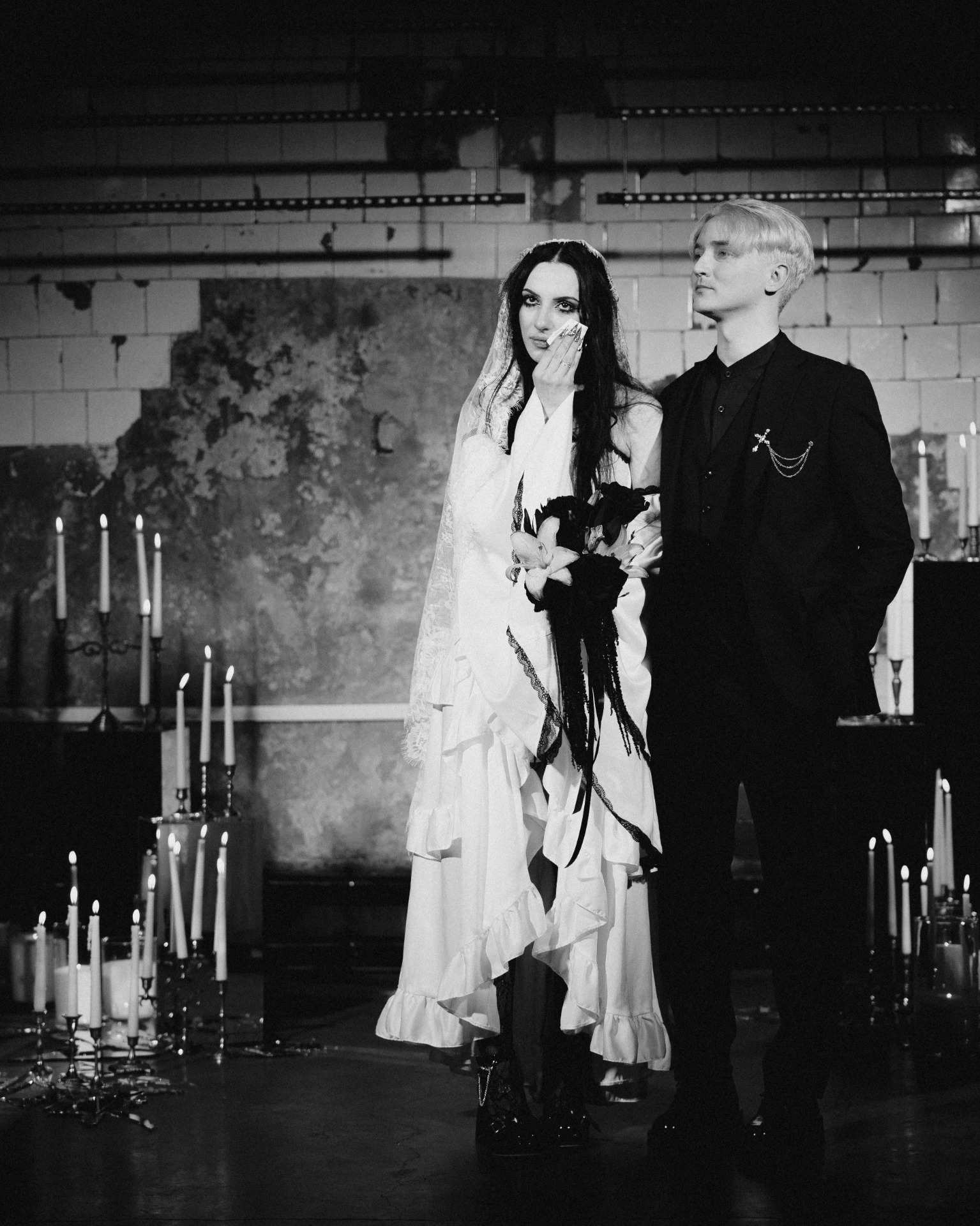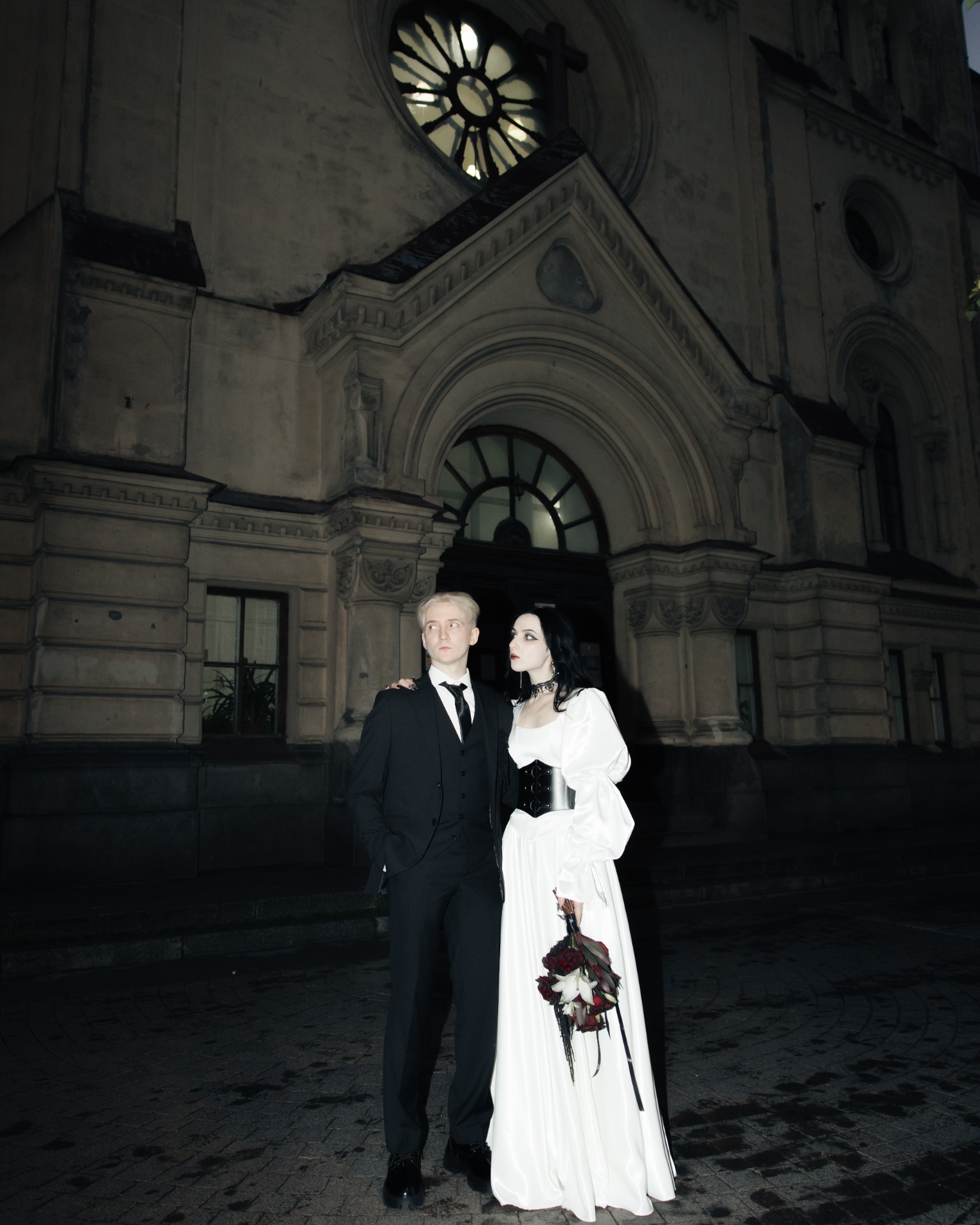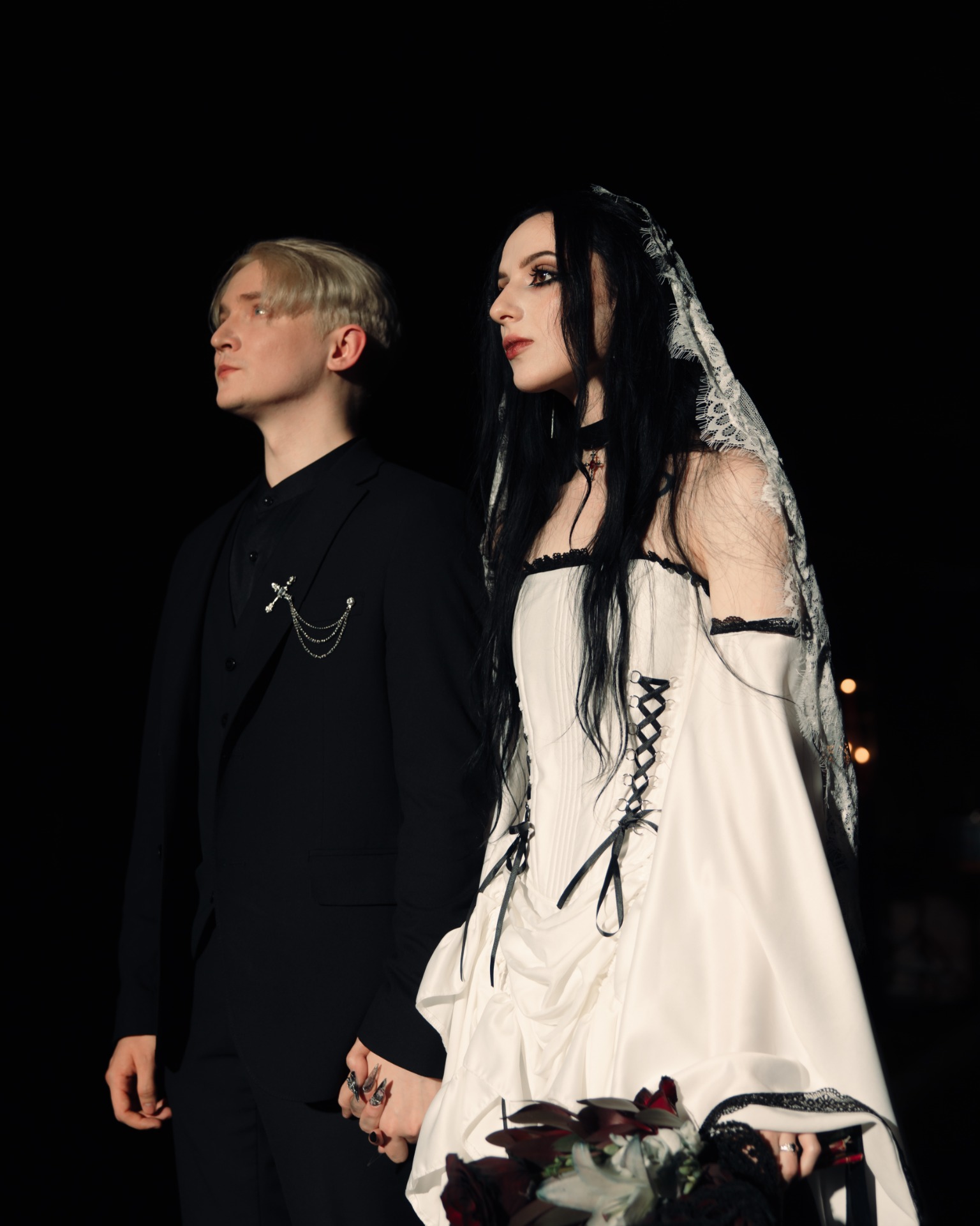 Готовиться мы начали в декабре 2024 года. До самой свадьбы оставалось ещё девять месяцев, но мы решили не откладывать. У нас уже было представление о концепции, и оно было не самым стандартным: свадьба должна сопровождаться готической эстетикой, с большим количеством тёмных тонов, винтажа, красных акцентов и свечей.