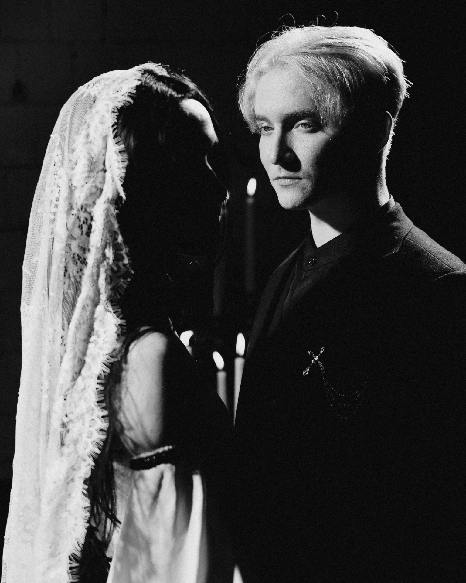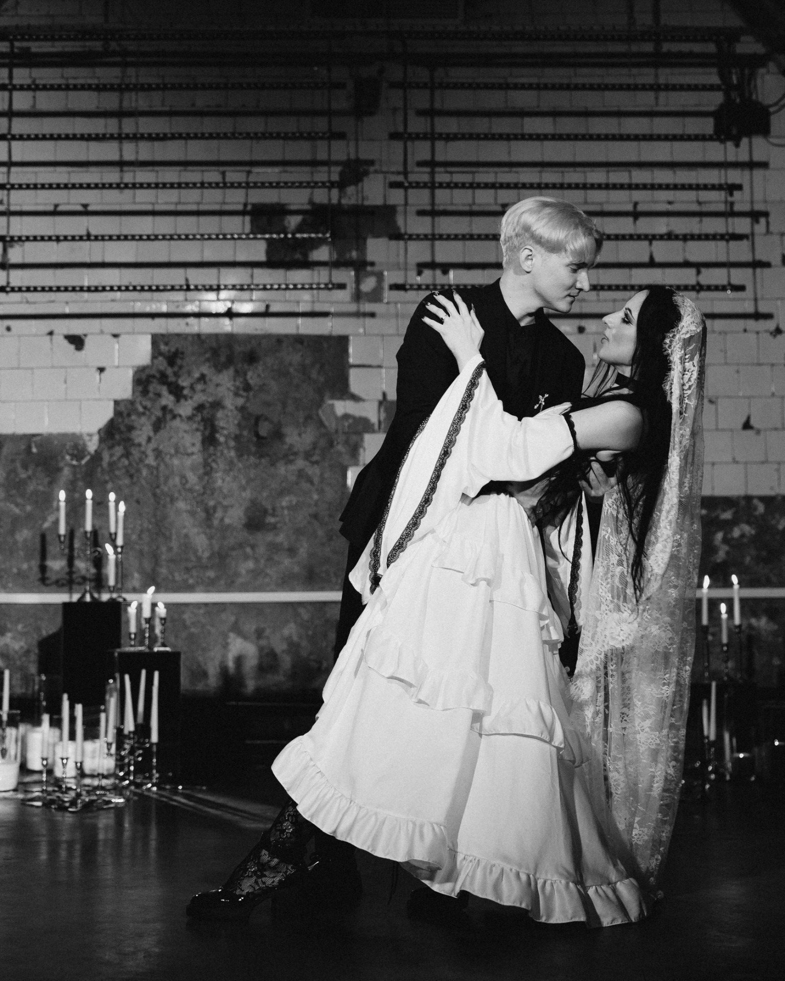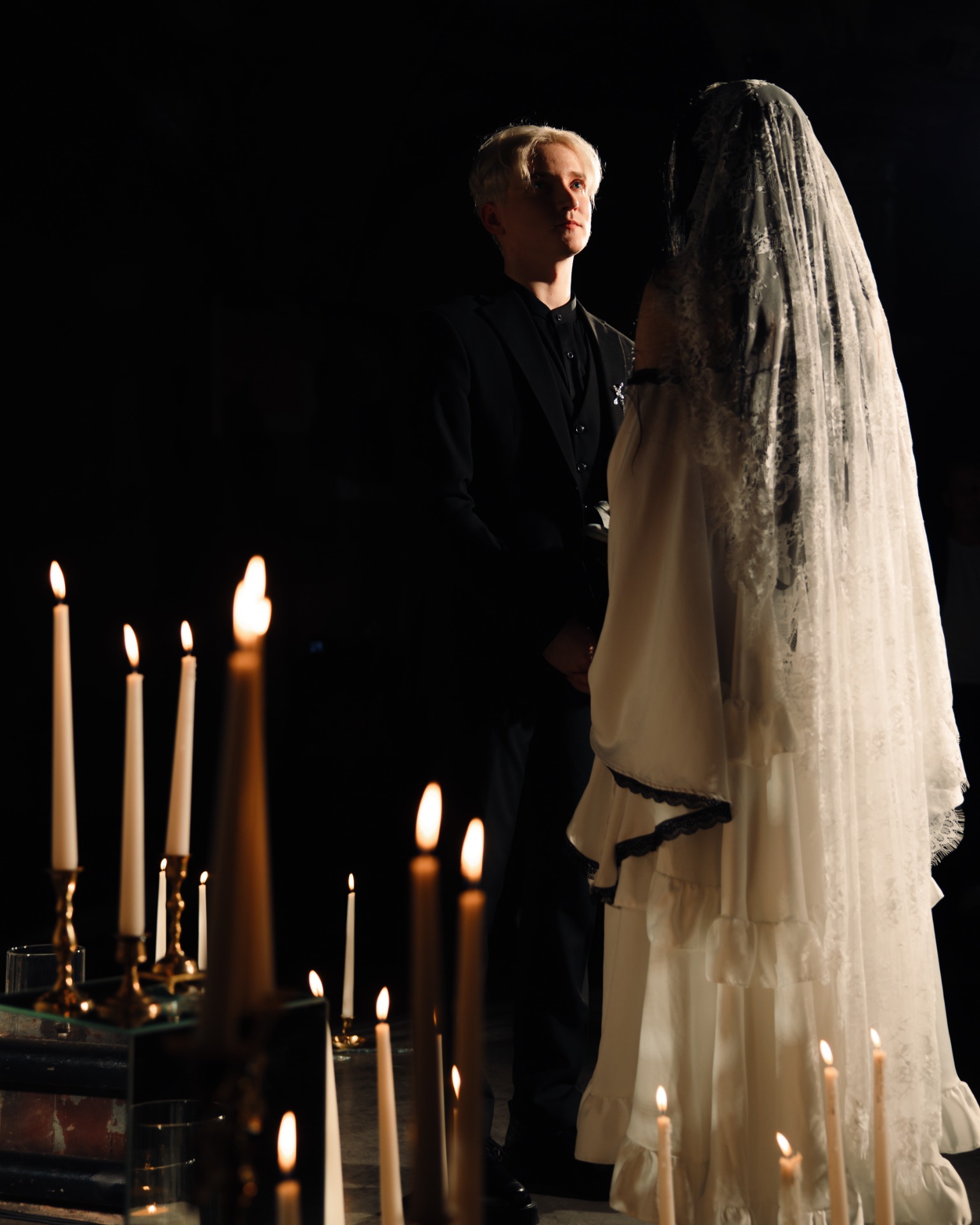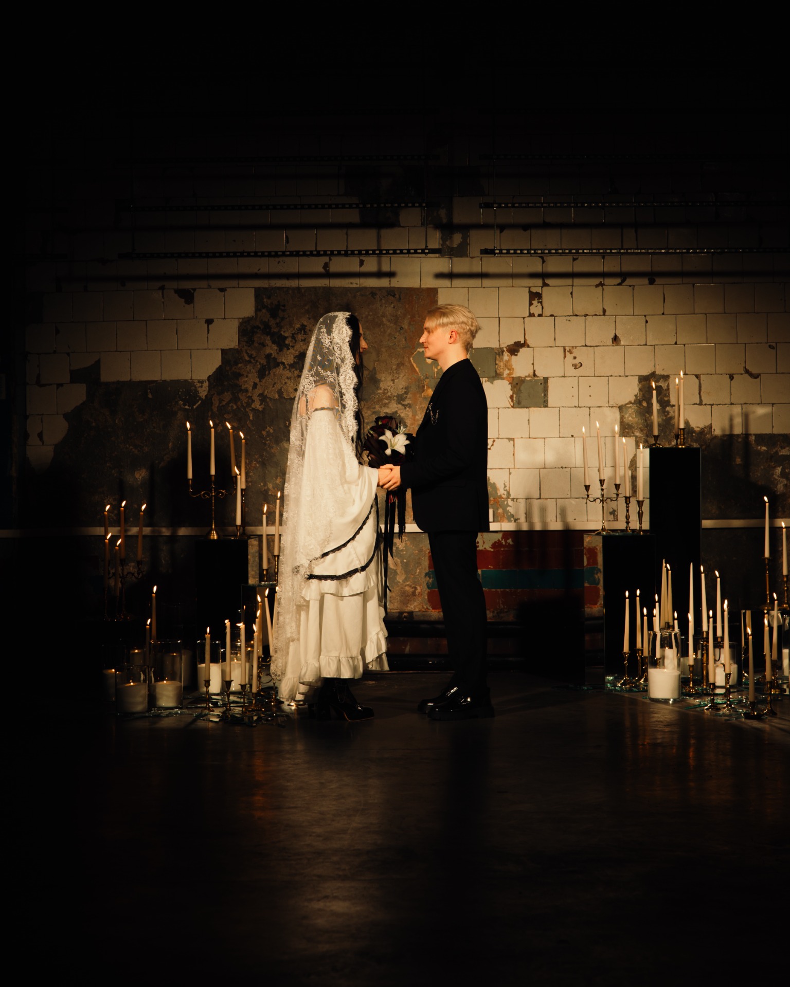 Готовиться мы начали в декабре 2024 года. До самой свадьбы оставалось ещё девять месяцев, но мы решили не откладывать. У нас уже было представление о концепции, и оно было не самым стандартным: свадьба должна сопровождаться готической эстетикой, с большим количеством тёмных тонов, винтажа, красных акцентов и свечей.