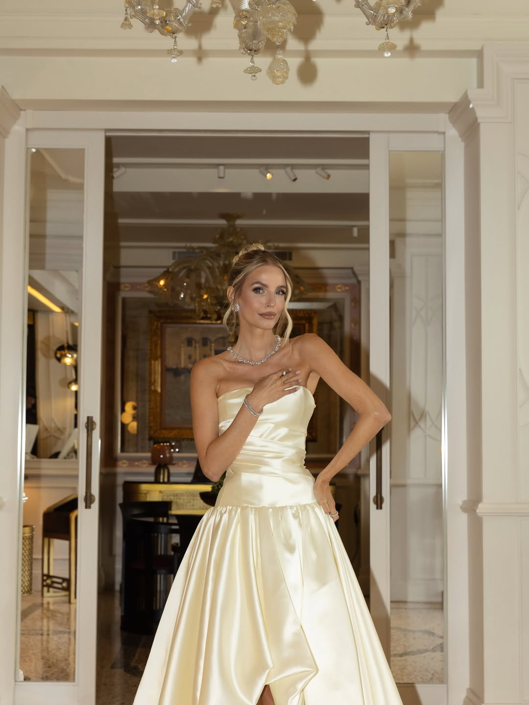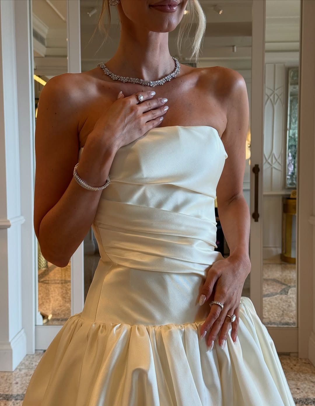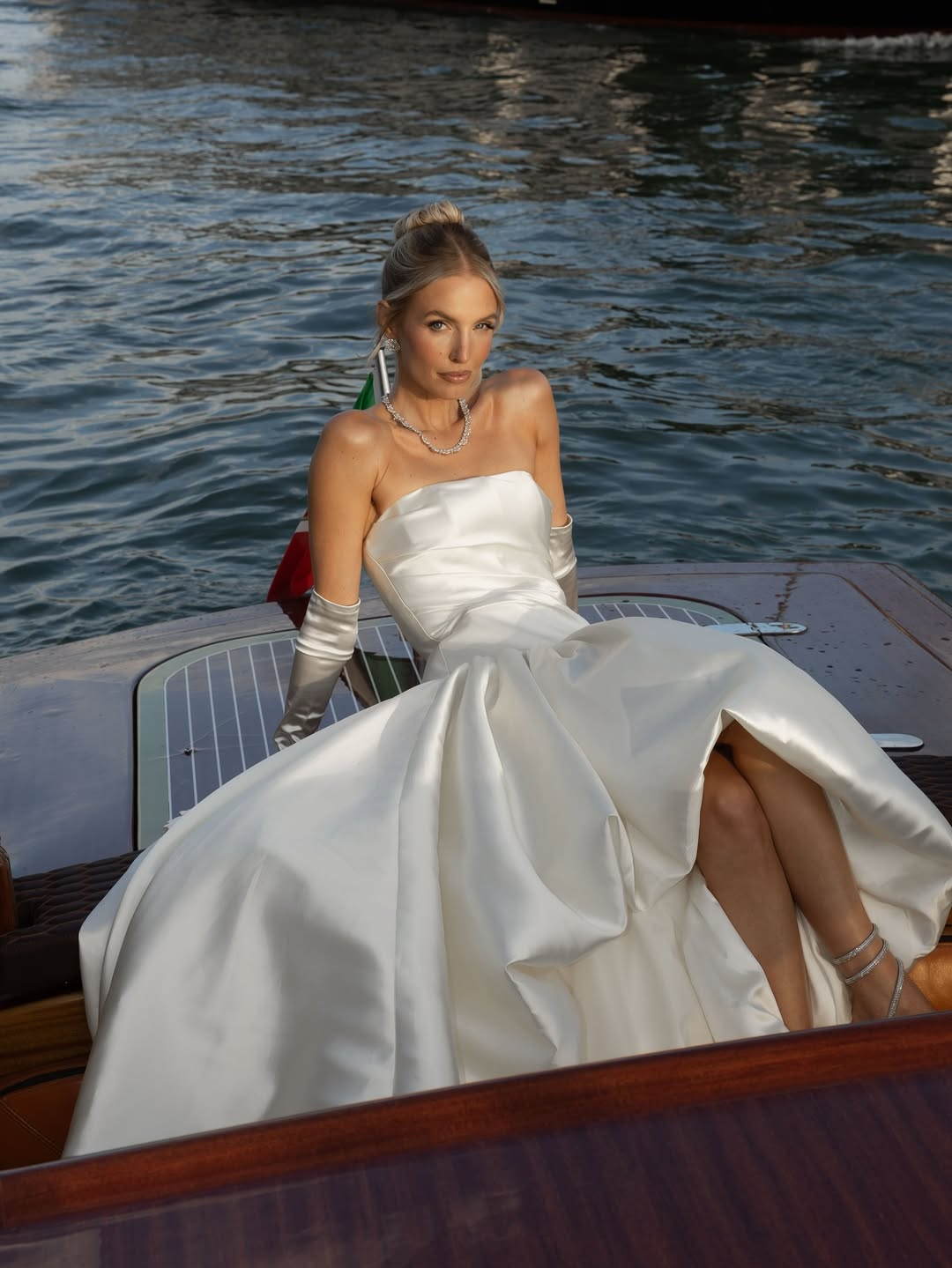 Девушка продолжает наслаждаться своей bridal era и примеряет образ невесты на всех красных дорожках. По случаю Венецианского кинофестиваля, инфлюенсер выбрала образ от Wona Concept, дополнив его украшениями ювелирного дома Chopard.