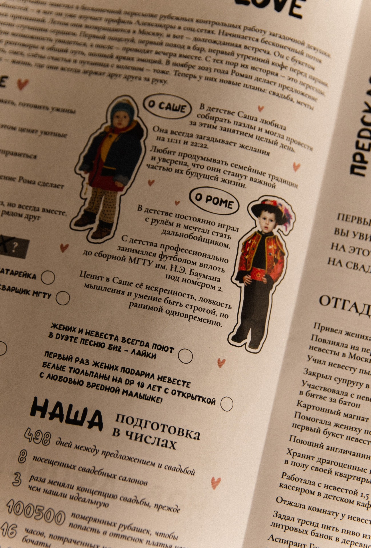 - Персонализация. Любой интерактив работает лучше, когда в нём есть реальные детали про пару и гостей. Контекст усиливает эффект многократно.