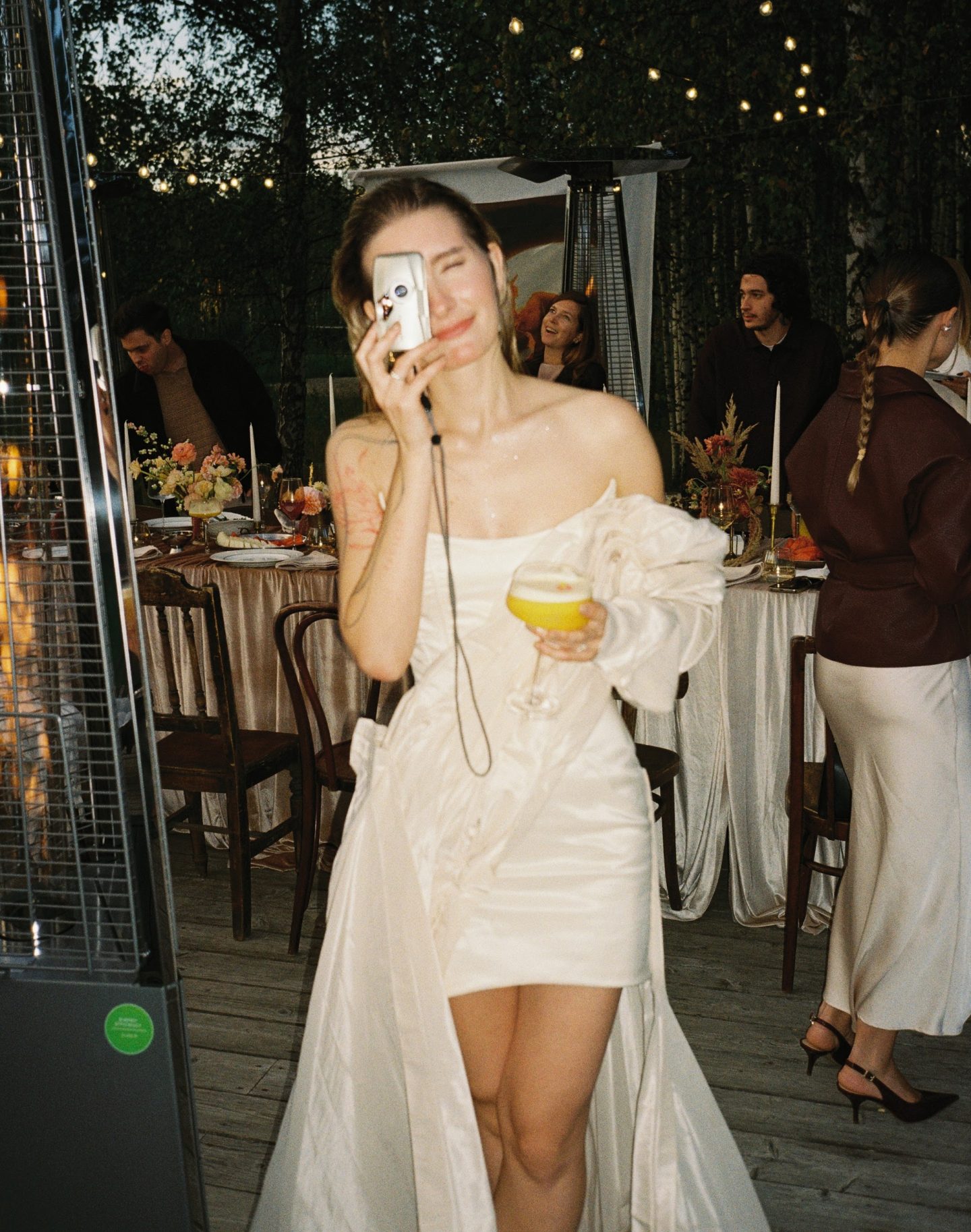 - Когда невеста — свадебный фотограф, гостям раздают плёночные камеры, а потом все вместе смотрят на день их глазами.