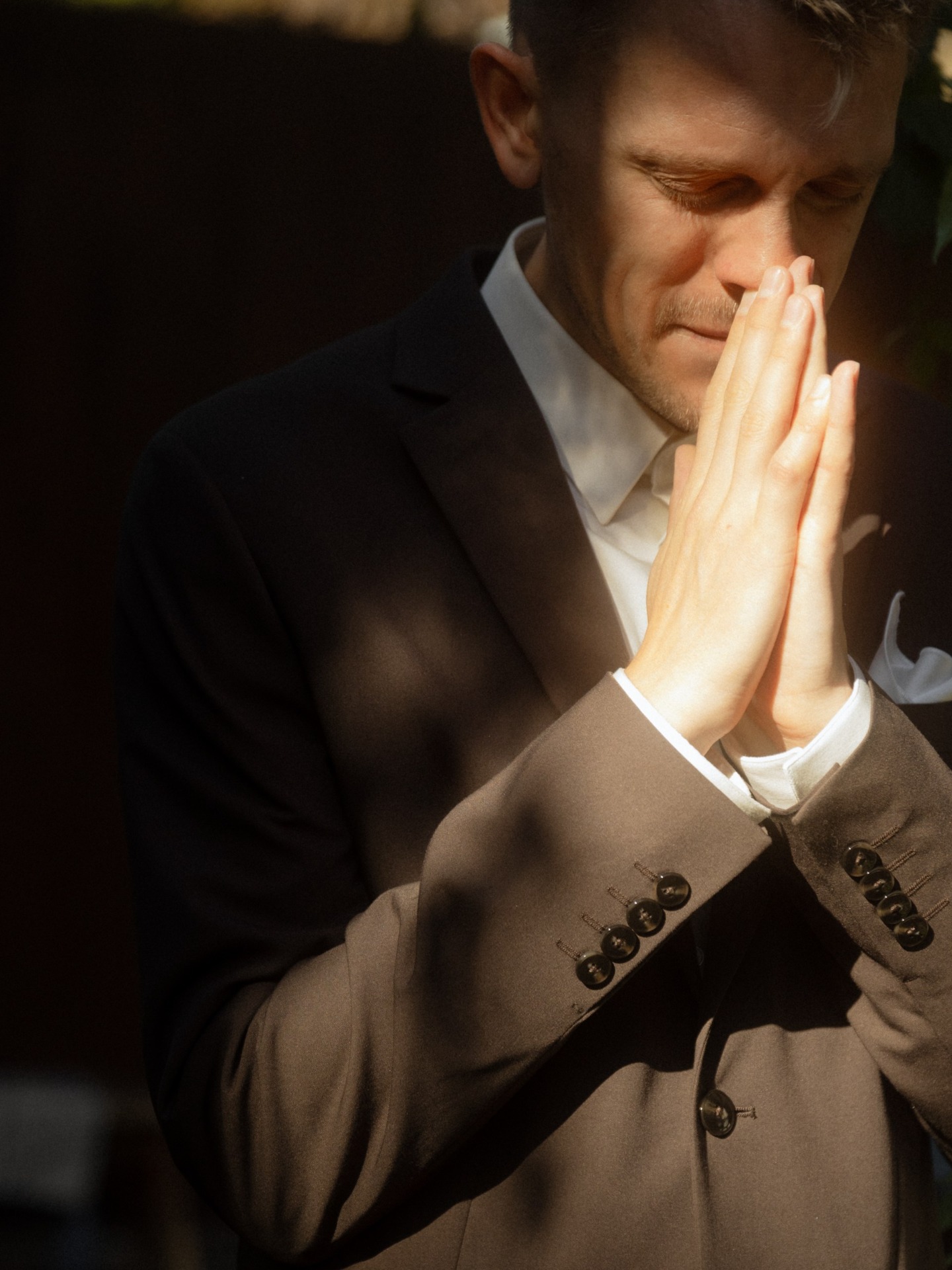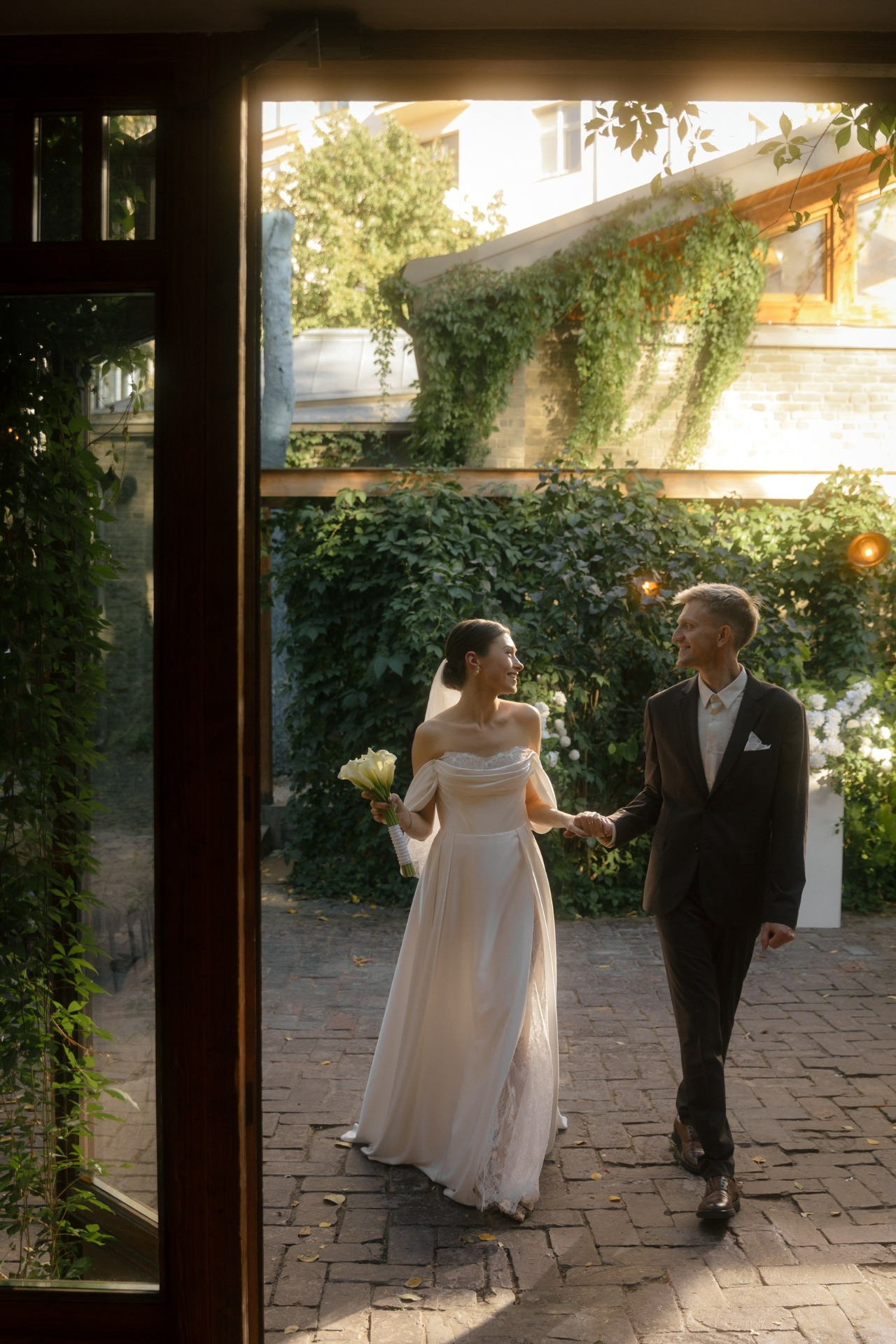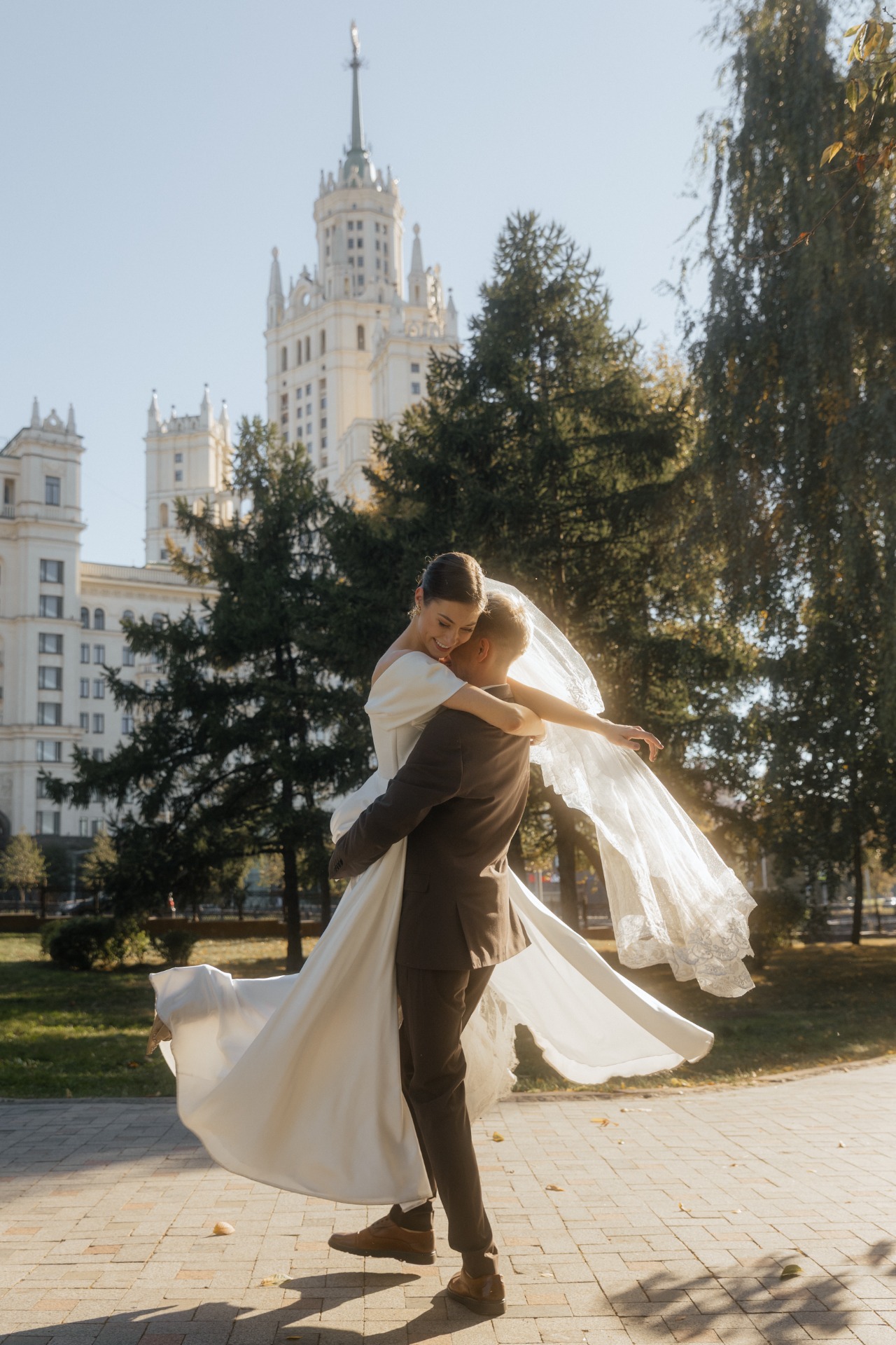 С образом Ильи было всё проще и спокойнее. Мы не заморачивались с моделями и брендами. Главным и единственным критерием был цвет костюма — чтобы он гармонично сочетался с палитрой праздника. В итоге мы нашли идеальный шоколадный оттенок, который и стал прекрасным фоном и поддержкой для моего образа.