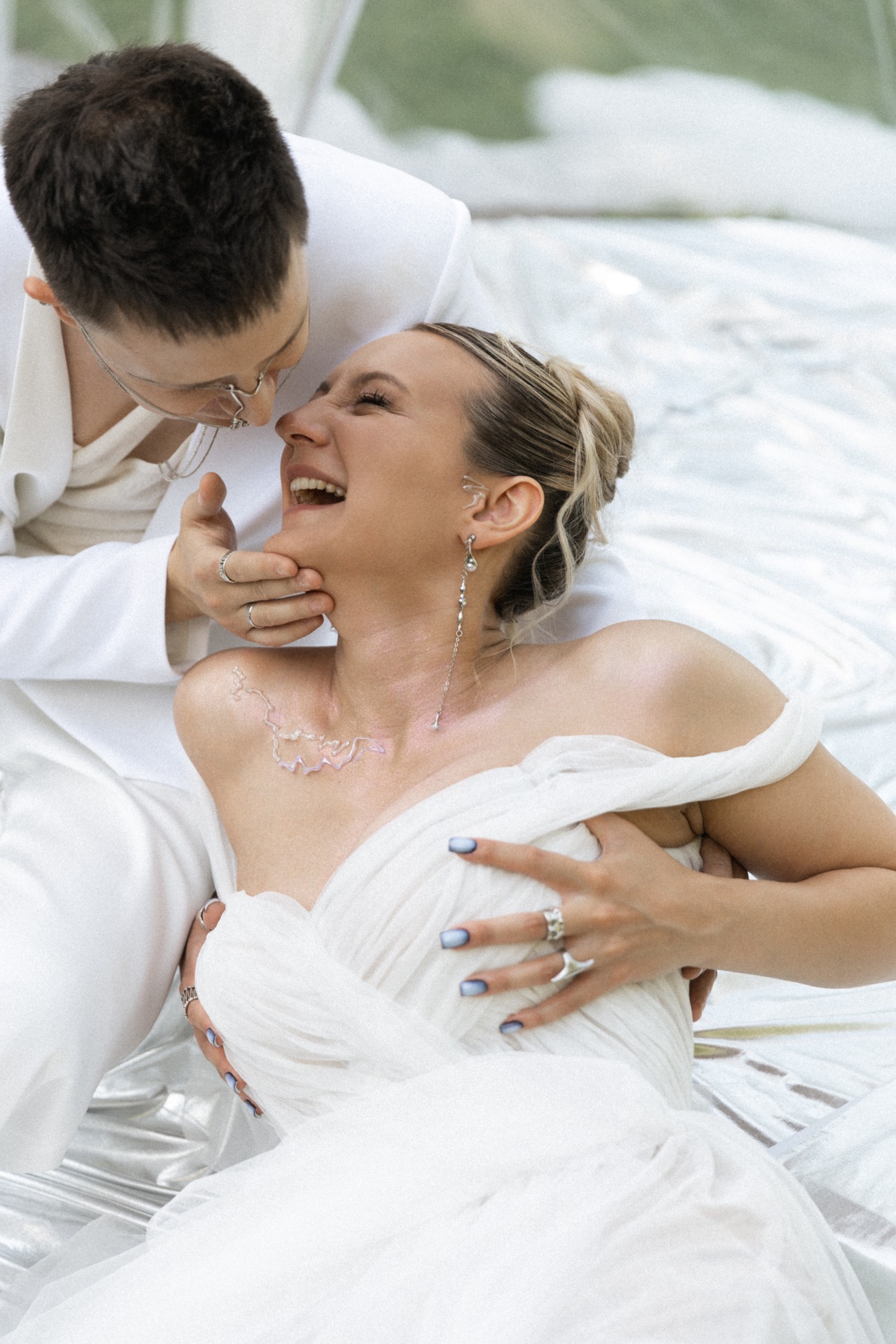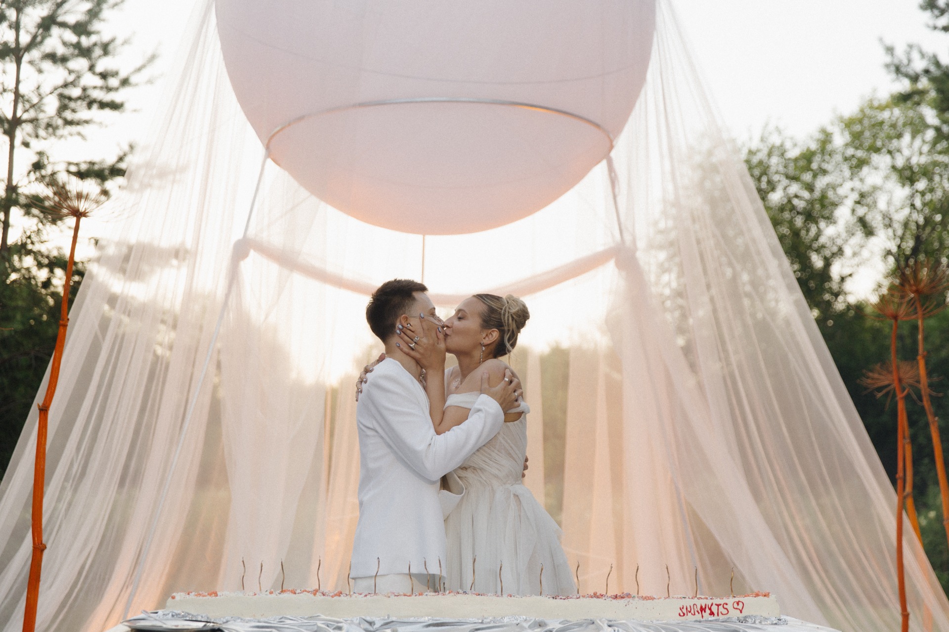 Предложение было сделано в горах Казахстана. Мы добирались до дикого озера: на машинах, лошадях и пешком. Несмотря на то, что мы считываем друг друга по взгляду, я ничего не заподозрила. Ваня позвал меня «сфотографироваться», а сам достал кольцо и спросил: «Будешь моей супругой?» Мы всегда смеялись над этим словом, поэтому я сначала просто рассмеялась.