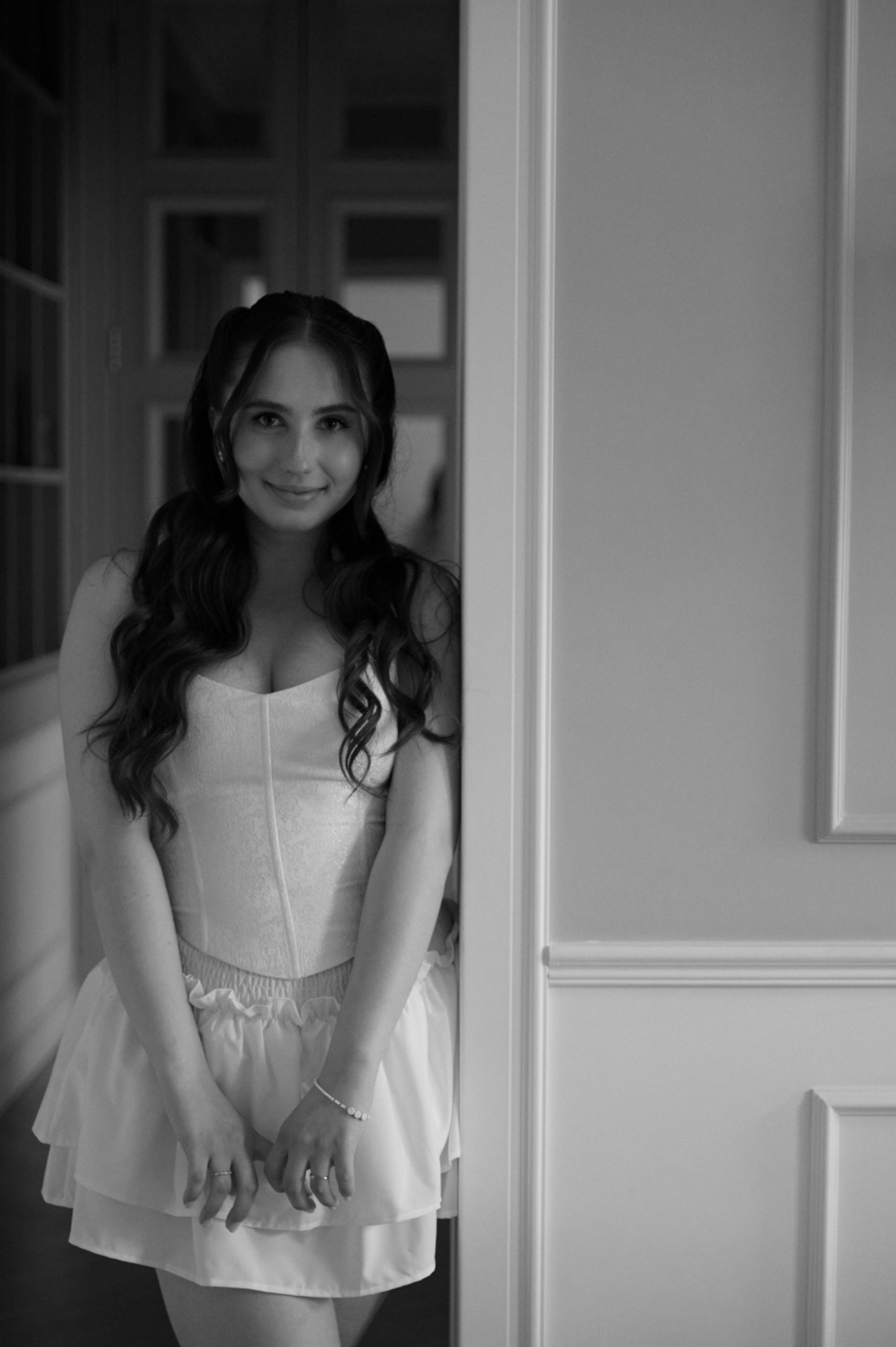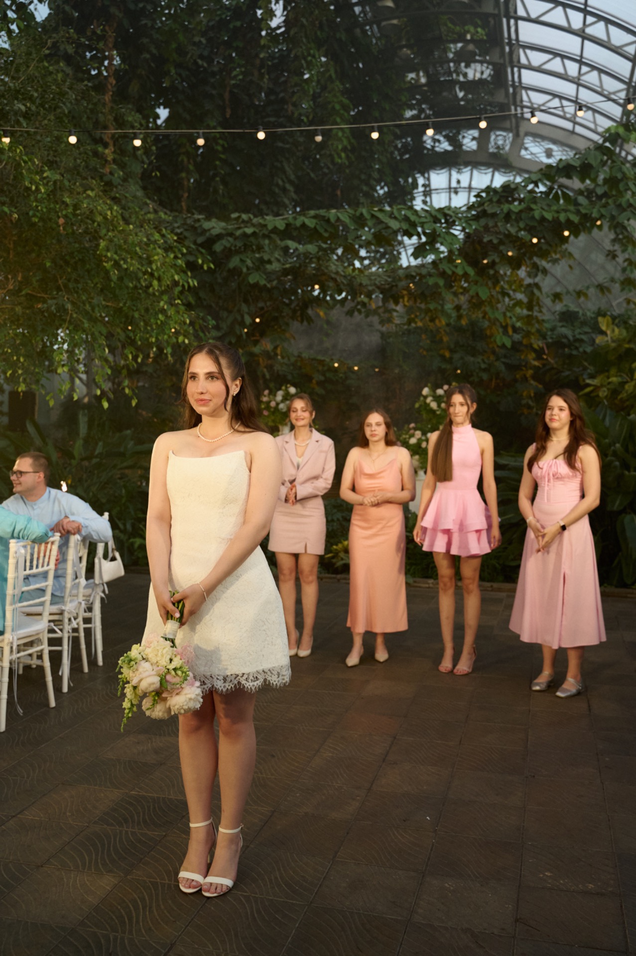 Для вечерней программы я остановилась на корсетном кружевном мини-платье в сочетании с белыми босоножками на высоком каблуке — образ, созданный для танцев, движения и лёгкости до самого конца вечера.