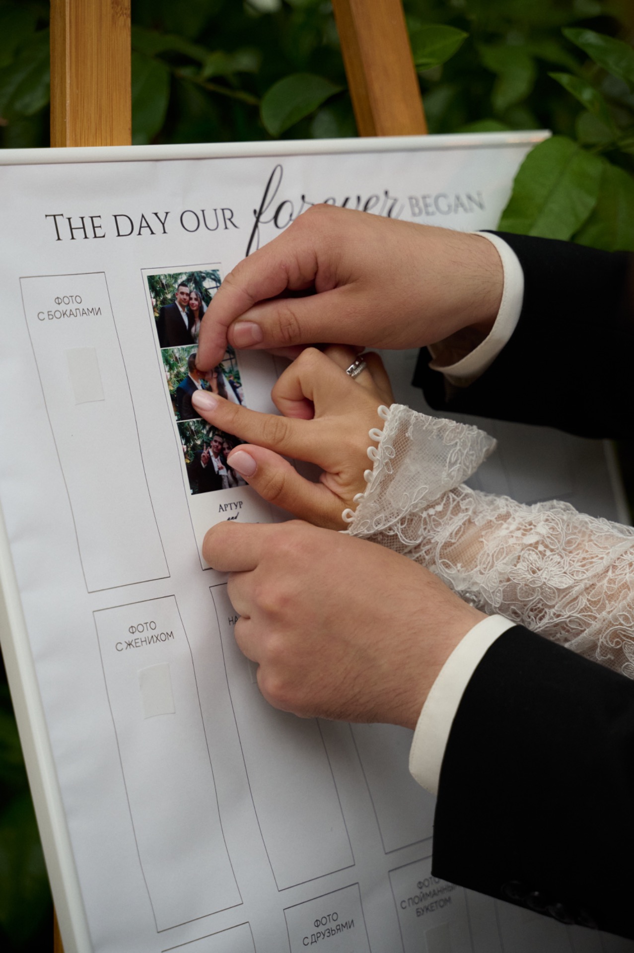 Концепцией нашего дня стала «история любви», и буквально всё в этот день было связано с нами и нашими воспоминаниями. У нас была камерная свадьба всего на 22 человека — невероятно уютная, трепетная и по-настоящему душевная.