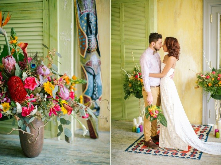 Всю историю такой любви нам удалось передать с помощью многочисленных деталей, которые были созданы специально для съёмки: начиная от платья невесты, заканчивая бабочкой жениха и потрясающим этническим тортом, узор на котором полностью копирует платье и украшения Терезы. Свечи, яркие ковры, африканские барабаны помогли нам завершить образ и расставить нужные акценты.