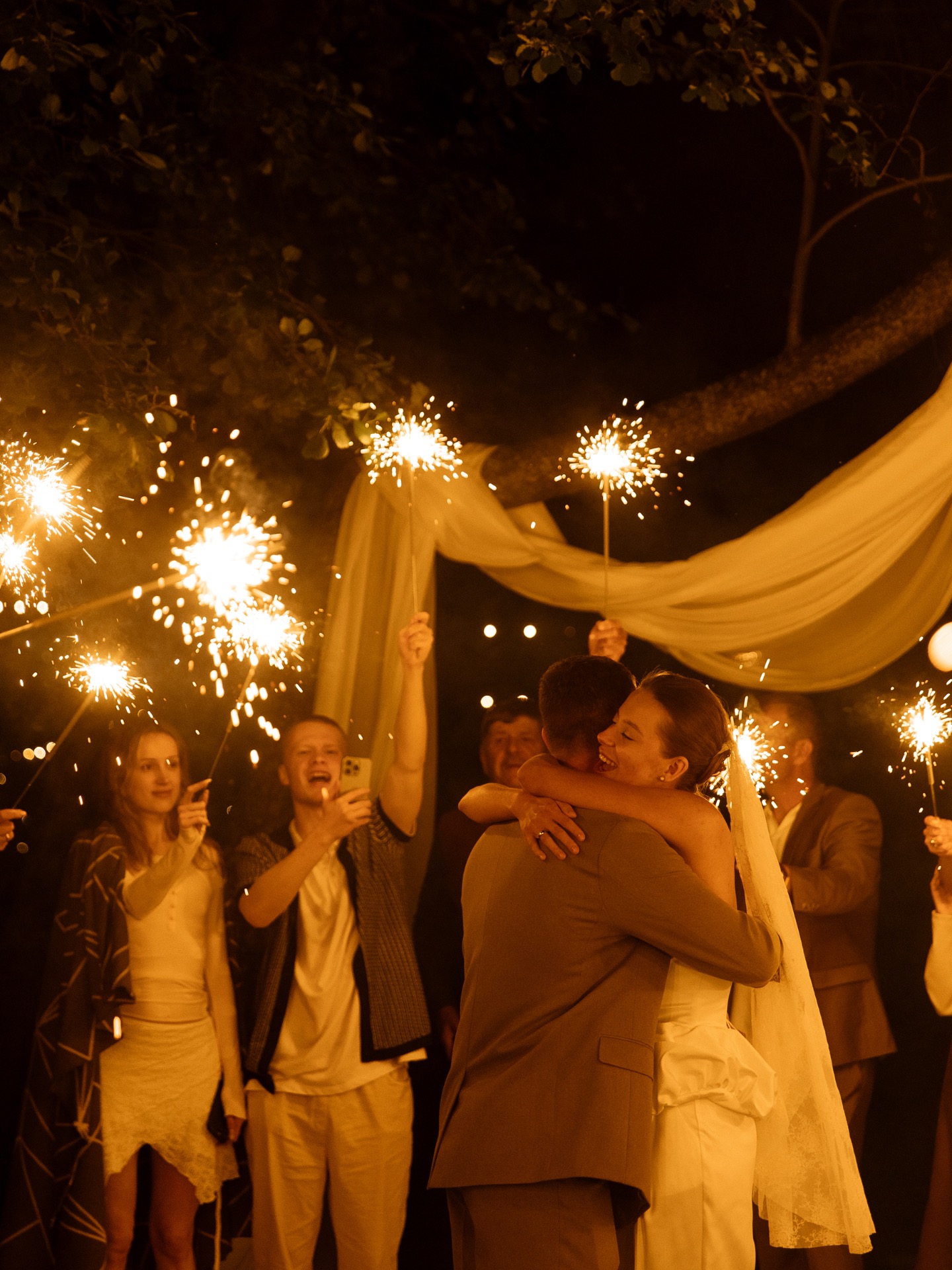 В завершение вечера мы били посуду под «Bella Ciao», а гости жгли бенгальские огни.