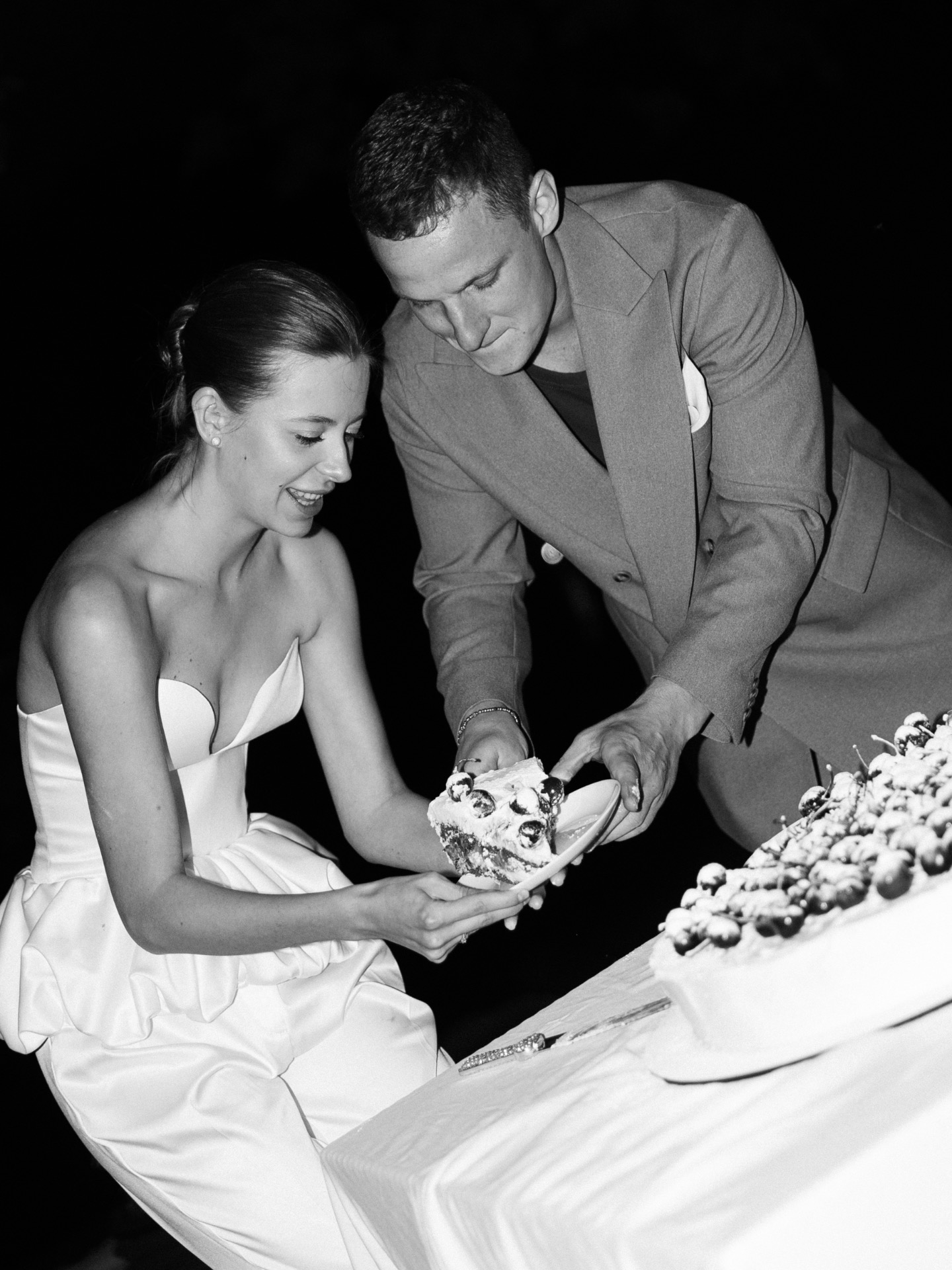 Во время банкета гости махали салфетками, как в итальянских фильмах. Мы танцевали на закате. Украшали торт черешней сами, а мамы посыпали его сахарной пудрой. Были каравай и зажжение семейного очага, ведь мы ценим традиции.