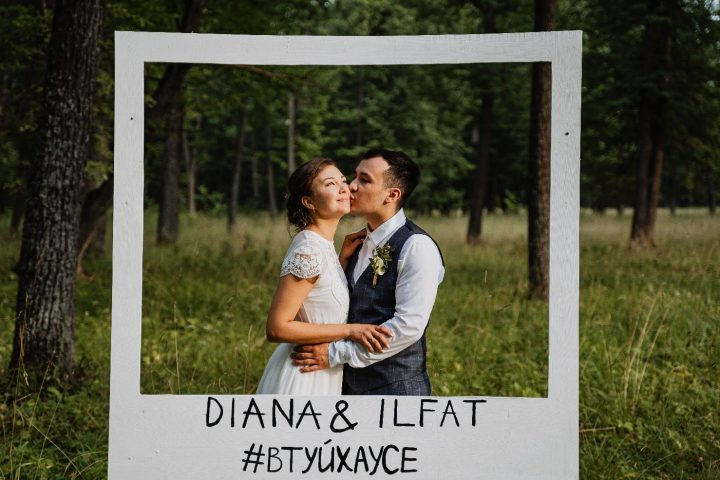 Мы долго выбирали место, посмотрели множество площадок, но все было не то. Где-то за месяц до свадьбы поняли, что надо построить свой шатер на полянке за родительским домом. После мы ни капли не пожалели! У нас получилось реализовать все, о чем мечтали.