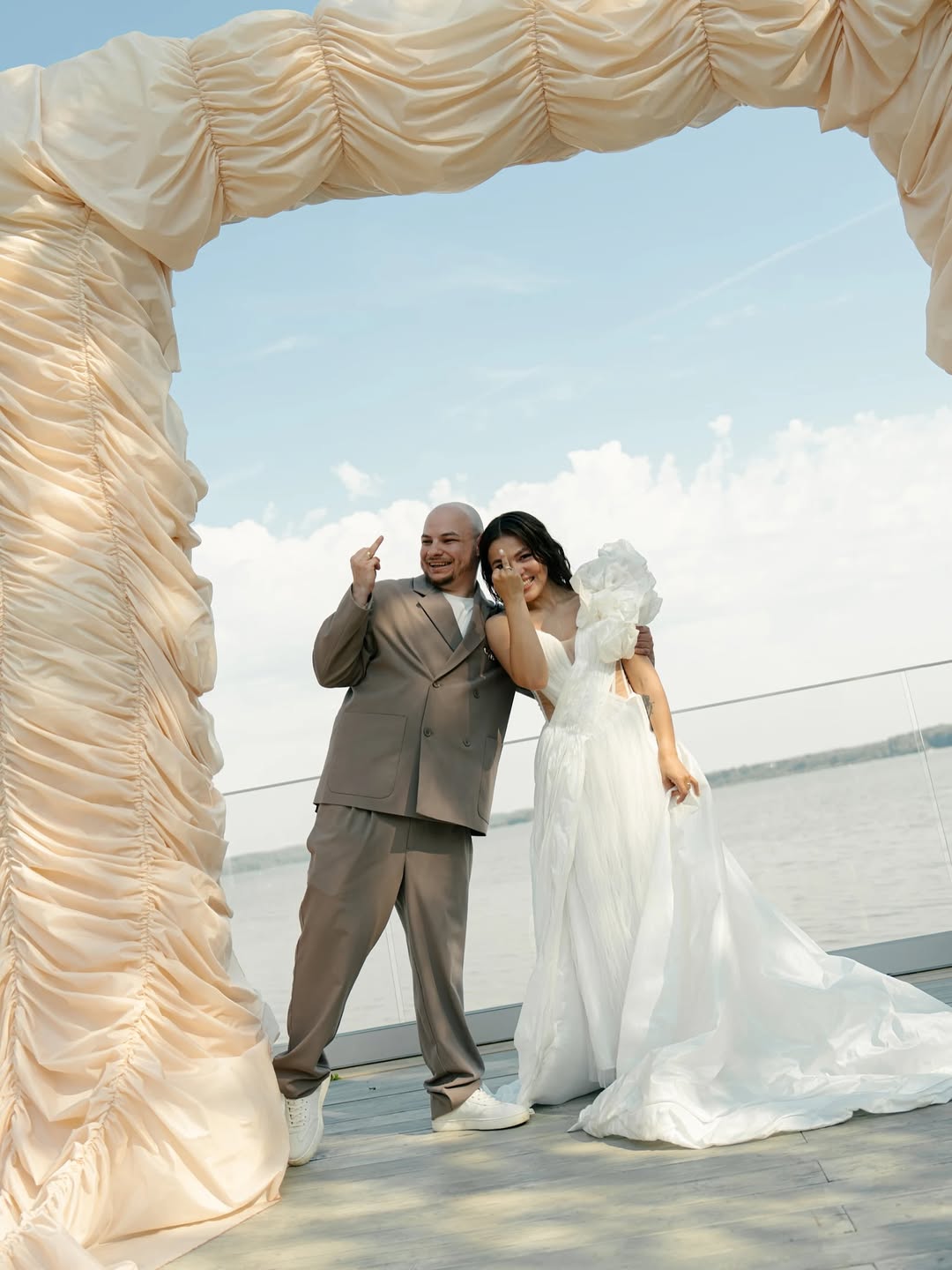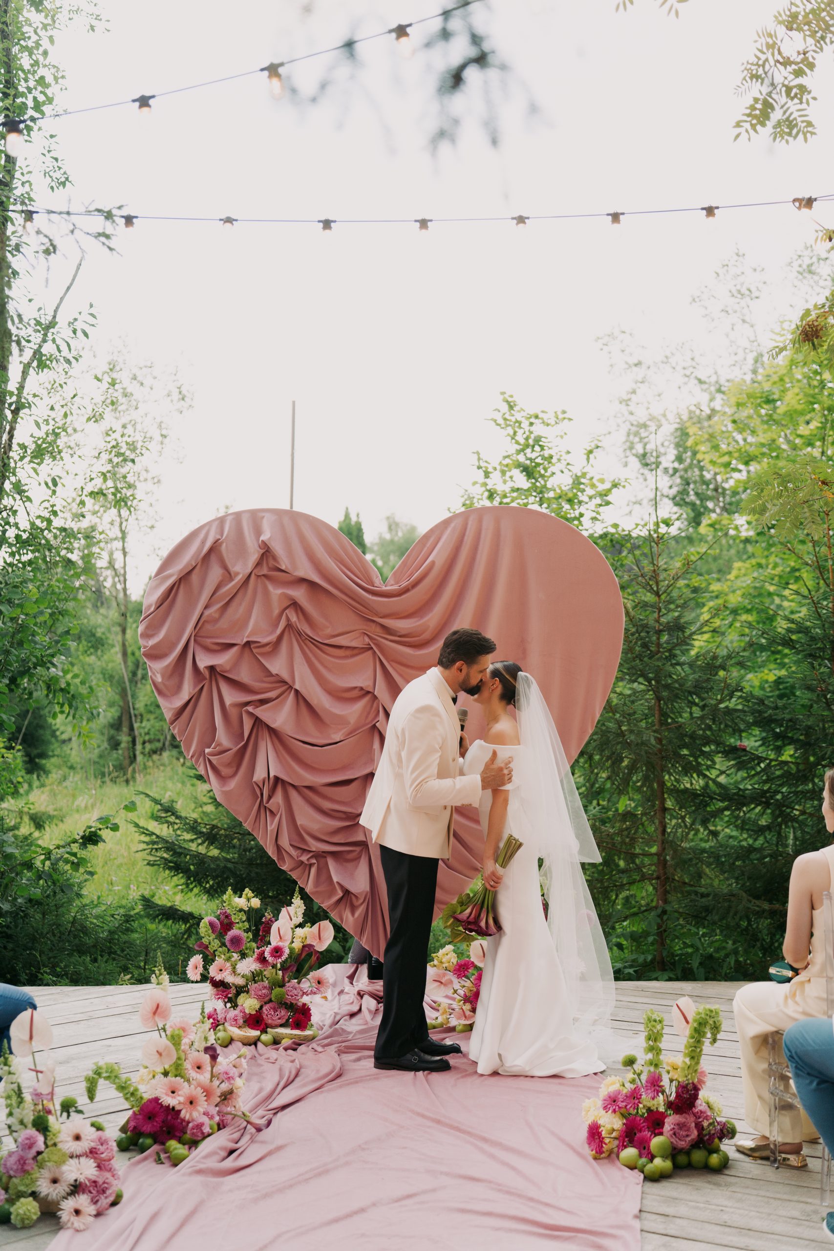 Вместо классической арки пары всё чаще выбирают нестандартные и выразительные решения. Это могут быть архитектурные инсталляции или арт-объекты, вдохновлённые личной историей, символами и эмоциями. В центре внимания характер пары и гармония с пространством.