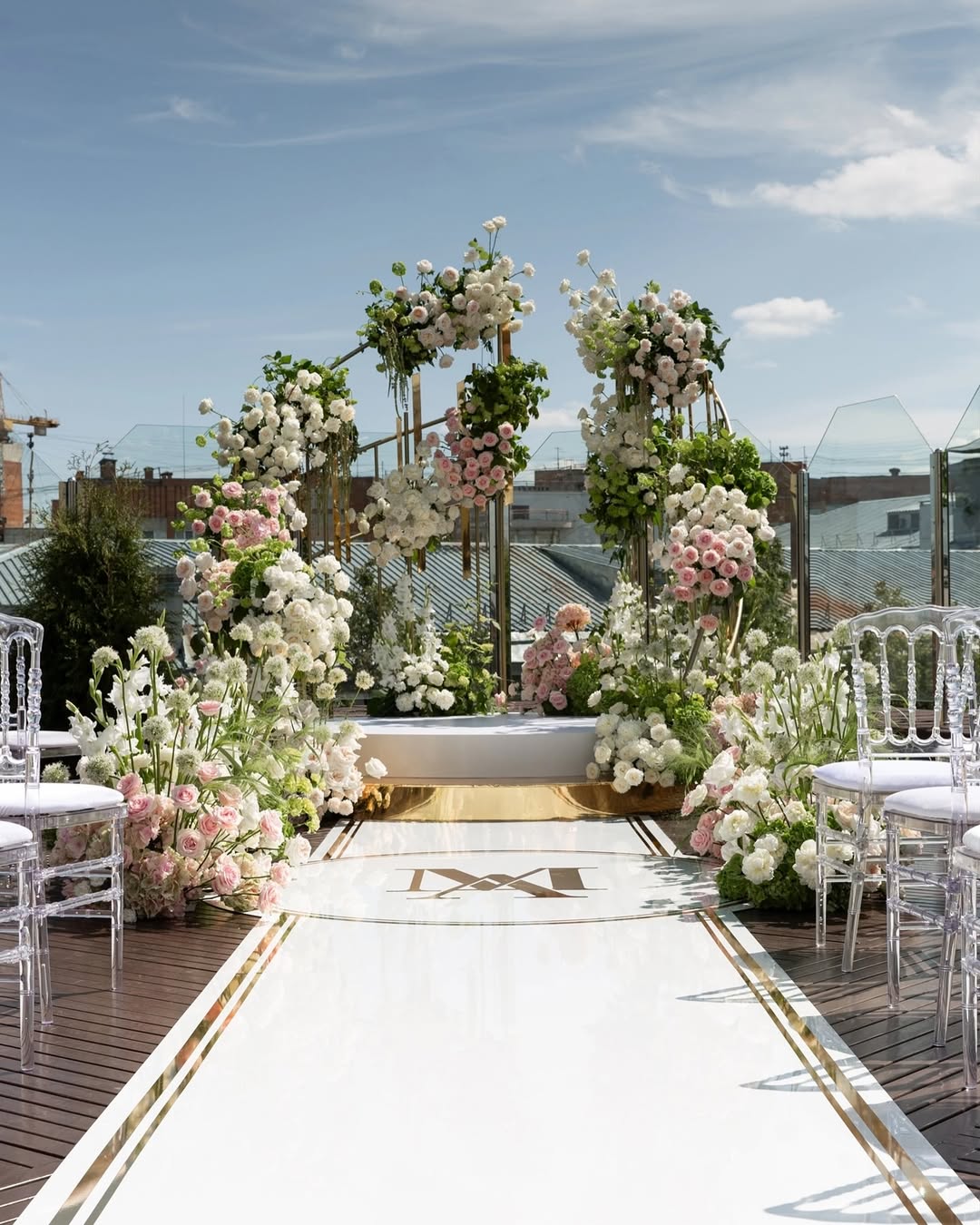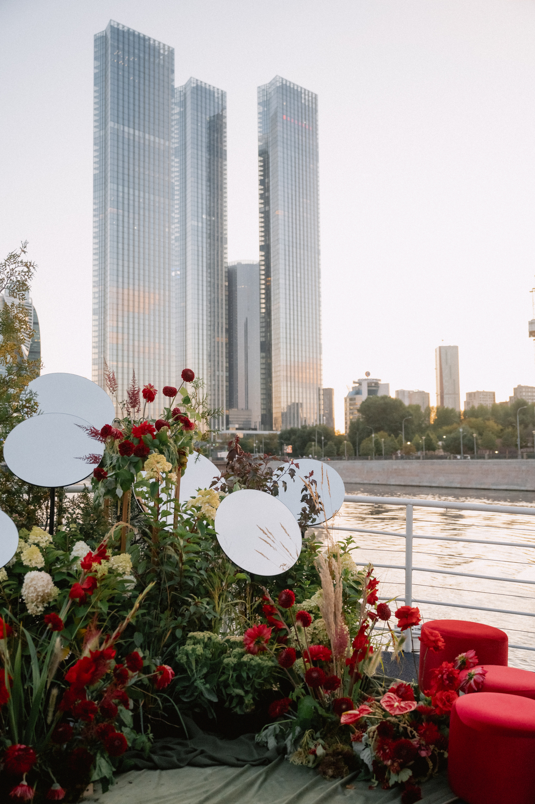 В городской среде нам близка тенденция к лаконичности: даже строительные леса, дополненные минималистичным декором, могут стать выразительной аркой для церемонии.