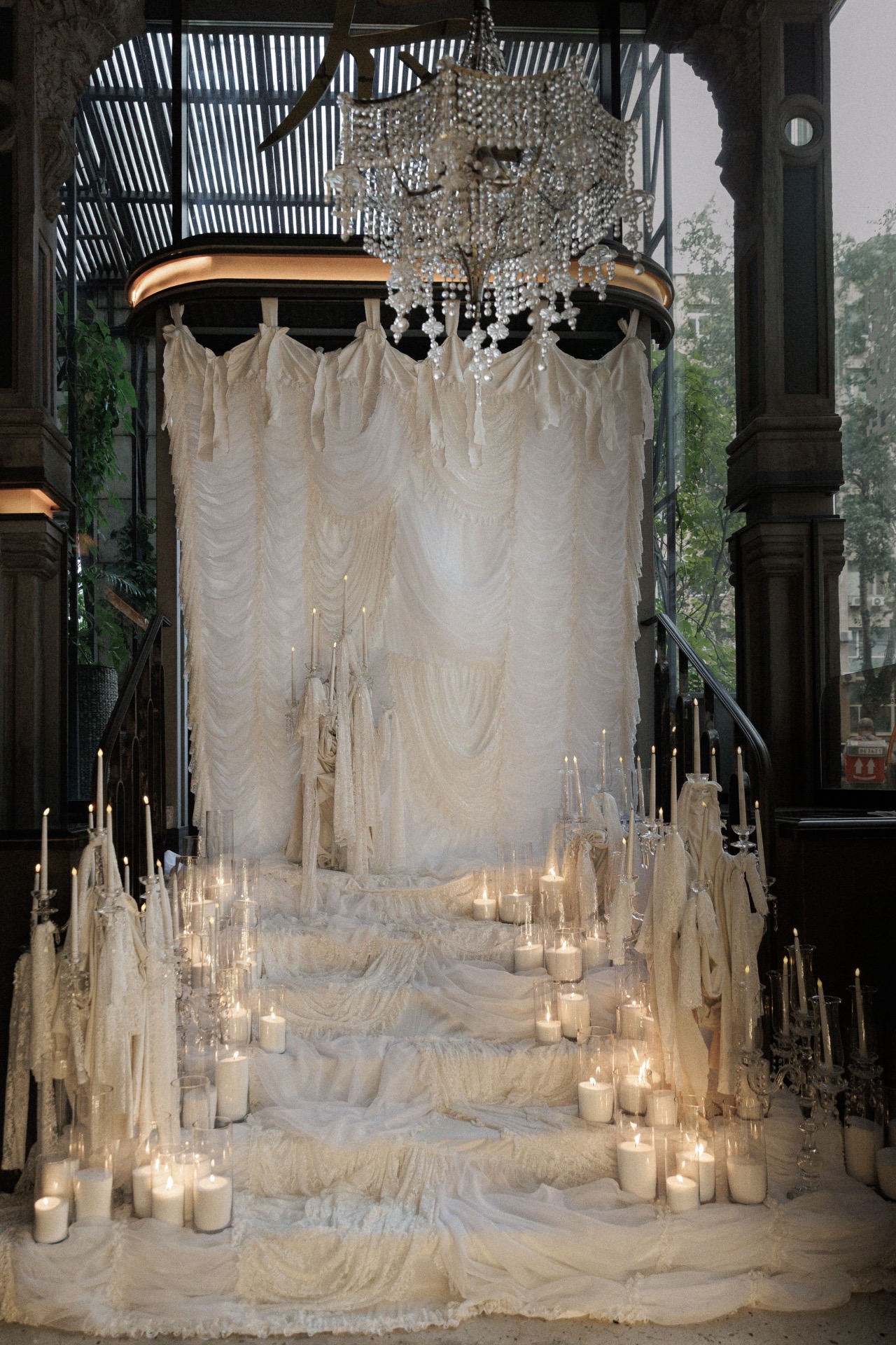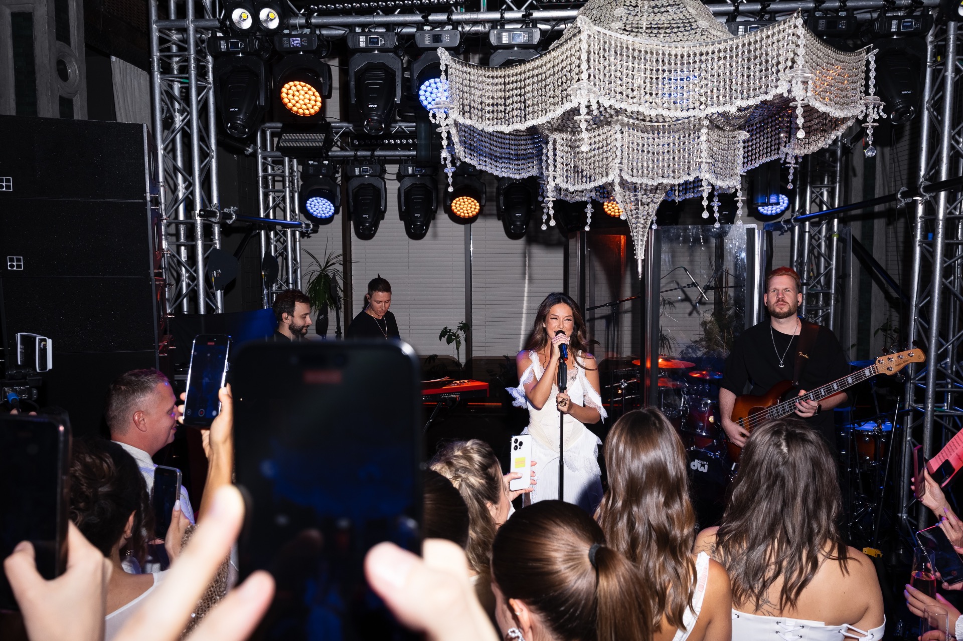 Праздник прошёл в стиле гламурного барокко, где каждая деталь подчёркивала утончённость и энергию Нюши. Белоснежные драпировки, канделябры и хрустальные люстры создавали атмосферу роскоши. А видеопроекции с роликами певицы и множество свечей придавали пространству камерную атмосферу.