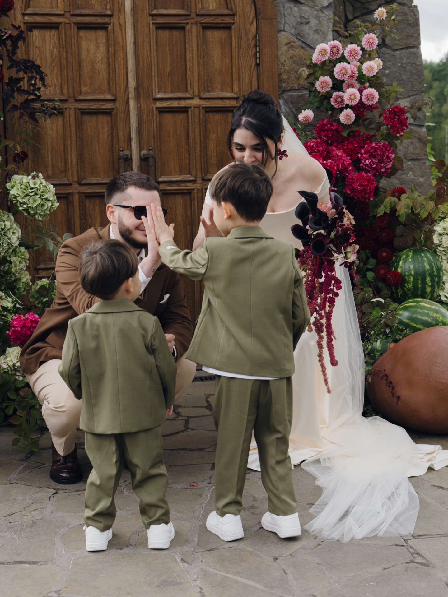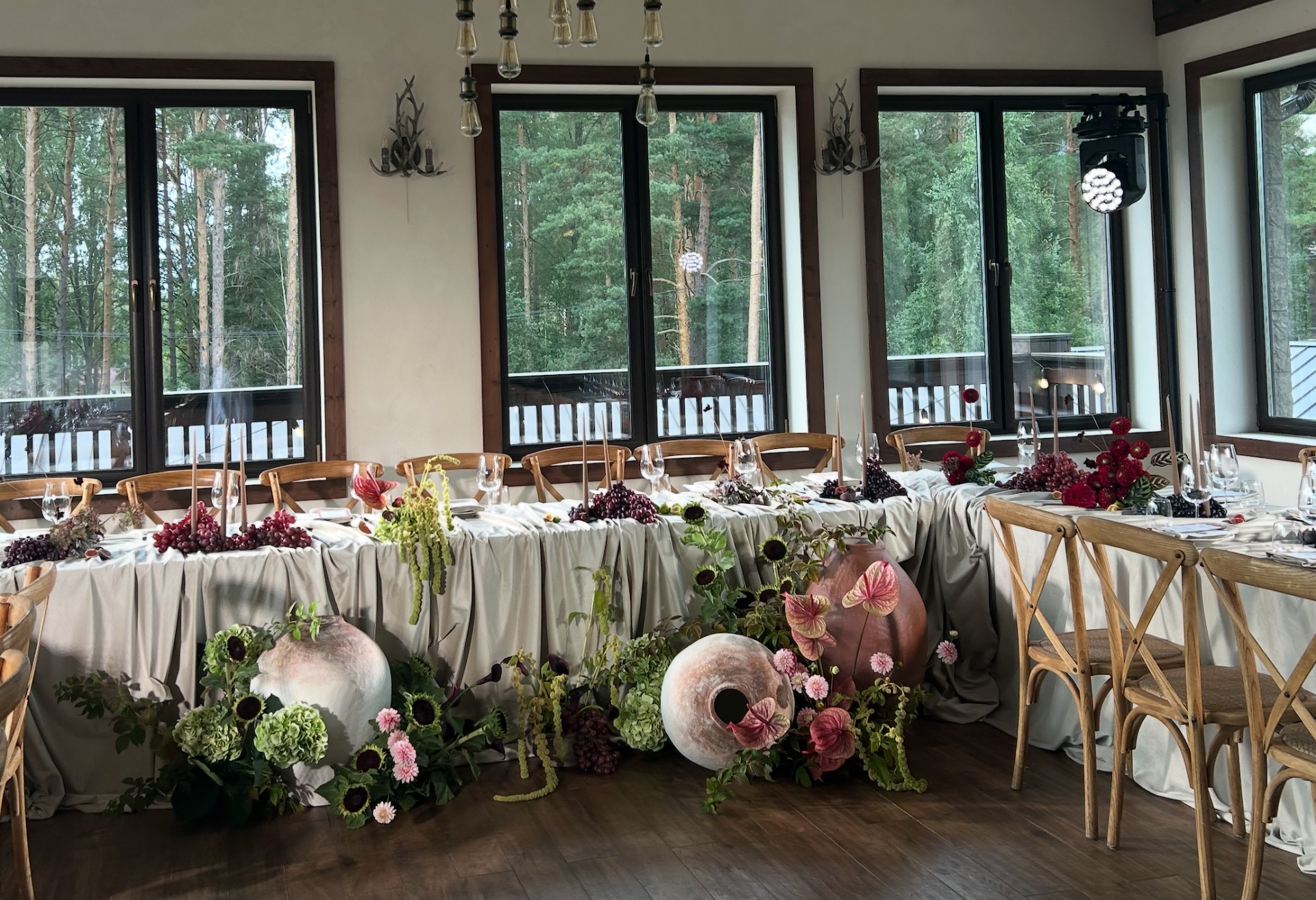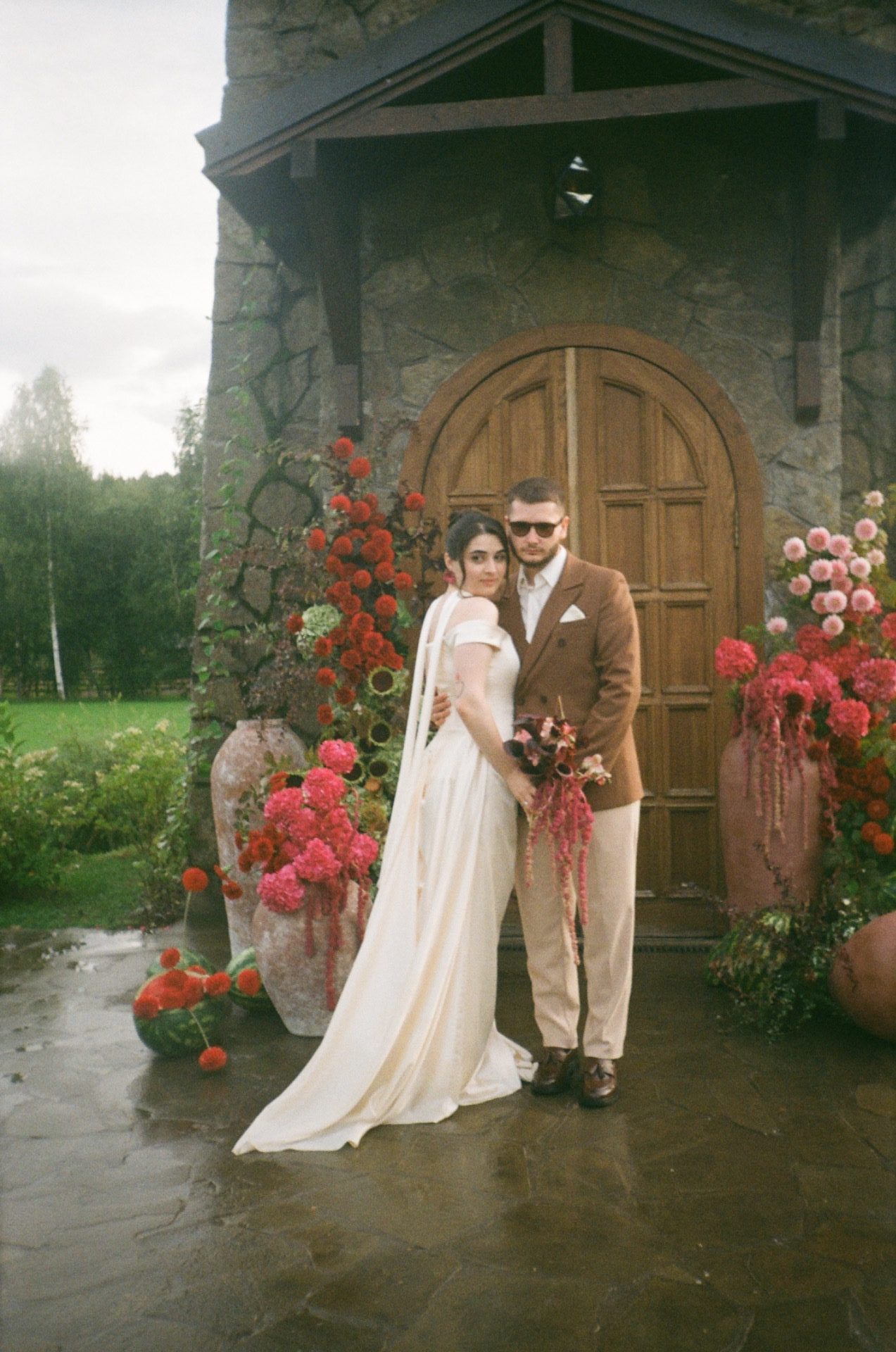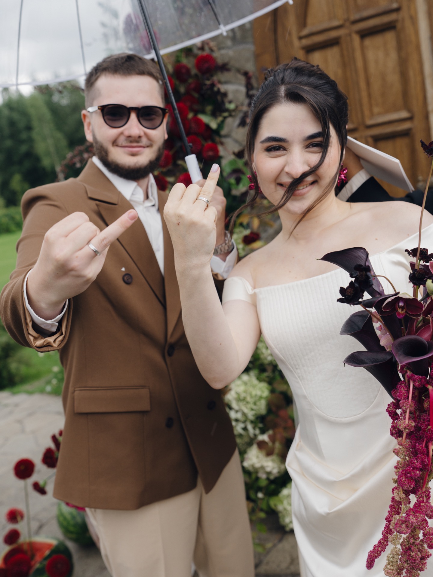 Подготовка заняла около 9 месяцев. В начале было сложно, так как мы совсем не представляли, какой декор и концепцию хотим видеть. Нам очень хотелось расслабленную загородную свадьбу с живыми цветами и фуд-декором, но при этом добавить в праздник свою изюминку и национальный колорит, отражающий мои корни.