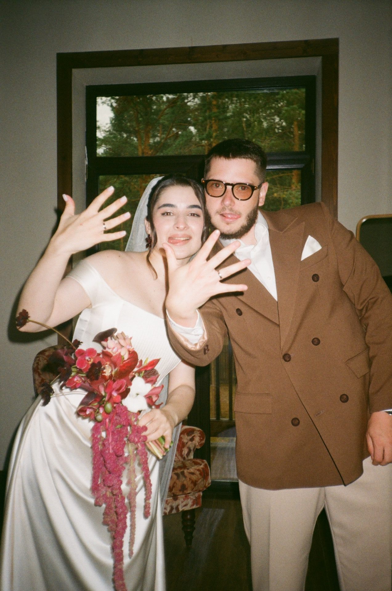 А в августе 2024 года мы с Кириллом поехали в мини-путешествие на винодельню «Шато Андре» в Краснодарском крае. Он нервничал целый день, заказал столик на веранде с видом на виноградник. Мы ужинали и пили любимое вино. Я не запомнила ни одного слова, которое говорил Кирилл в момент предложения. Помню только его испуганные глаза, когда он надевал кольцо, потому что оно немного застряло между фалангами, и он подумал, что ошибся с размером. Оказалось, что у него просто тряслись руки.