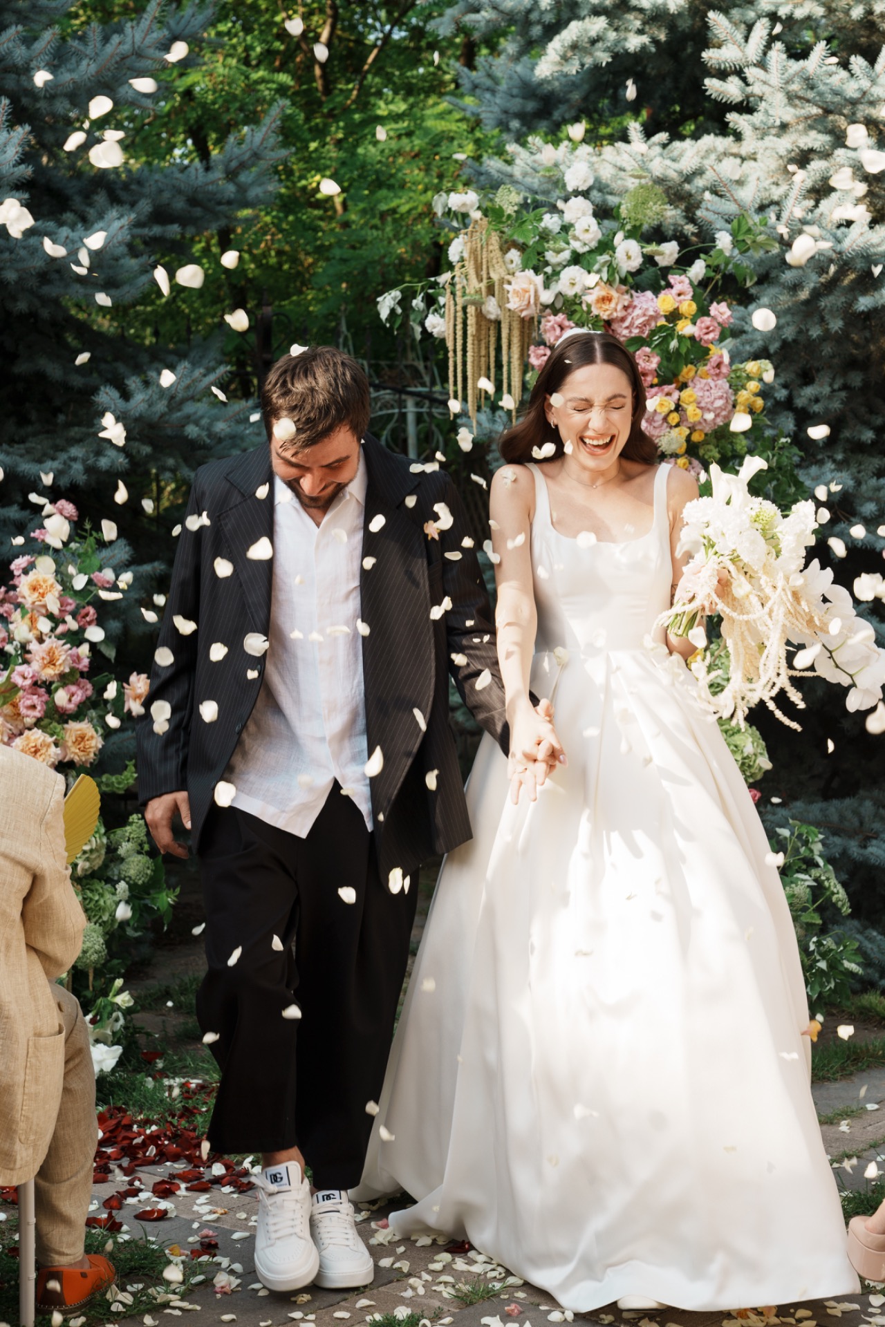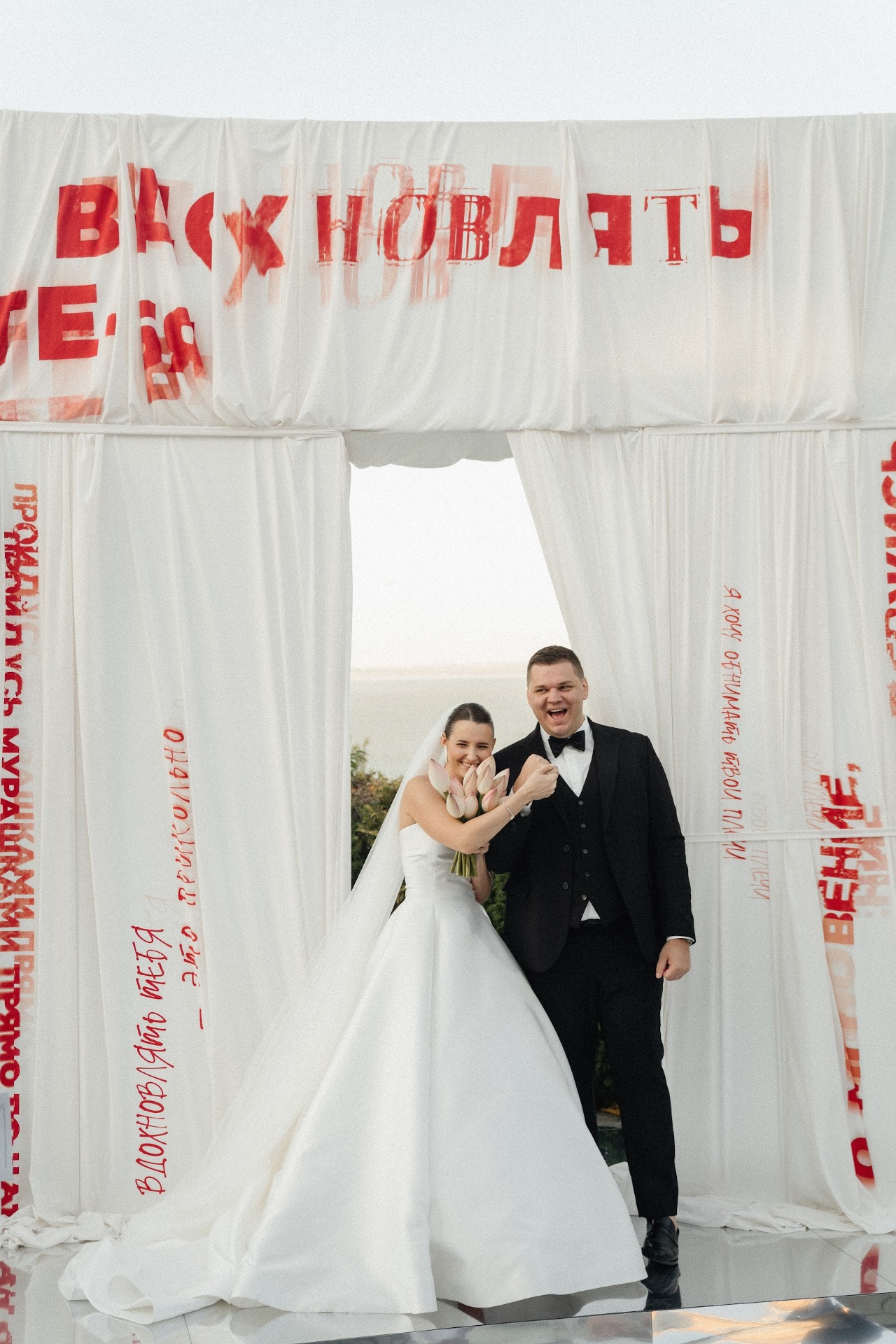 Настя: Мы хотели, чтобы свадьба была камерной, душевной, лёгкой, весёлой и изысканной. Чтобы полностью отражала нас самих. Поэтому все детали мы выбирали по ощущениям. Мы задавали себе вопросы: «Ёкает? Это про нас? Мы бы сказали на это «Вау?» Мурашки пробежали?»