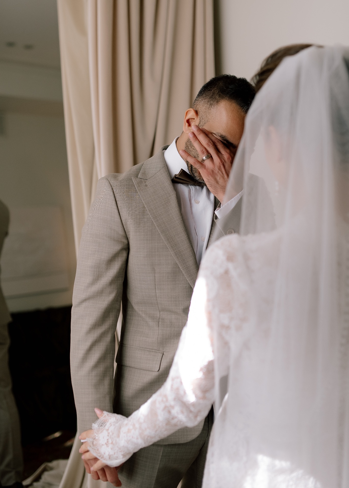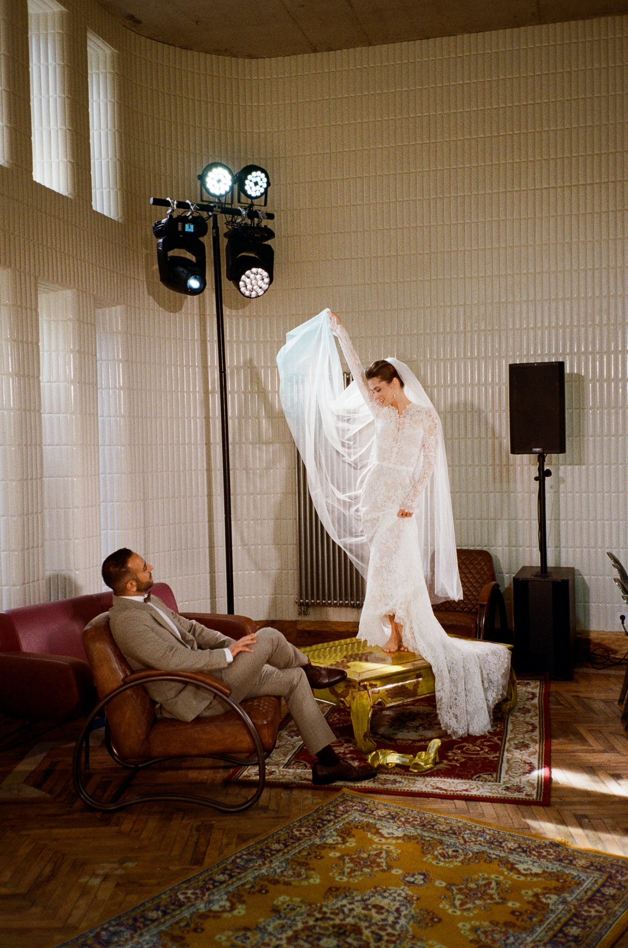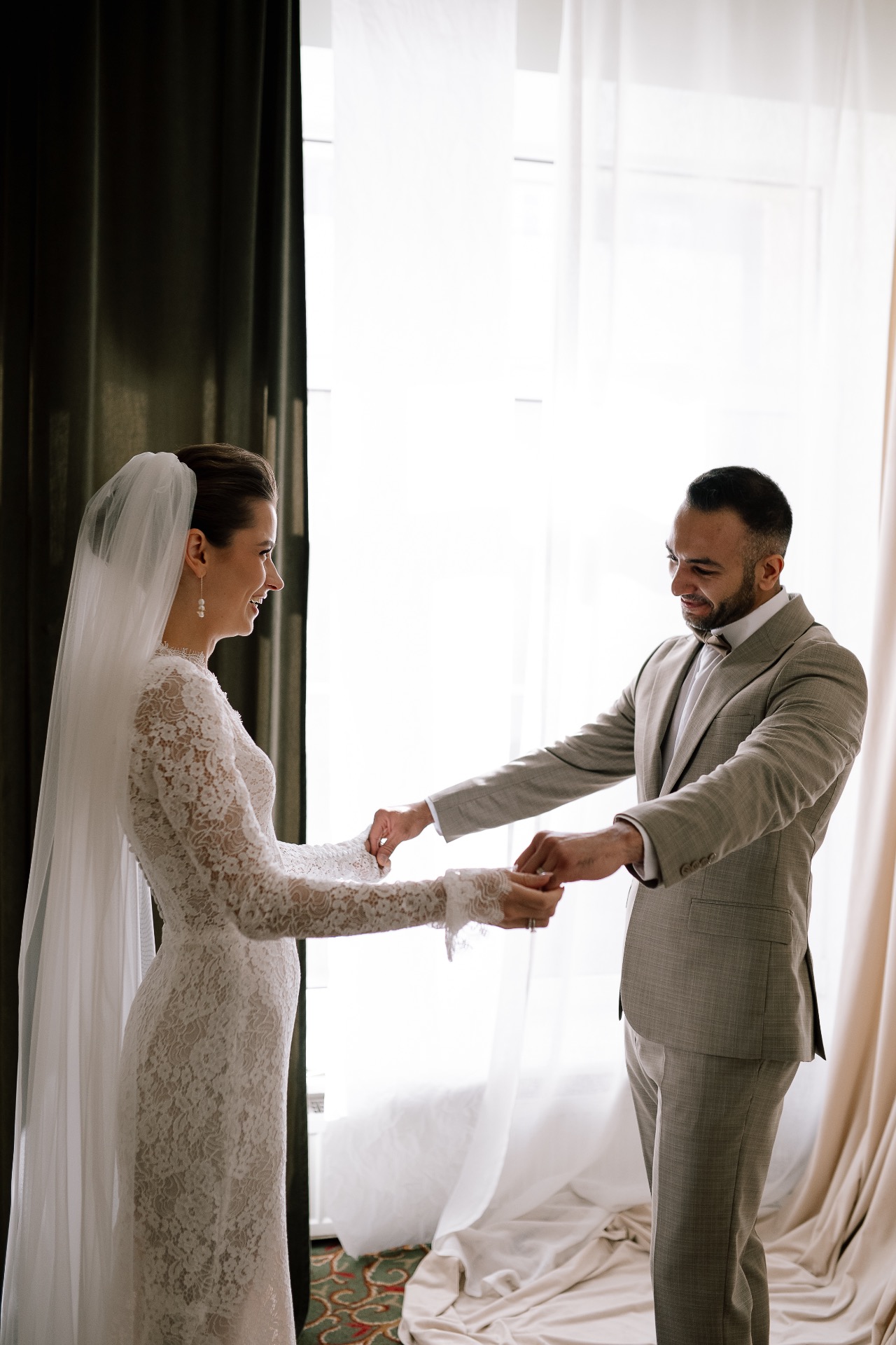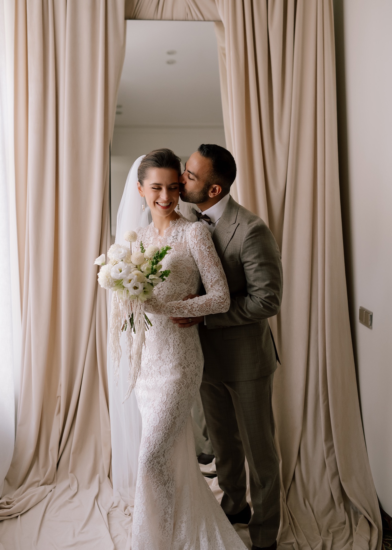 Рашад выбрал классический образ: светло-серый костюм и коричневую бабочку, которые гармонировали с образом Ксении.