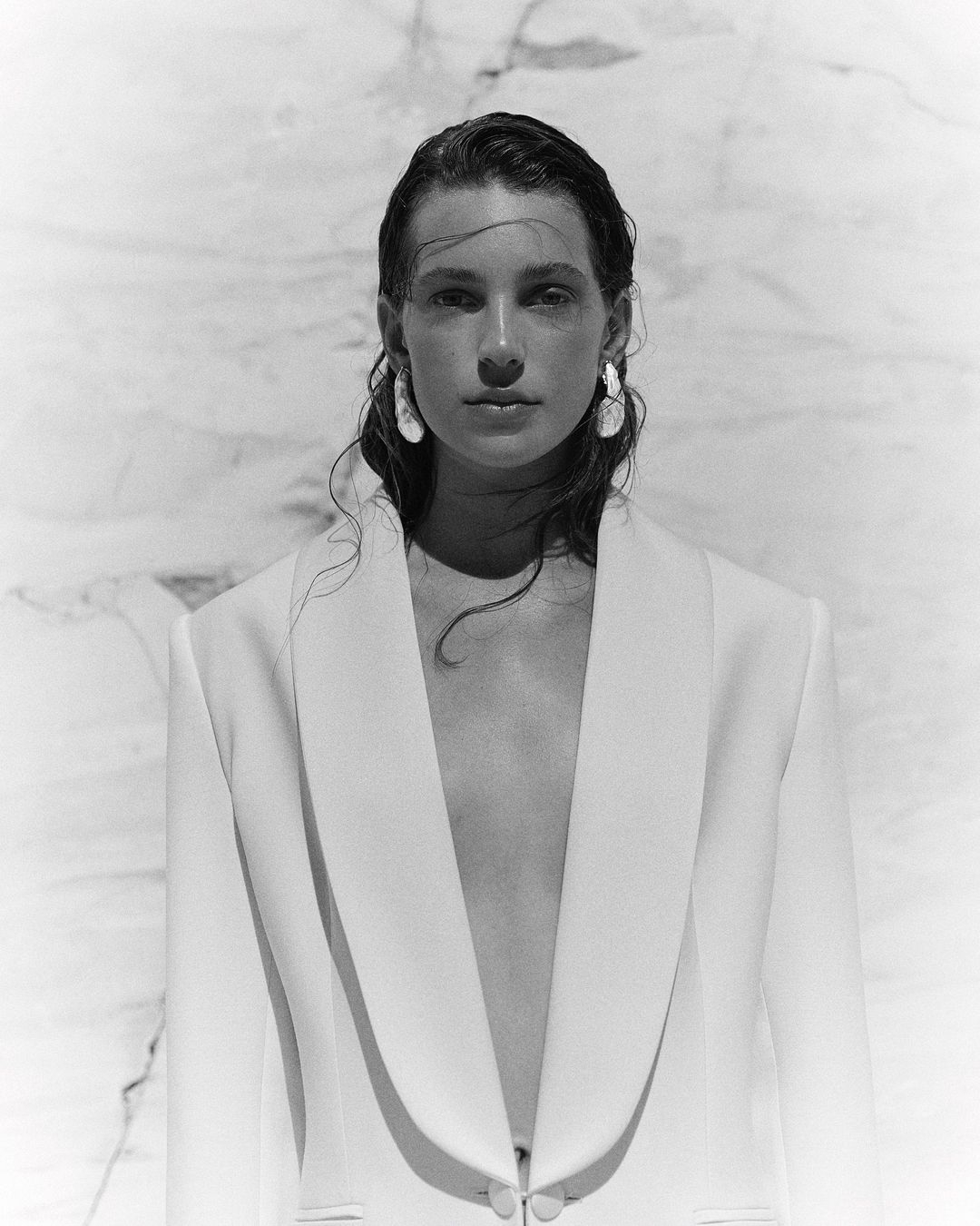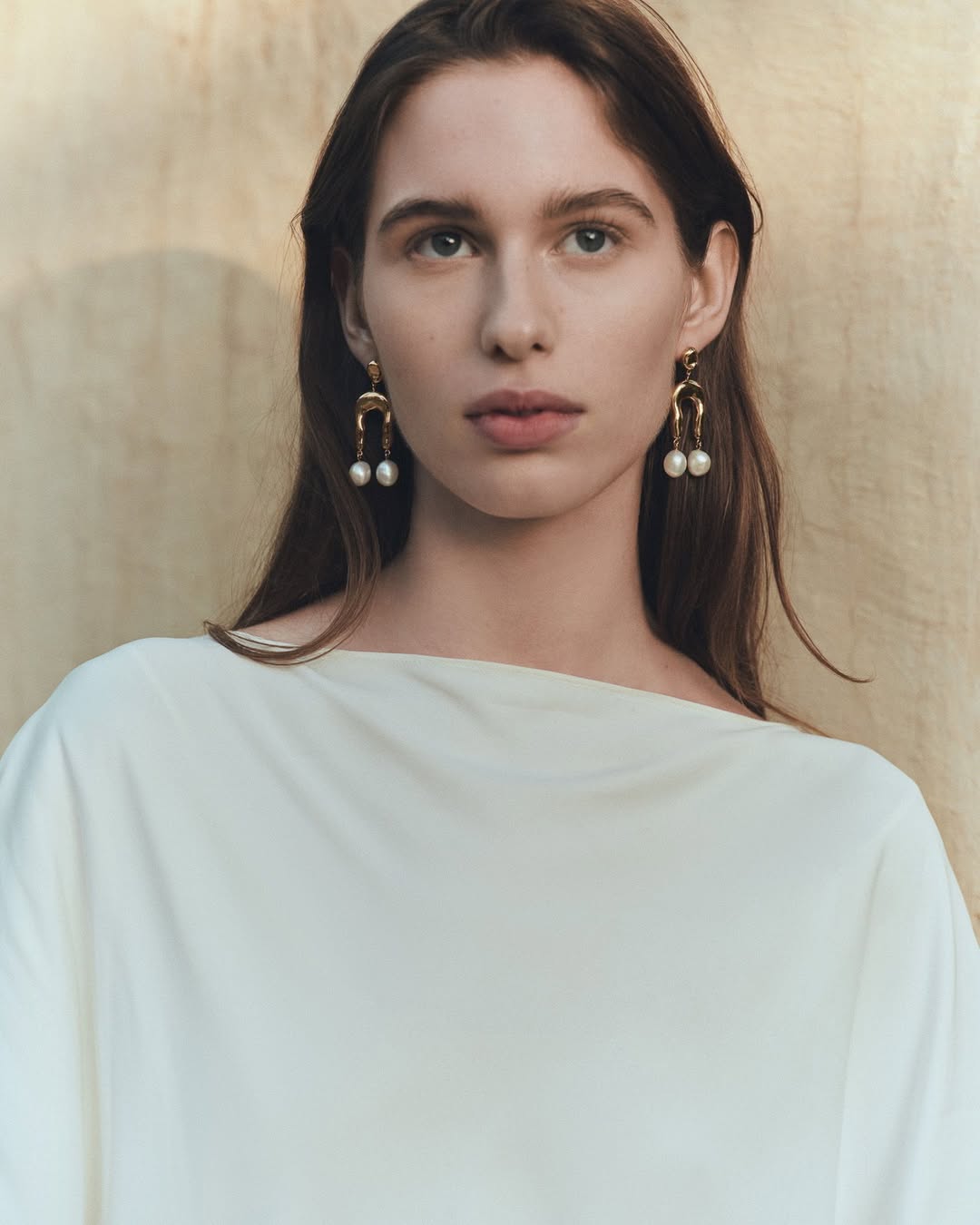 - Лучше меньше. Вместо комплекта «серьги + колье + браслет» выбери одно выразительное украшение. Так ты избежишь перегруза, и вещь действительно будет работать, а не теряться среди других.